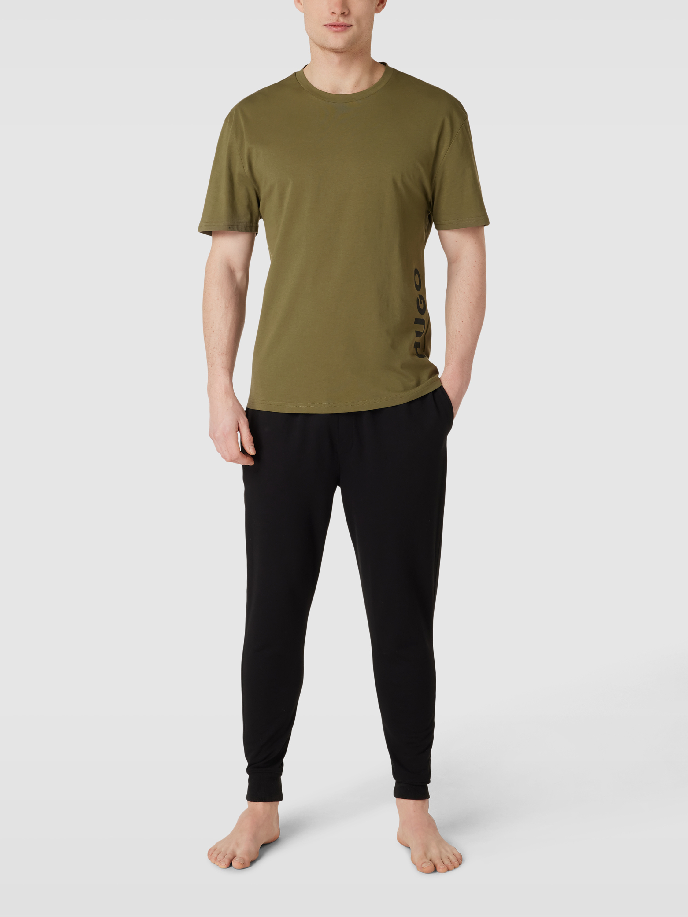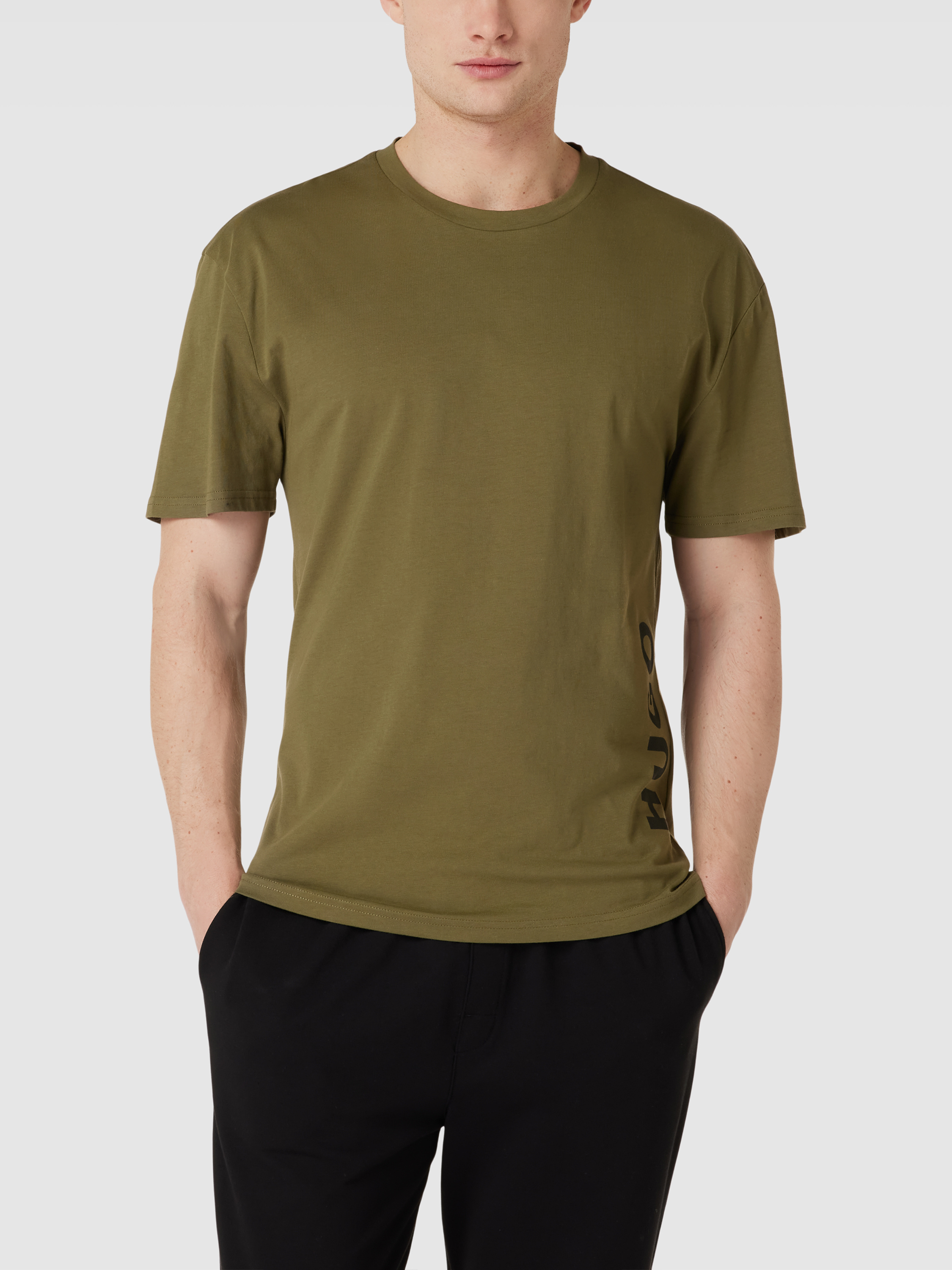 HUGORelaxed Fit T-Shirt mit Label-Print in oliv
