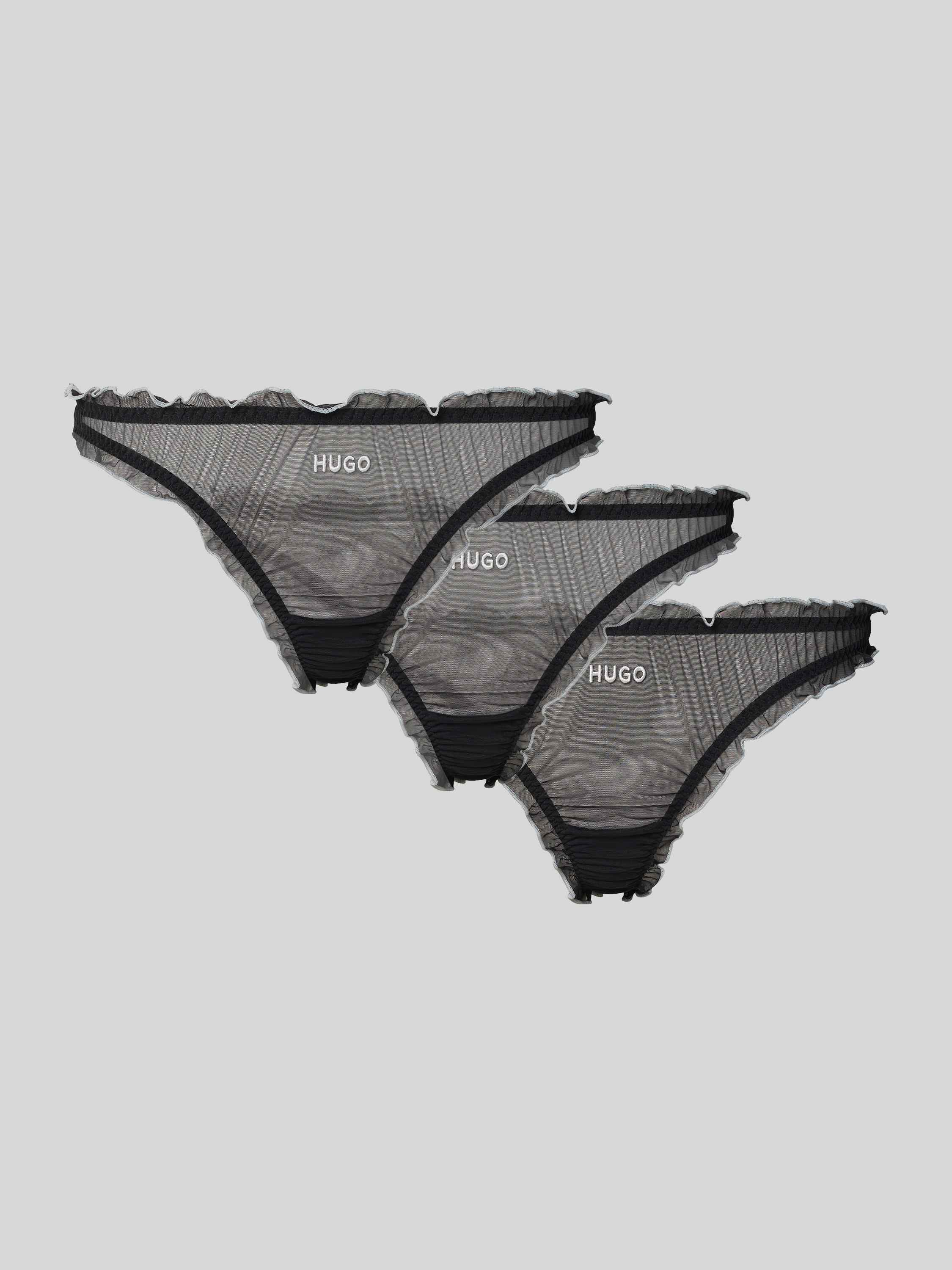 Der Damen String von HUGO, Modell Mesh, zeigt sich im unifarbenen Design mit semitransparentem Mesh und feiner Frill-Kante. Dezentes Label Stitching sorgt für einen modernen Akzent, während die passgenaue Form angenehm anliegt. Im praktischen 3er-Pack lässt sich dieser Stil vielseitig kombinieren.