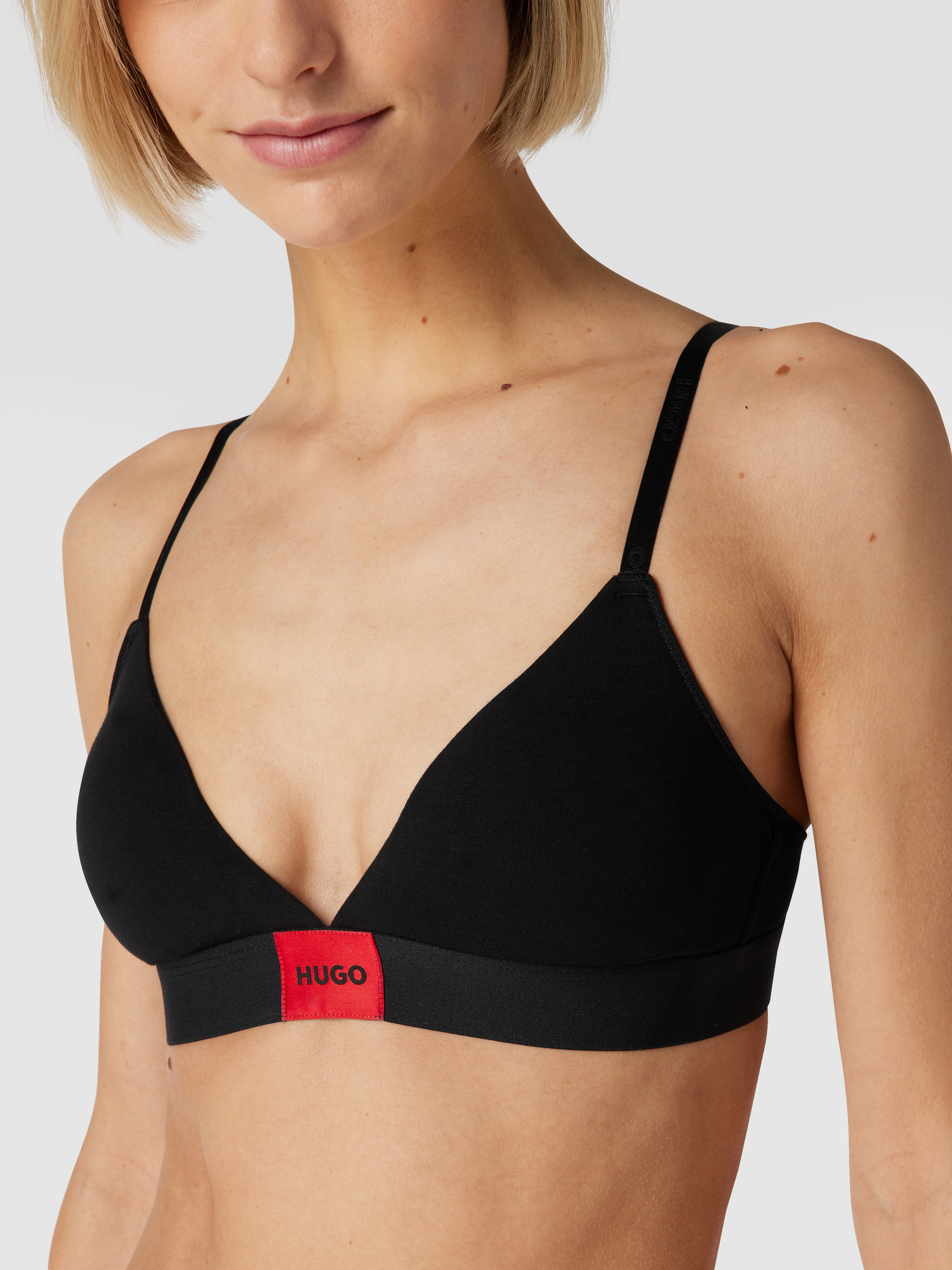 Der Triangel-BH von HUGO im Modell 'Triangle Red Label' überzeugt durch seinen eng anliegenden Schnitt und den Baumwoll-Elasthan-Mix, der für angenehmen Tragekomfort sorgt. Das unifarbene Design und verstellbare Spaghettiträger bieten Flexibilität im Alltag. Dezente Logo-Details unterstreichen den modernen Look.
