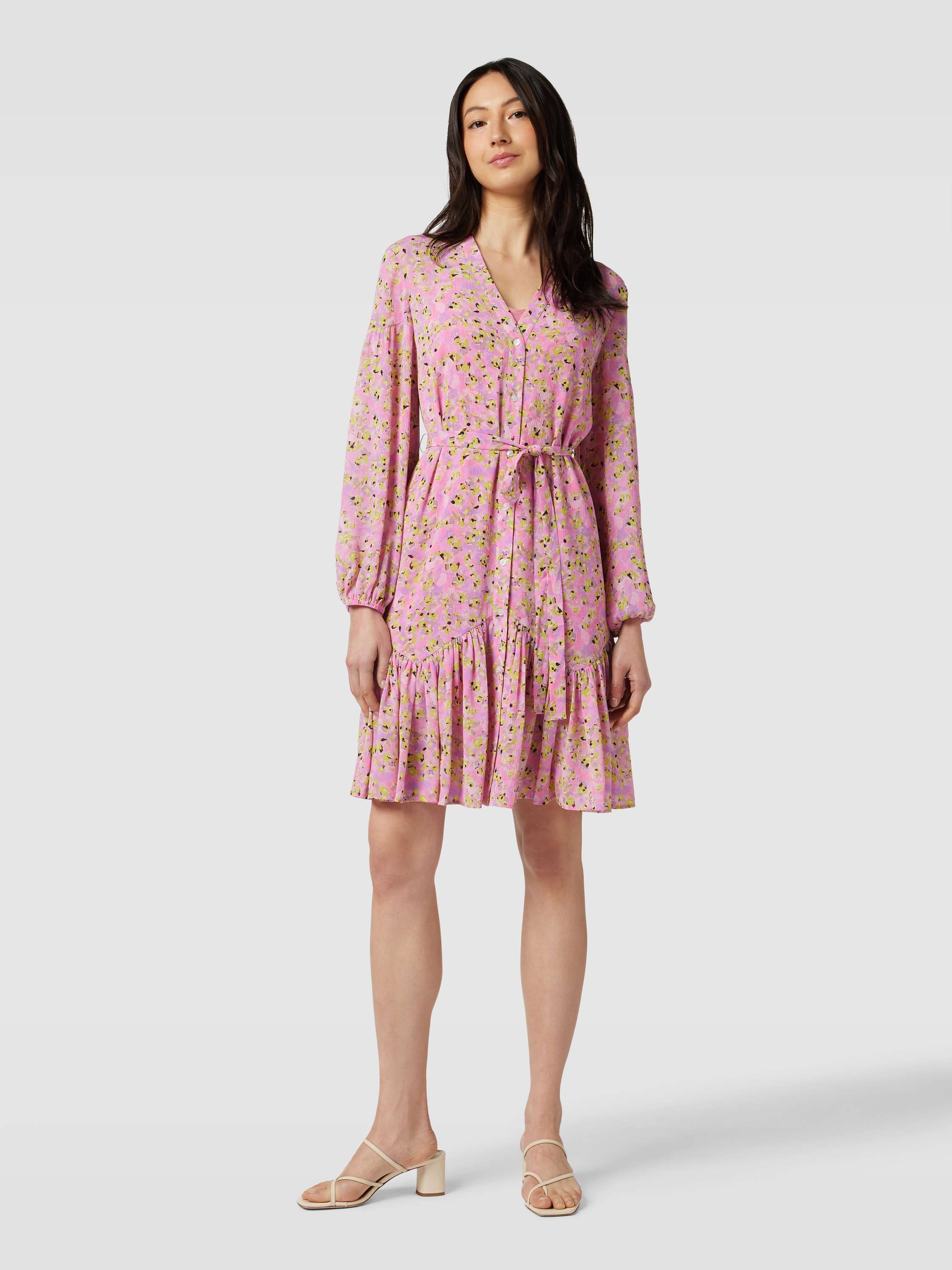 HUGOKnielanges Kleid mit Allover-Muster Modell 'Kawarda' in rosa