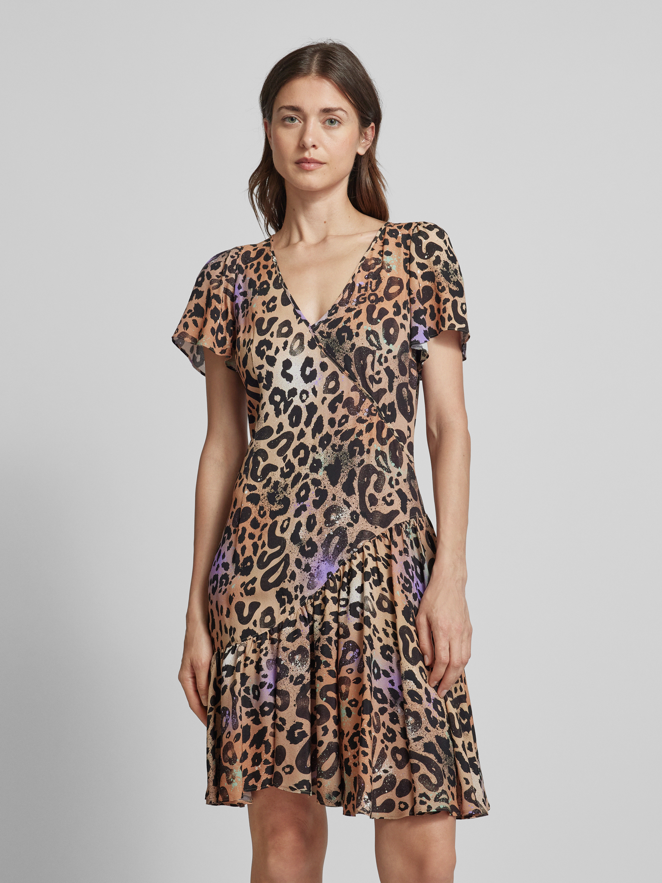 Das knielange Kleid mit Animal-Print Modell 'Kaluna' von HUGO fällt durch seine fließende A-Linie angenehm locker und sorgt für Bewegungsfreiheit. Dank der Wickel-Optik und dem V-Ausschnitt entsteht eine feminine Silhouette, die vielseitig kombiniert werden kann. Die reine Viskose fühlt sich leicht auf der Haut an.