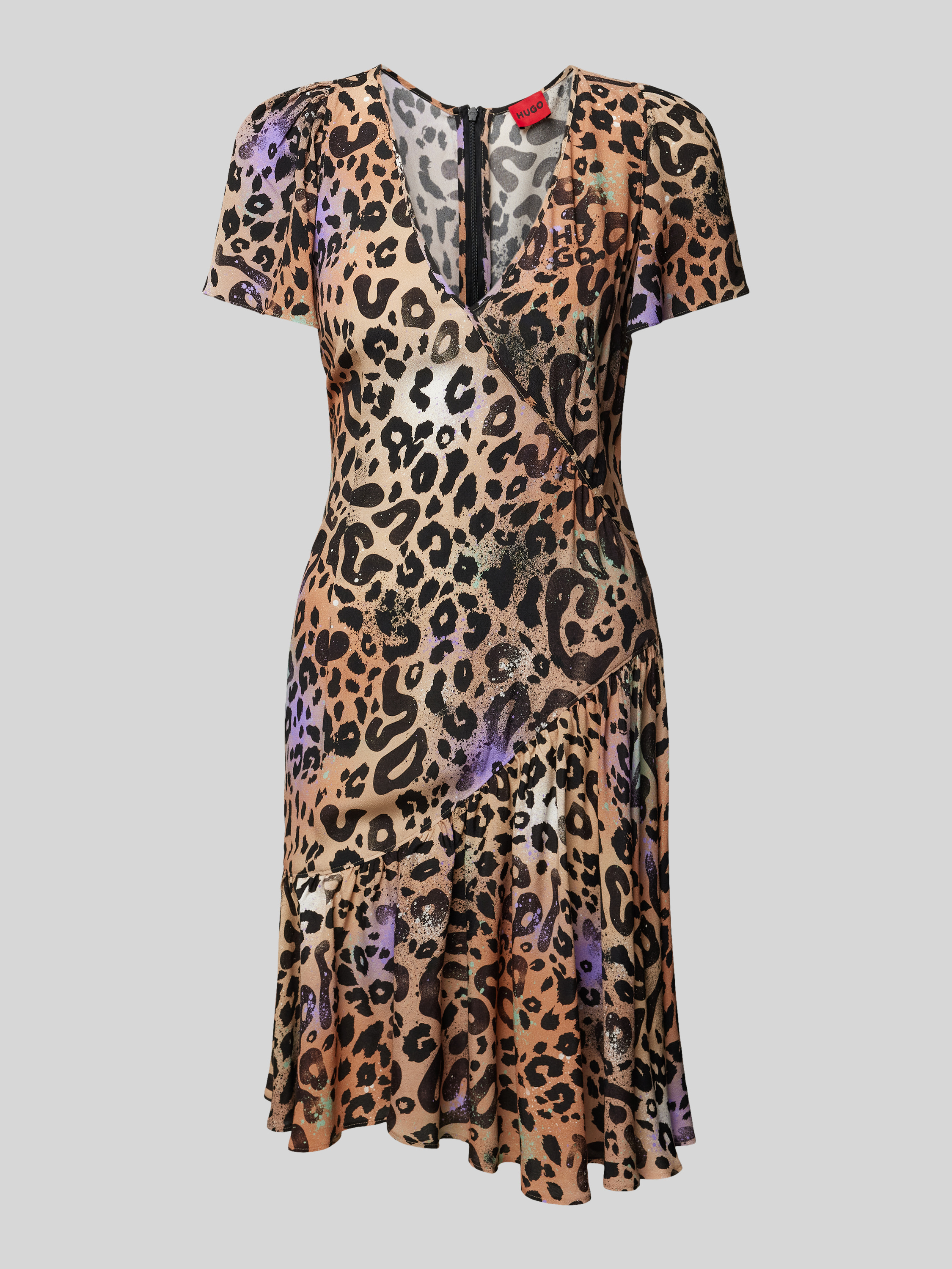 HUGOKnielanges Kleid mit Animal-Print Modell 'Kaluna' in beige