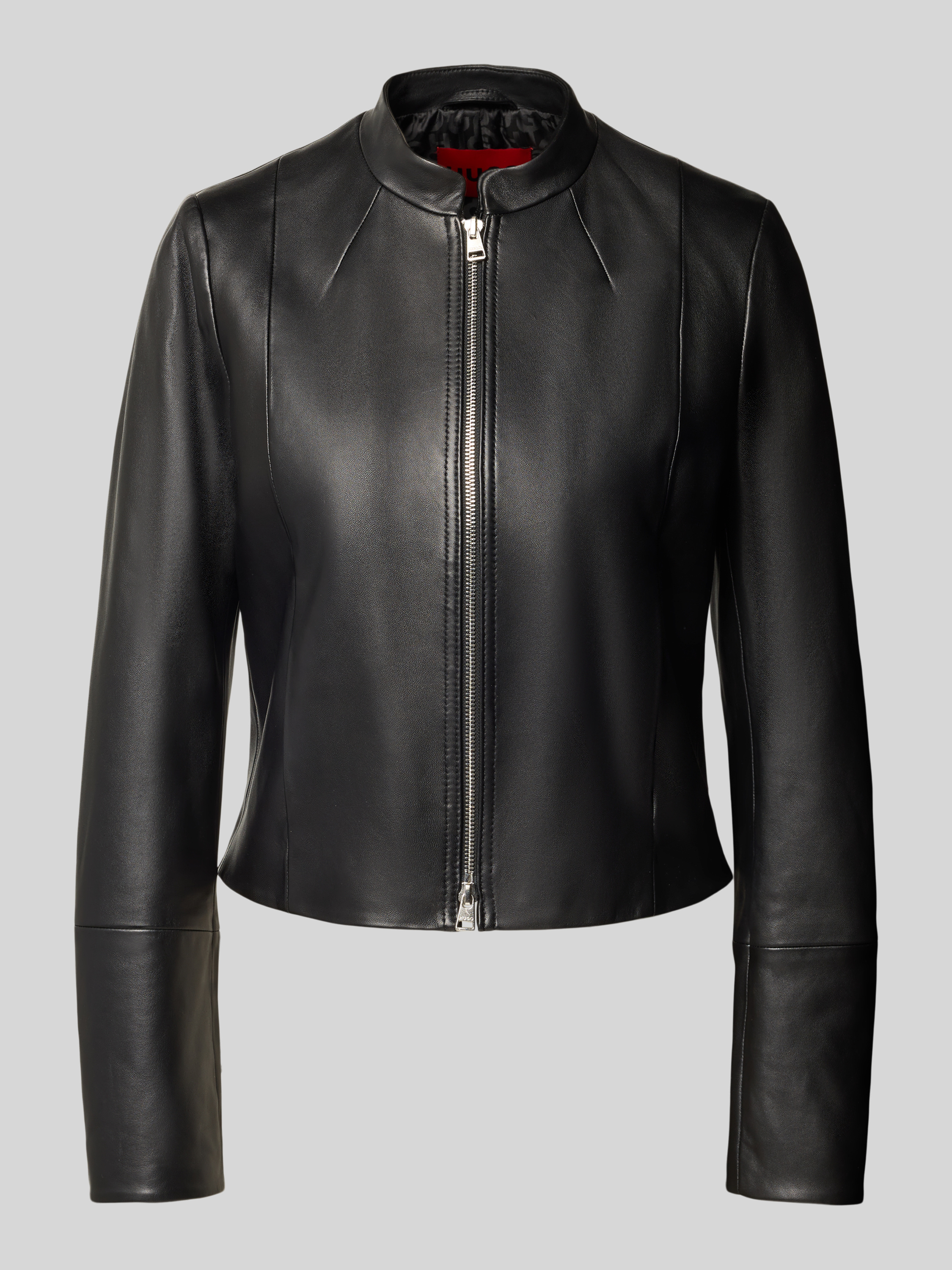 Die Lederjacke 'Lasari' von HUGO vereint stilvolle Eleganz mit einem eng anliegenden Schnitt, der die Silhouette schmeichelhaft betont. Gefertigt aus echtem Lammleder, fühlt sich die Jacke angenehm weich an, während der Stehkragen und die Ziernähte dezente Akzente setzen. Ideal für alle, die Wert auf hochwertige Materialien und eine edle Optik legen.