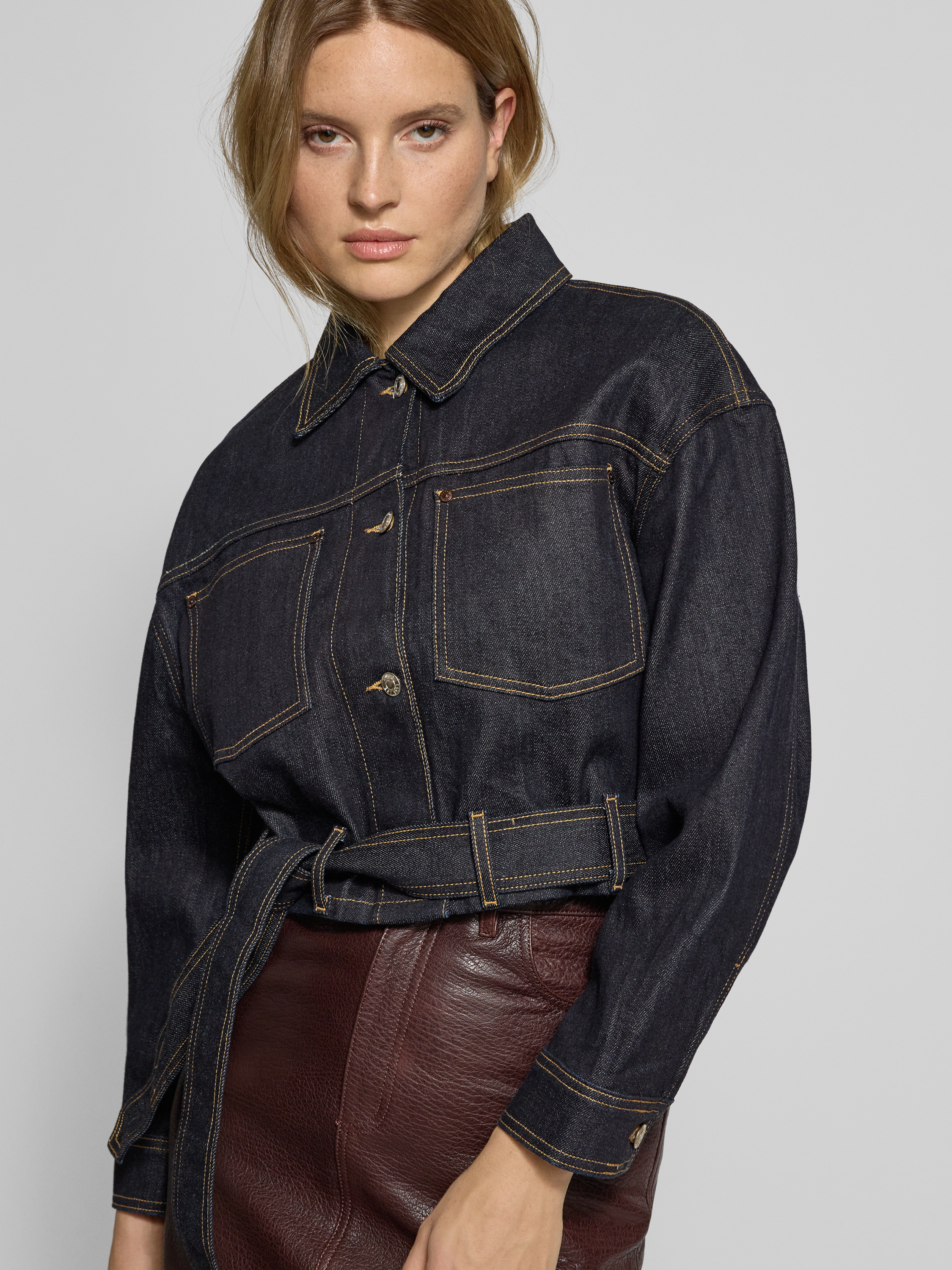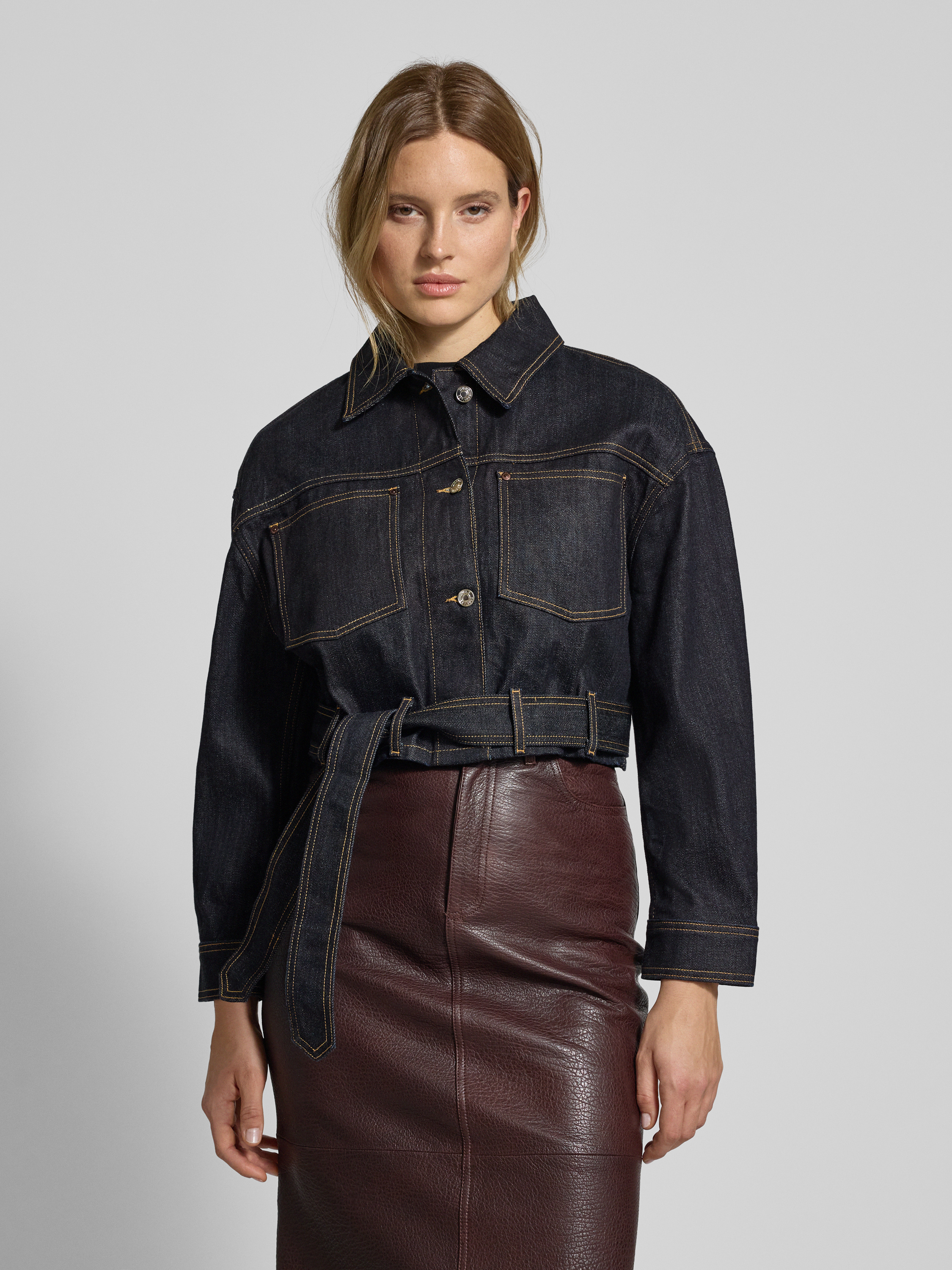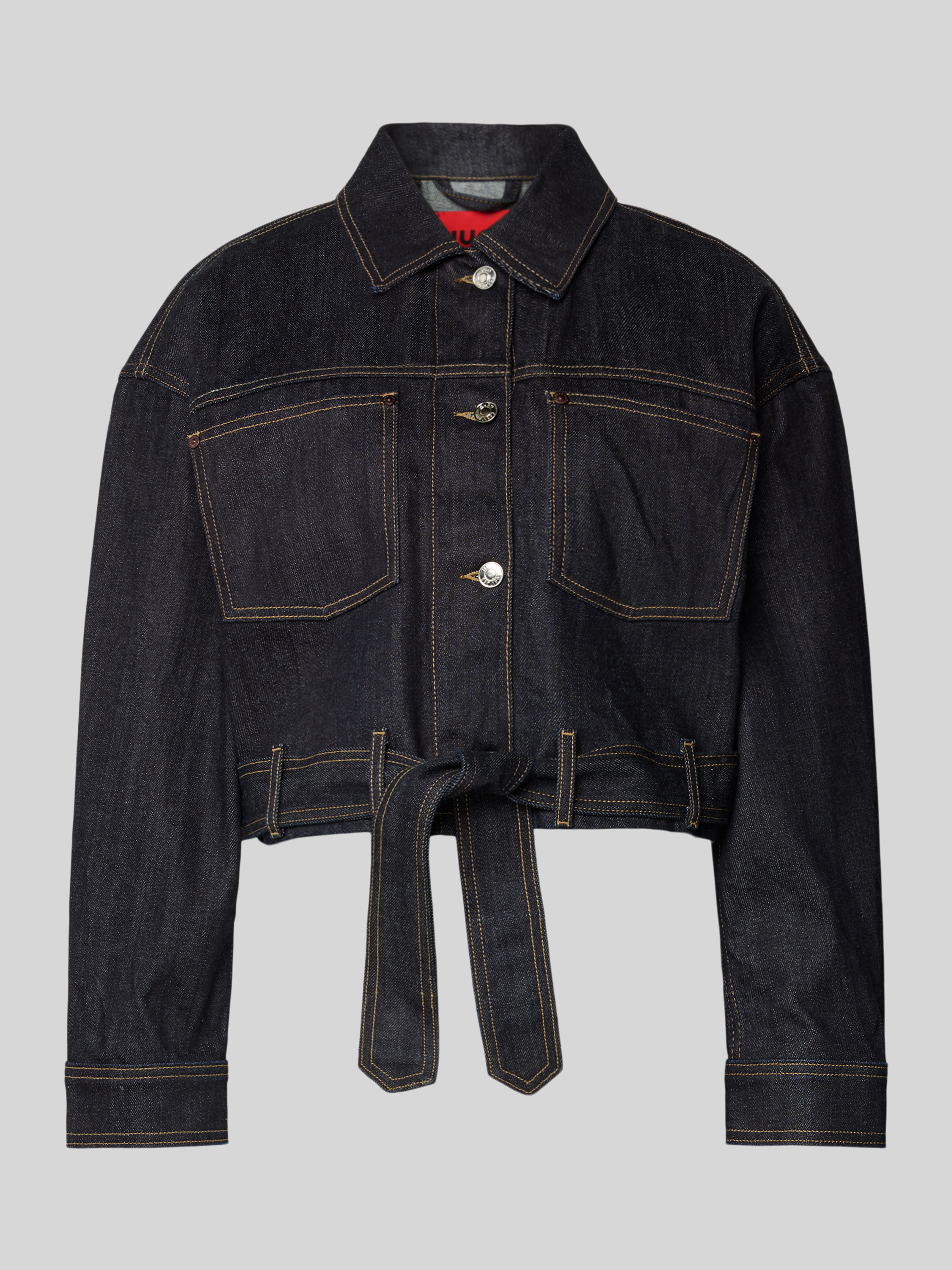 Die Damen Jeansjacke von HUGO, Modell 'Galata', fällt durch ihren Oversized-Schnitt und den markanten Umlegekragen auf. Dank des Baumwoll-Mix-Materials fühlt sich das Kleidungsstück angenehm an und wirkt dabei formstabil. Ein Bindegürtel mit Gürtelschlaufen ermöglicht es, die Passform individuell anzupassen.