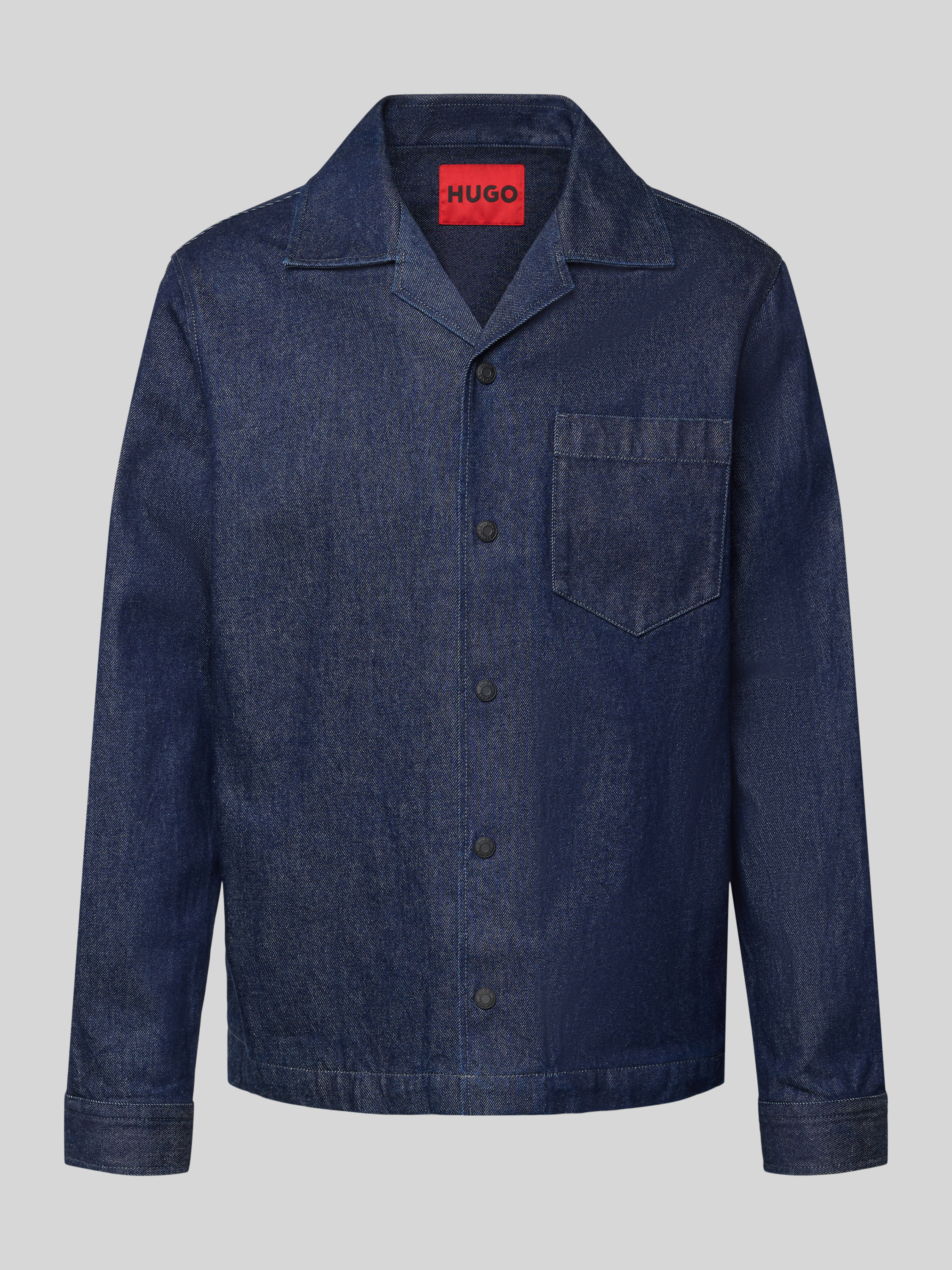 Die Regular Fit Hemdjacke Modell 'Edelo' von HUGO kombiniert klassischen Stil mit modernem Komfort. Gefertigt aus reiner Baumwolle, bietet sie eine angenehme Passform und einen Resortkragen, der für eine entspannte Eleganz sorgt. Die praktische Brusttasche unterstreicht ihre Alltagstauglichkeit.