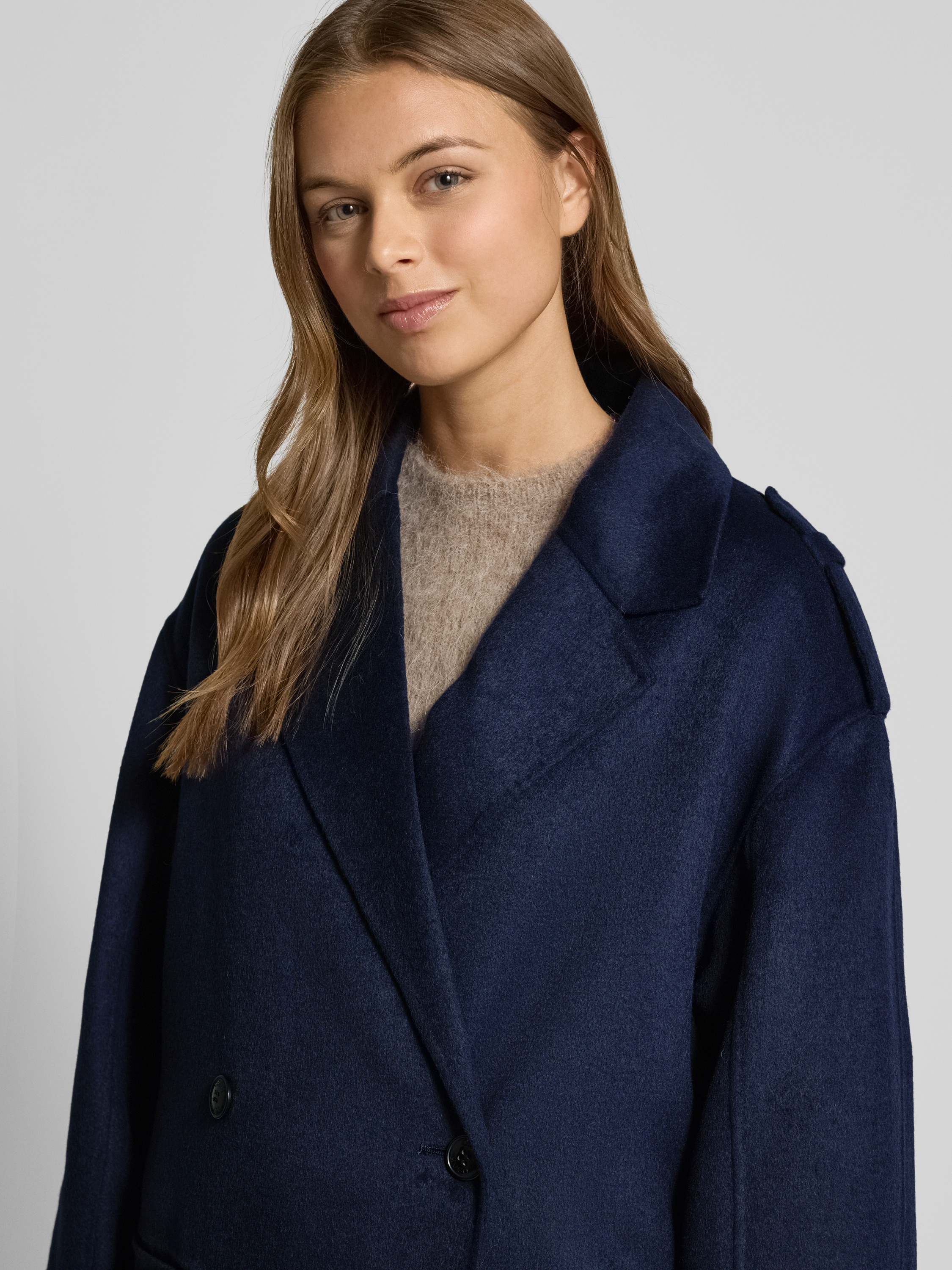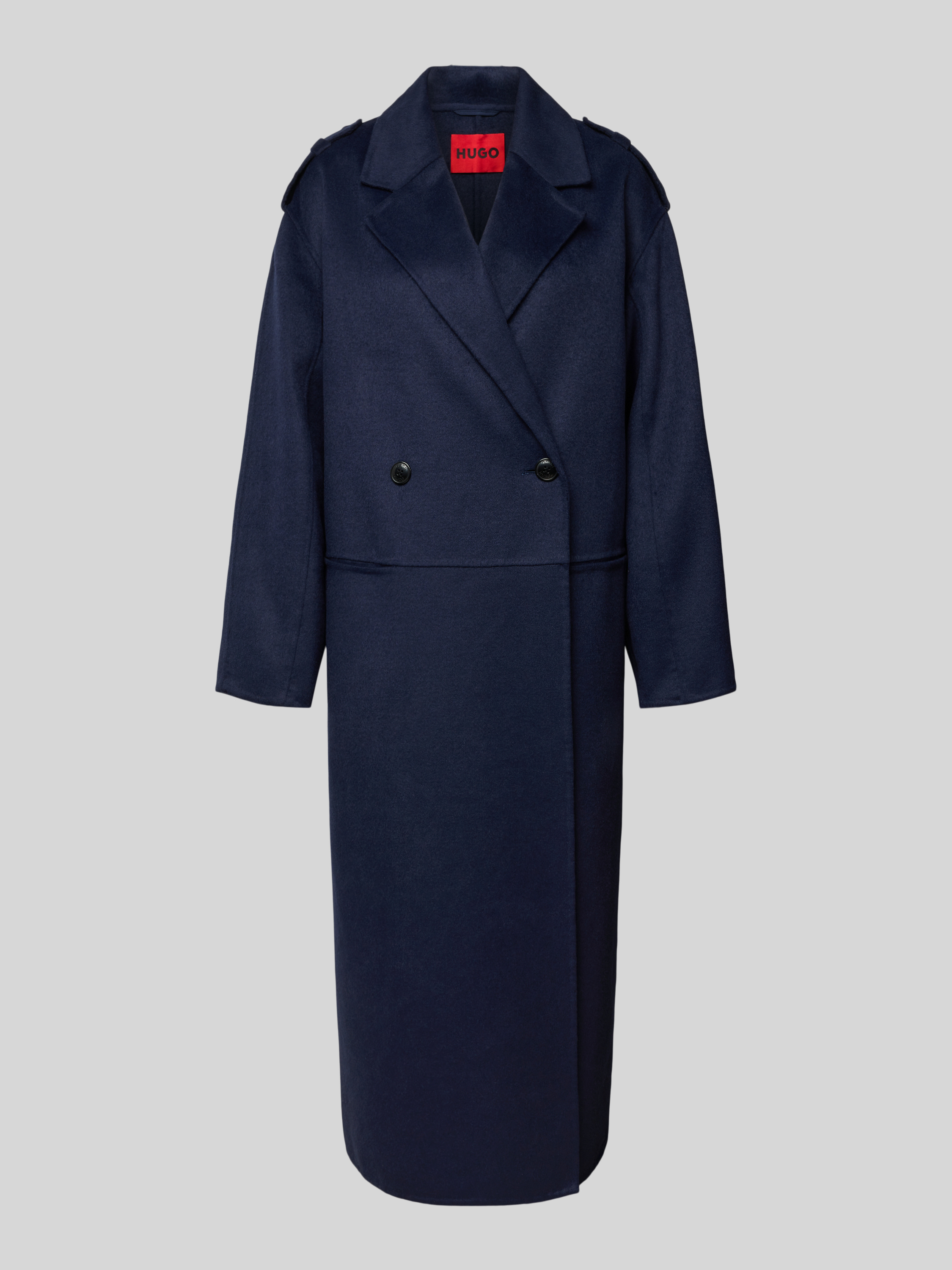 Der Damen Wollmantel von HUGO, Modell Meluma-1, zeigt sich in unifarbener Optik und setzt auf einen klassischen Regular-Fit mit Reverskragen. Reine Wolle sorgt für angenehme Wärme und einen geschmeidigen Griff, während gebürstetes Material eine dezente Struktur einbringt. Schulterriegel, Gehschlitz und praktische Eingrifftaschen unterstreichen die alltagstaugliche Gestaltung.