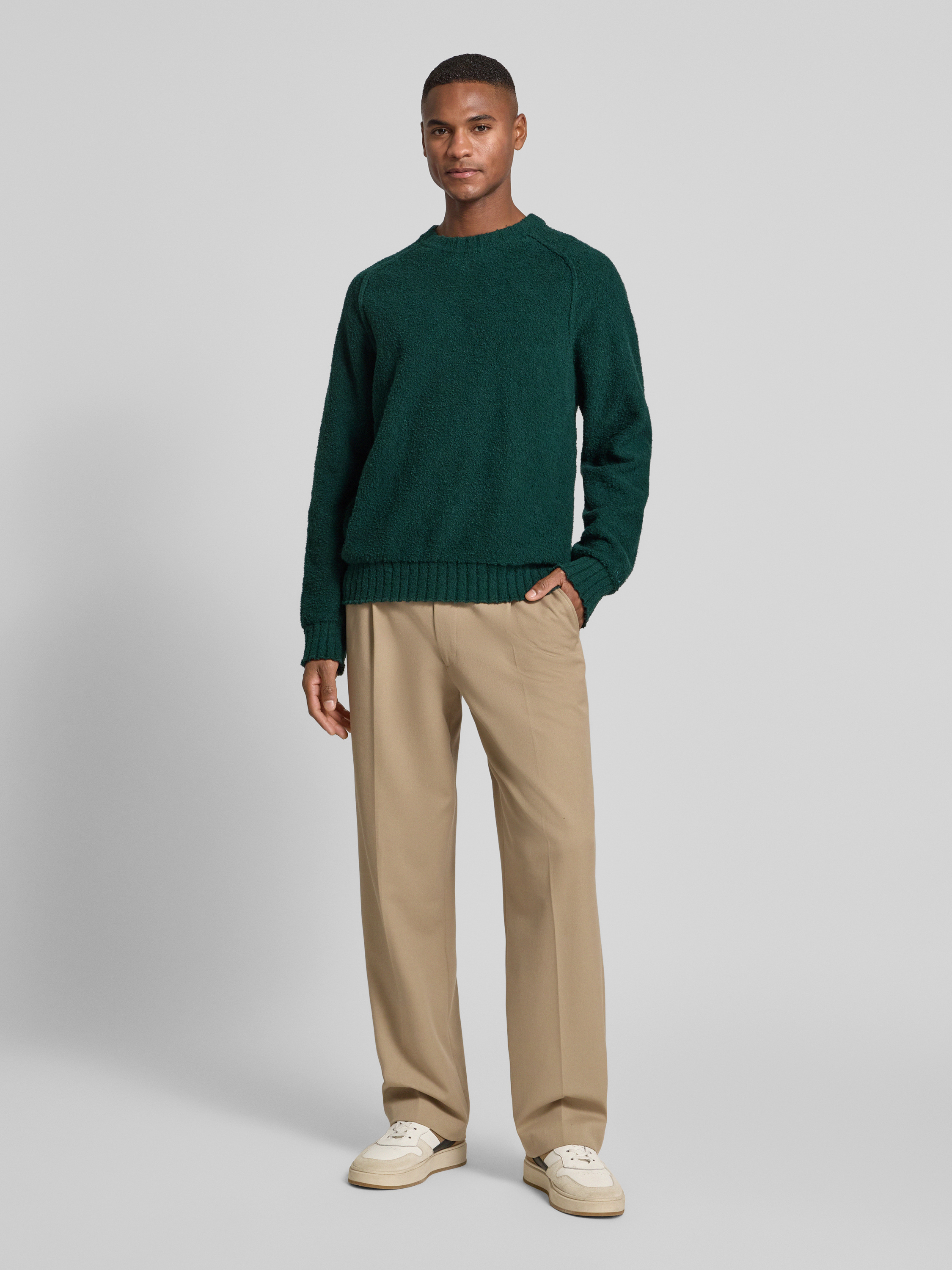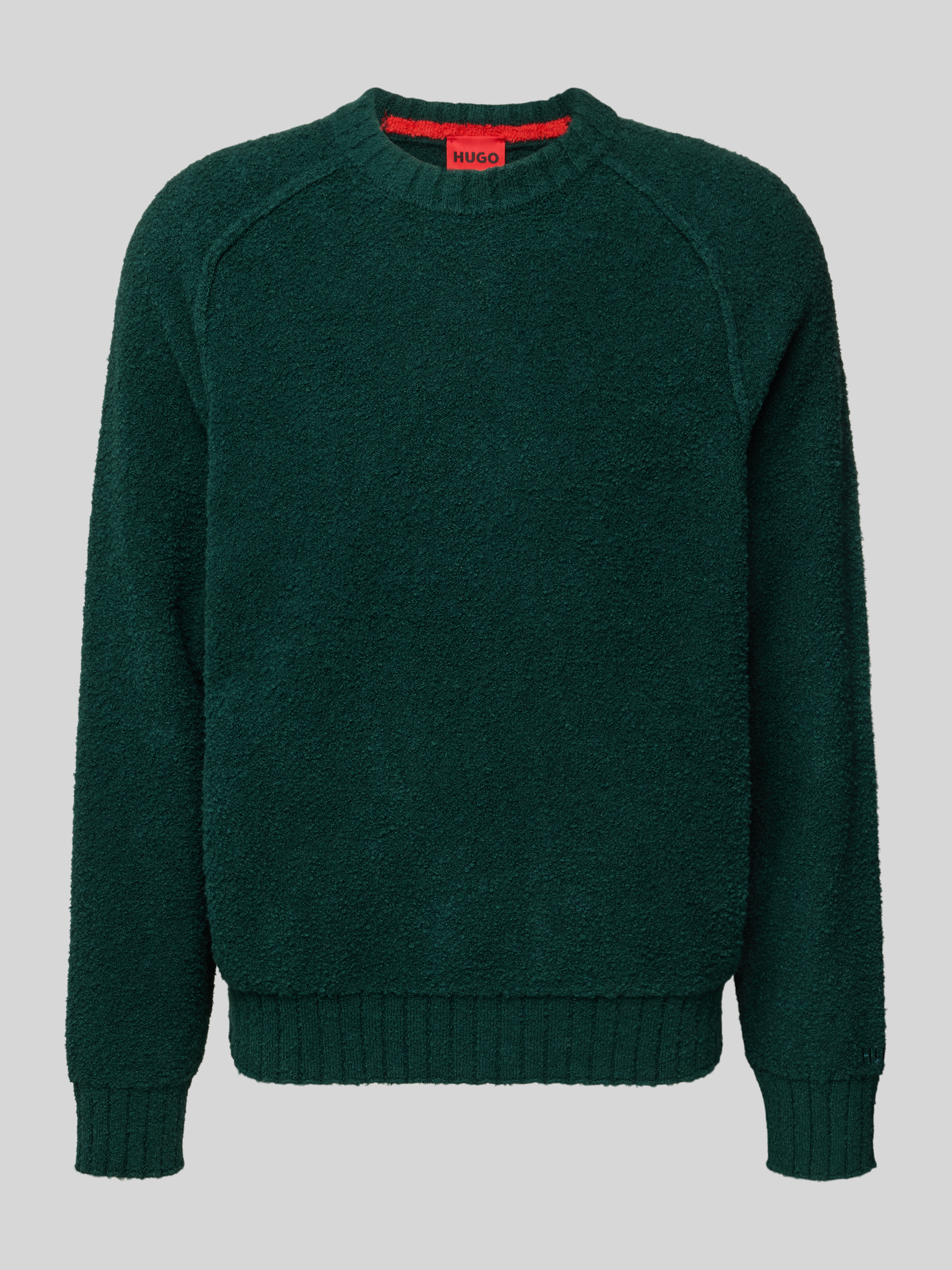 Der Herrenpullover von HUGO, Modell San Christopher, fällt durch seine legere Passform und die dezente Optik auf. Die Bouclé-Verarbeitung im Baumwoll-Mix verleiht dem Material eine angenehm strukturierte Haptik. Raglanärmel und Rundhalsausschnitt sorgen für Bewegungsfreiheit und entspannten Tragekomfort im Alltag.