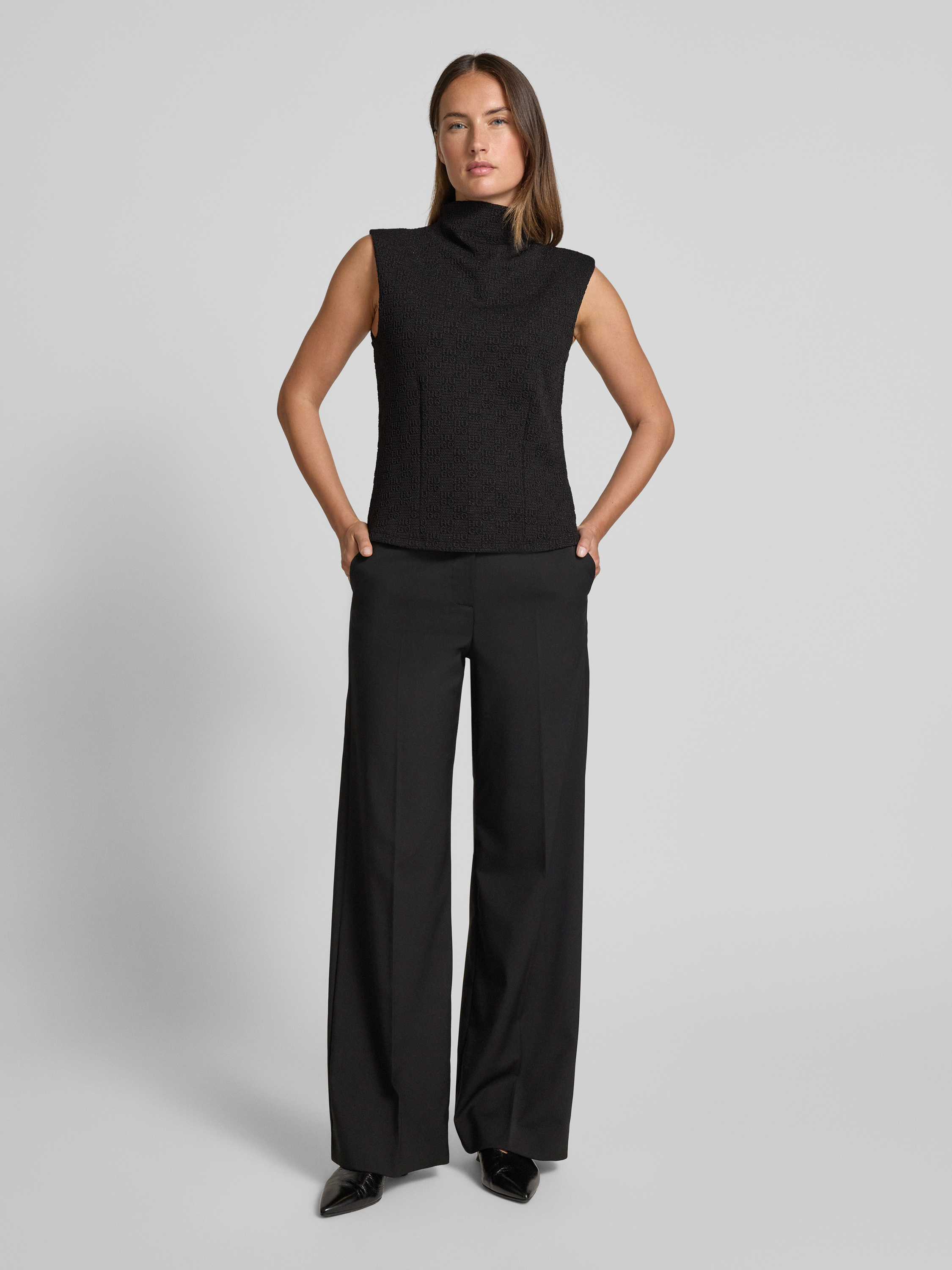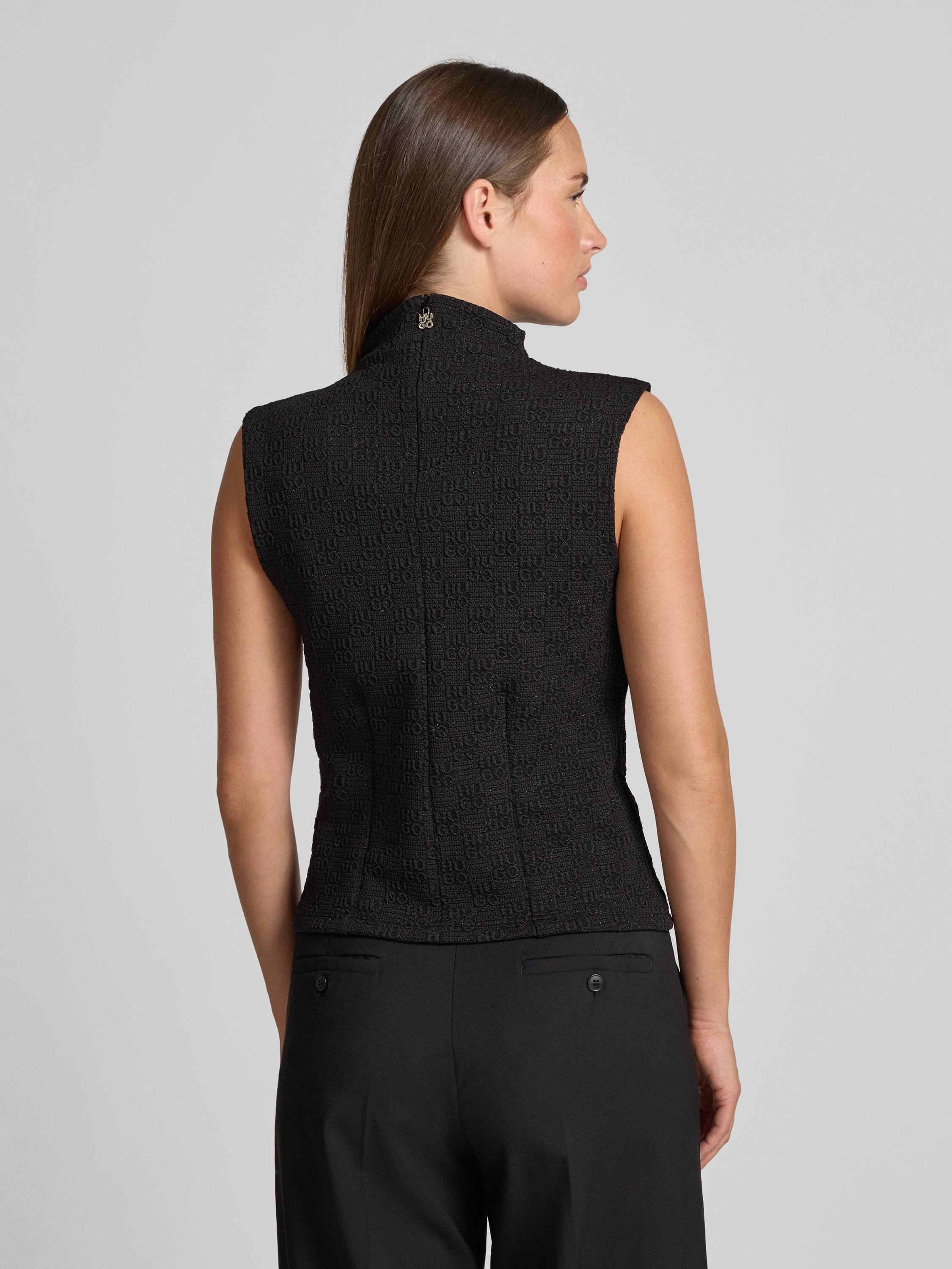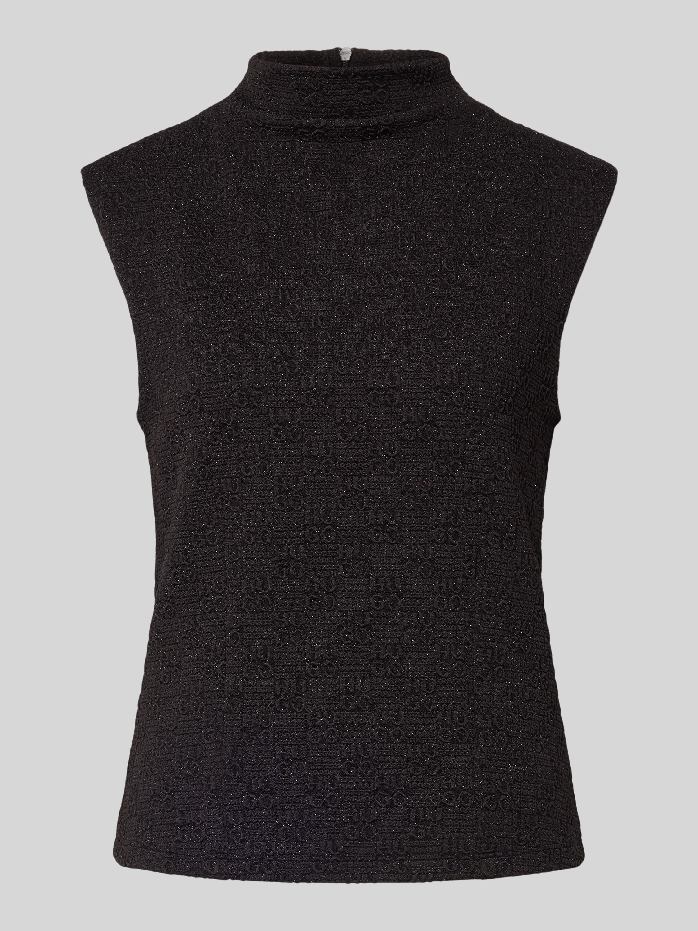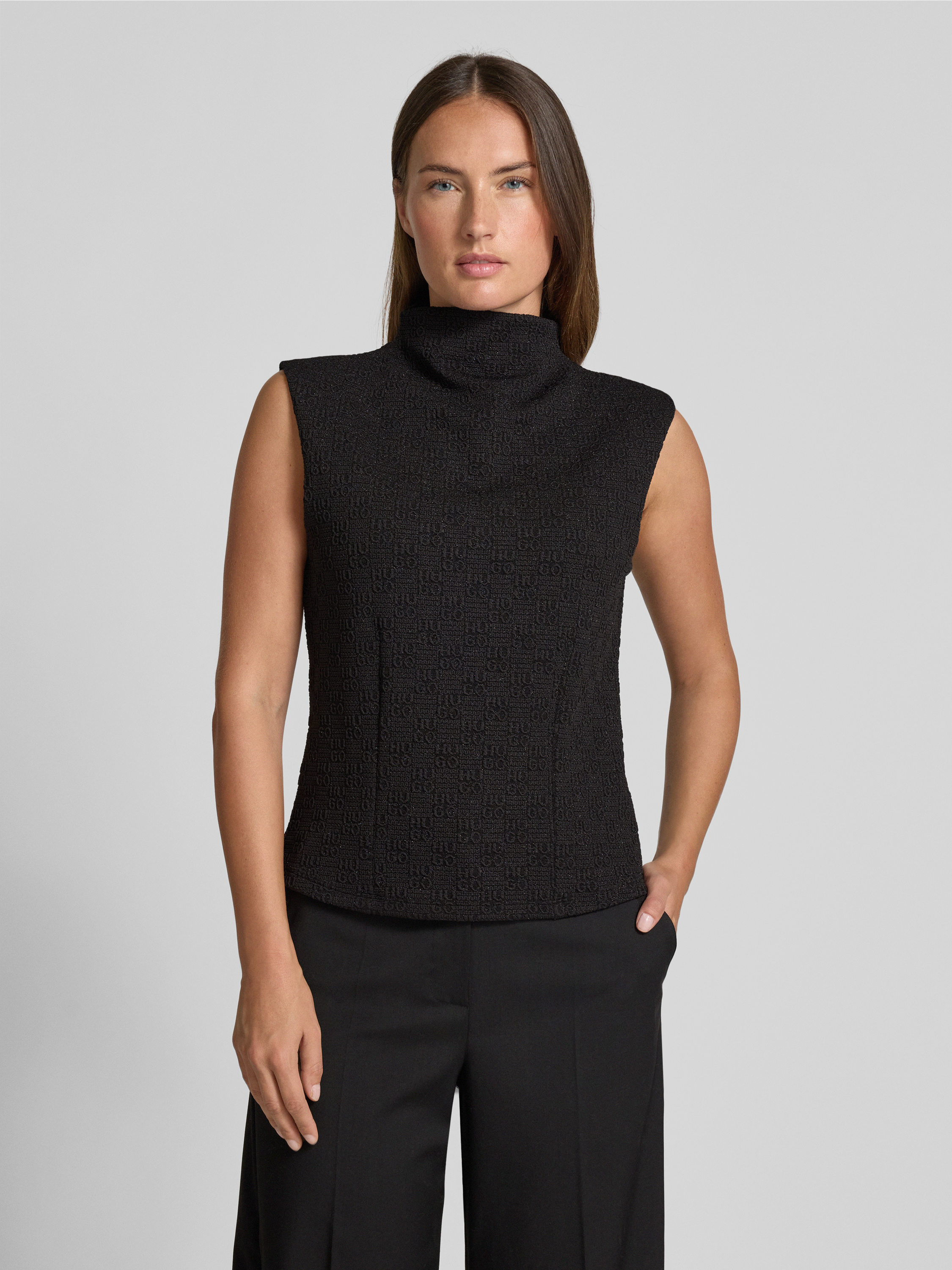 Das Damen Blusentop von HUGO, Modell 'Daired', zeigt sich in schimmernder Optik mit strukturierter Oberfläche. Durch den Shaped Fit und den Stehkragen erhält das Oberteil eine moderne, körpernahe Silhouette, während der hochgeschlossene Ausschnitt Eleganz verleiht. Ein dezentes Label-Detail rundet das Design ab.