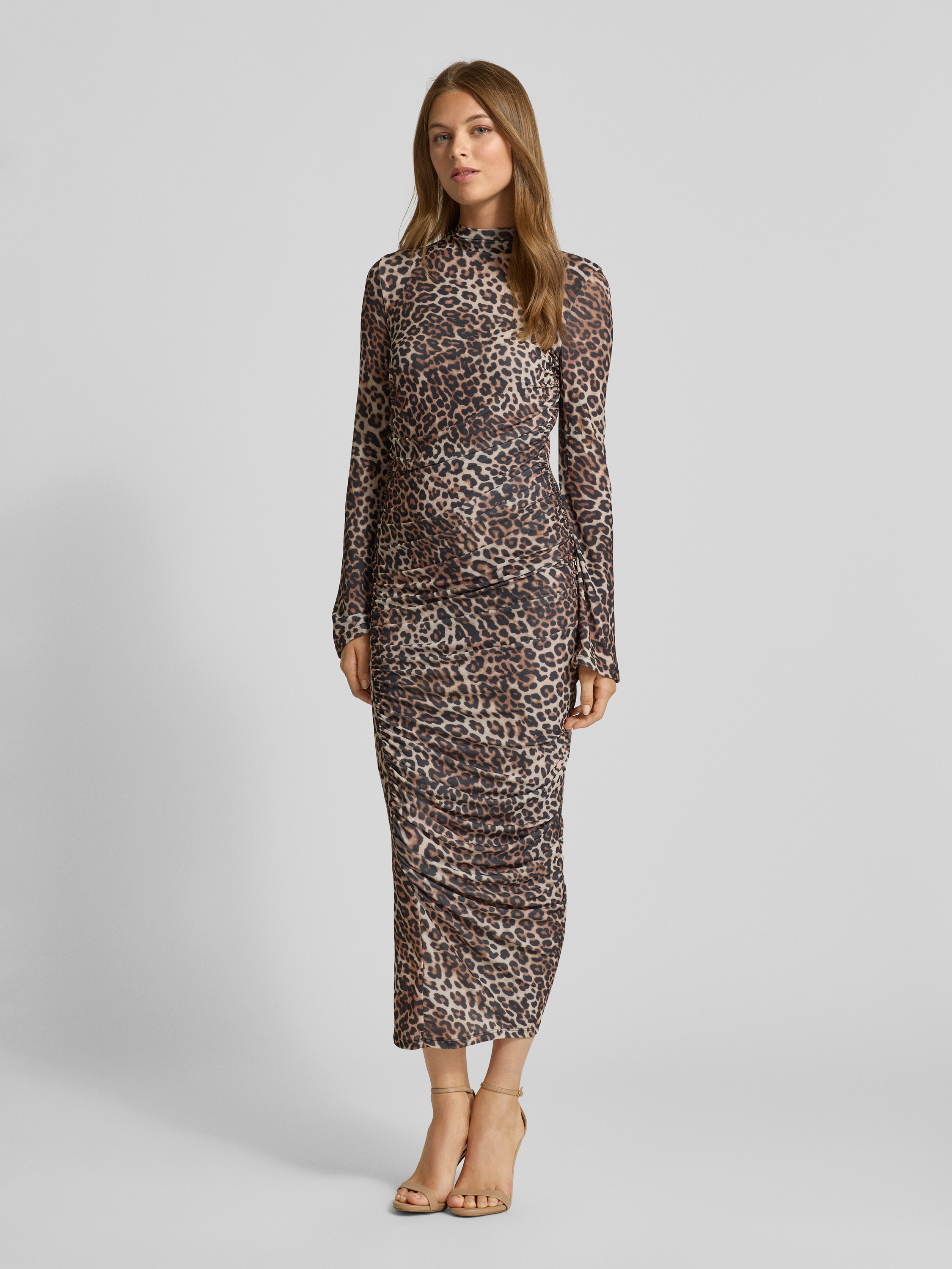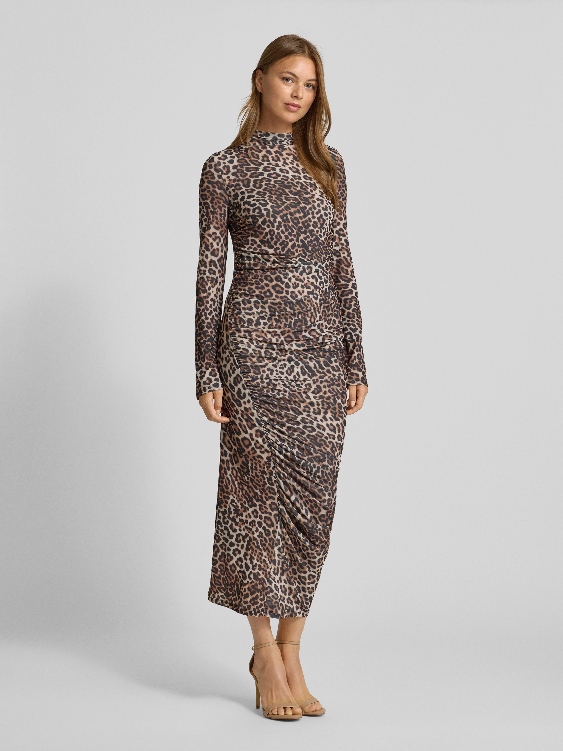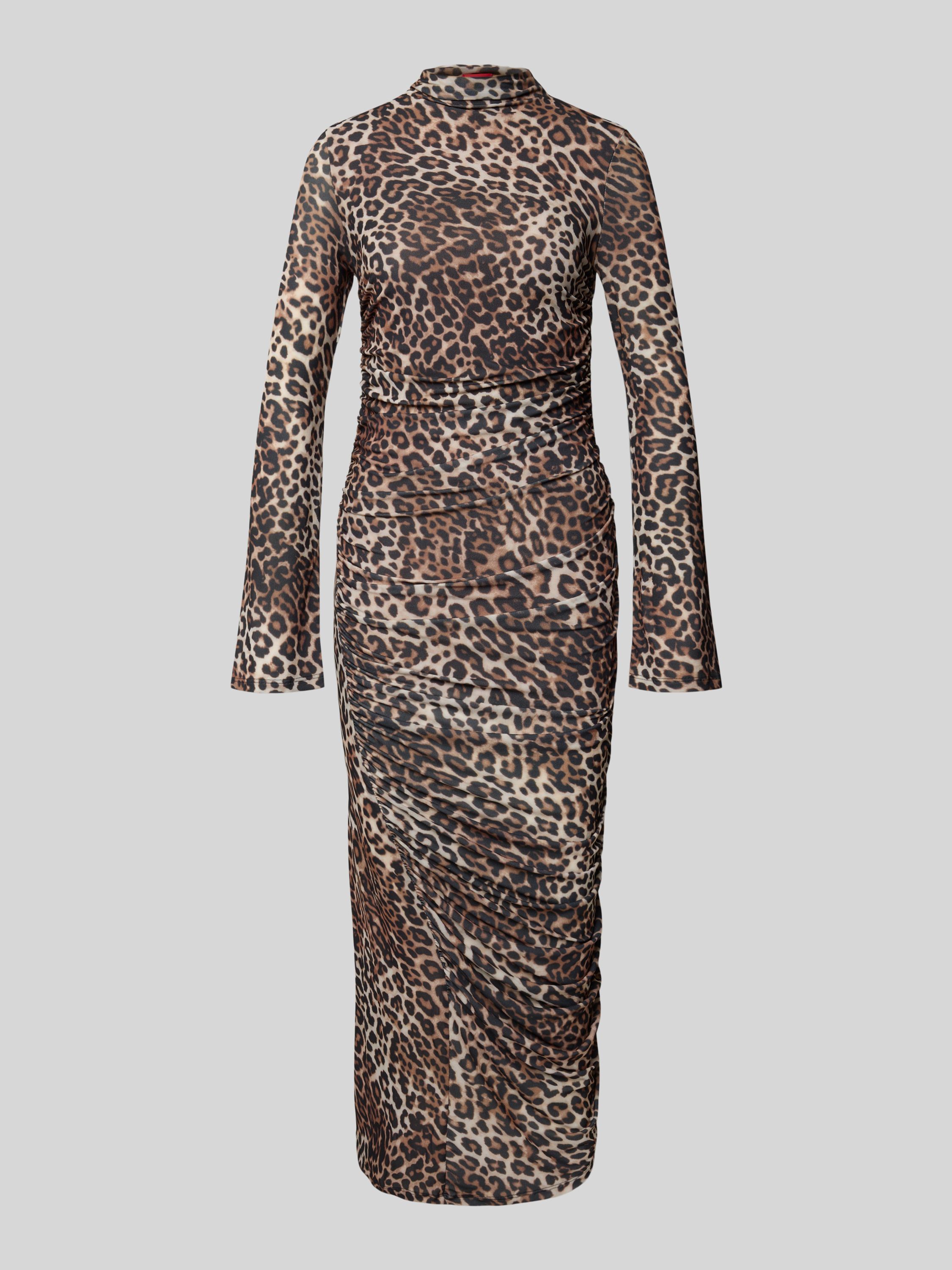 Das HUGO Slim Fit Midikleid aus elastischem Mesh-Krepp schmiegt sich angenehm an und sorgt durch die raffinierte Raffung für eine dezente Silhouette. Das Allover-Animal-Print-Muster verleiht dem Look eine dynamische Note, während das Unterfutter Komfort bei jeder Bewegung ermöglicht.