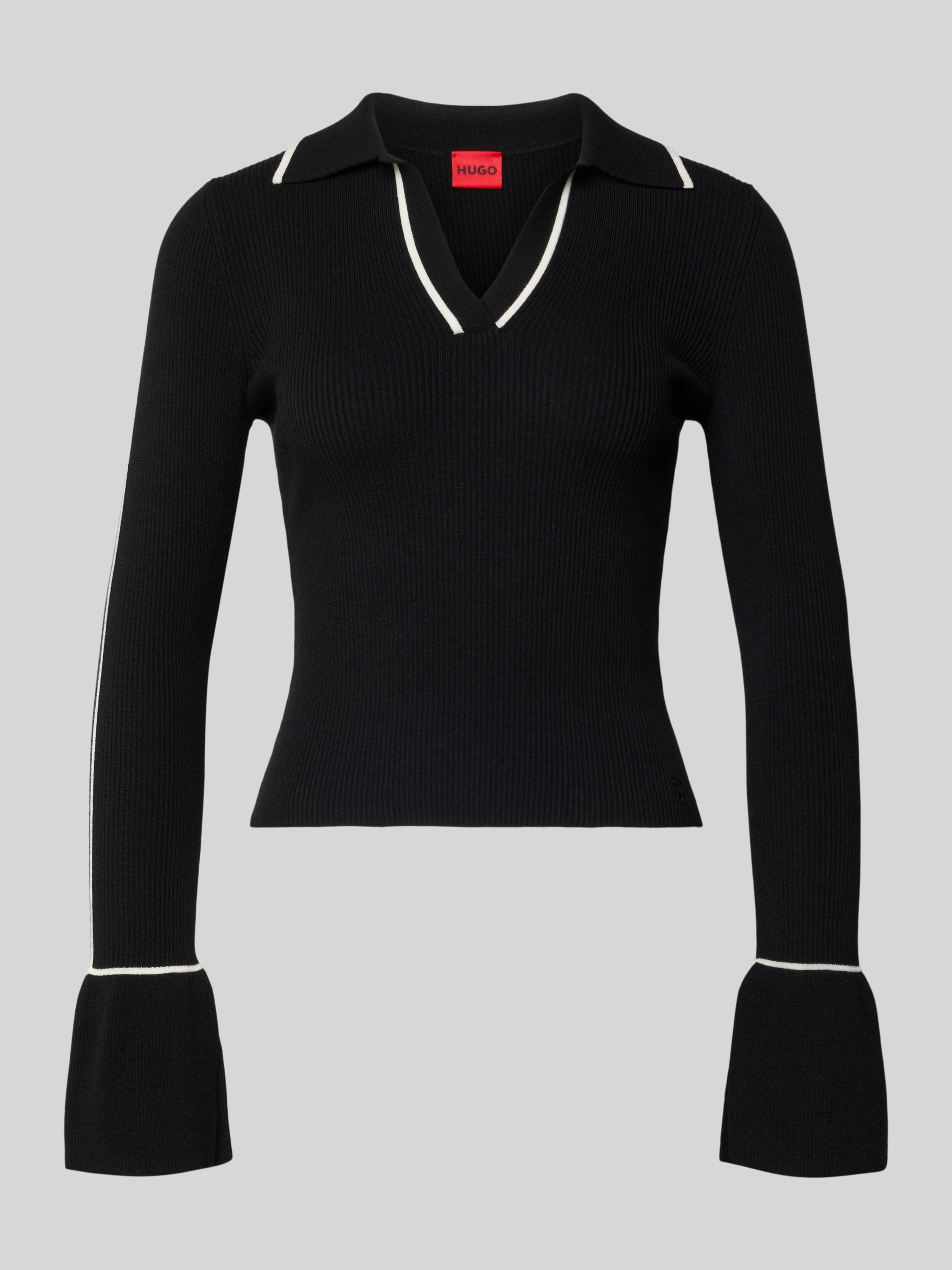 Das Damen Strickshirt von HUGO, Modell Samur, legt den Fokus auf eine schlanke Silhouette und sorgt durch die Slim Fit Passform für eine moderne Linie. Der V-Ausschnitt und die Kontraststreifen bringen dezente Akzente in das unifarbene Design. Dank des angenehm verarbeiteten Viskose-Mix im Rippstrick fühlt sich das Shirt weich an und lässt sich vielseitig kombinieren.