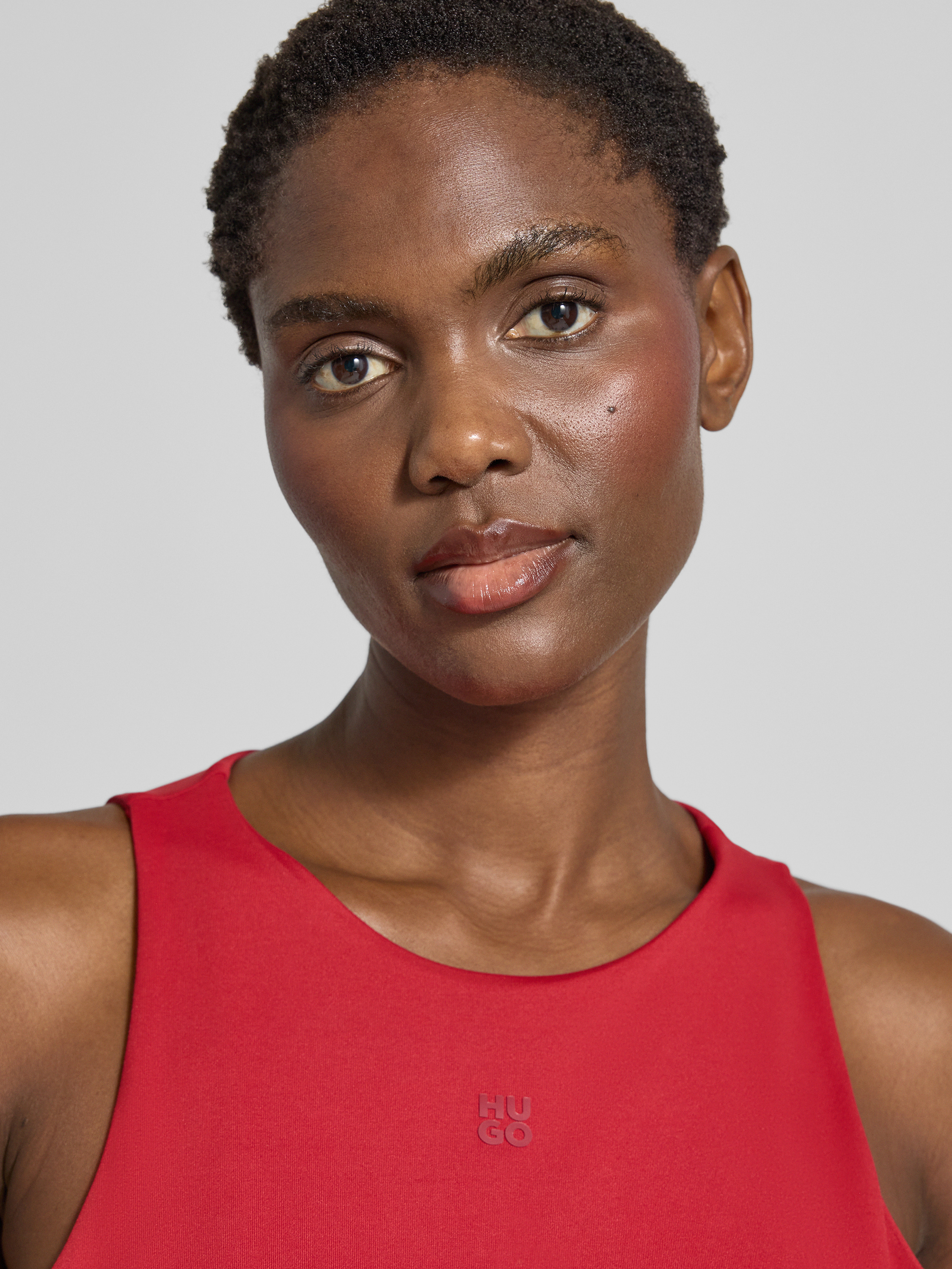 Das Damen Tank Top von HUGO, Modell Datamia, zeichnet sich durch einen schmalen Schnitt und angenehm breite Träger aus. Der Baumwoll-Mix sorgt für ein weiches Gefühl auf der Haut und unterstützt einen bequemen Sitz. Das schlichte Design mit Label Stitching lässt sich vielseitig kombinieren.