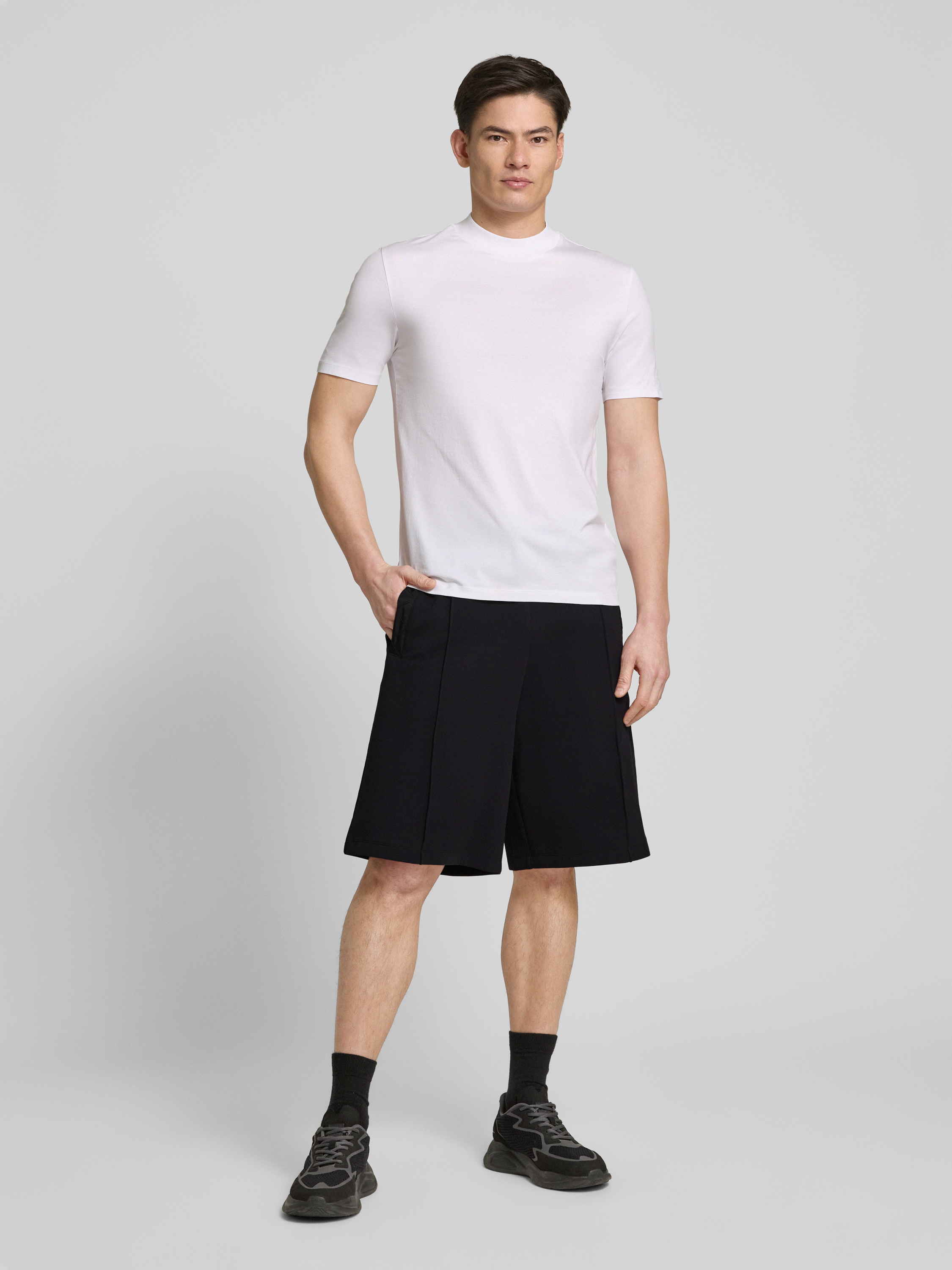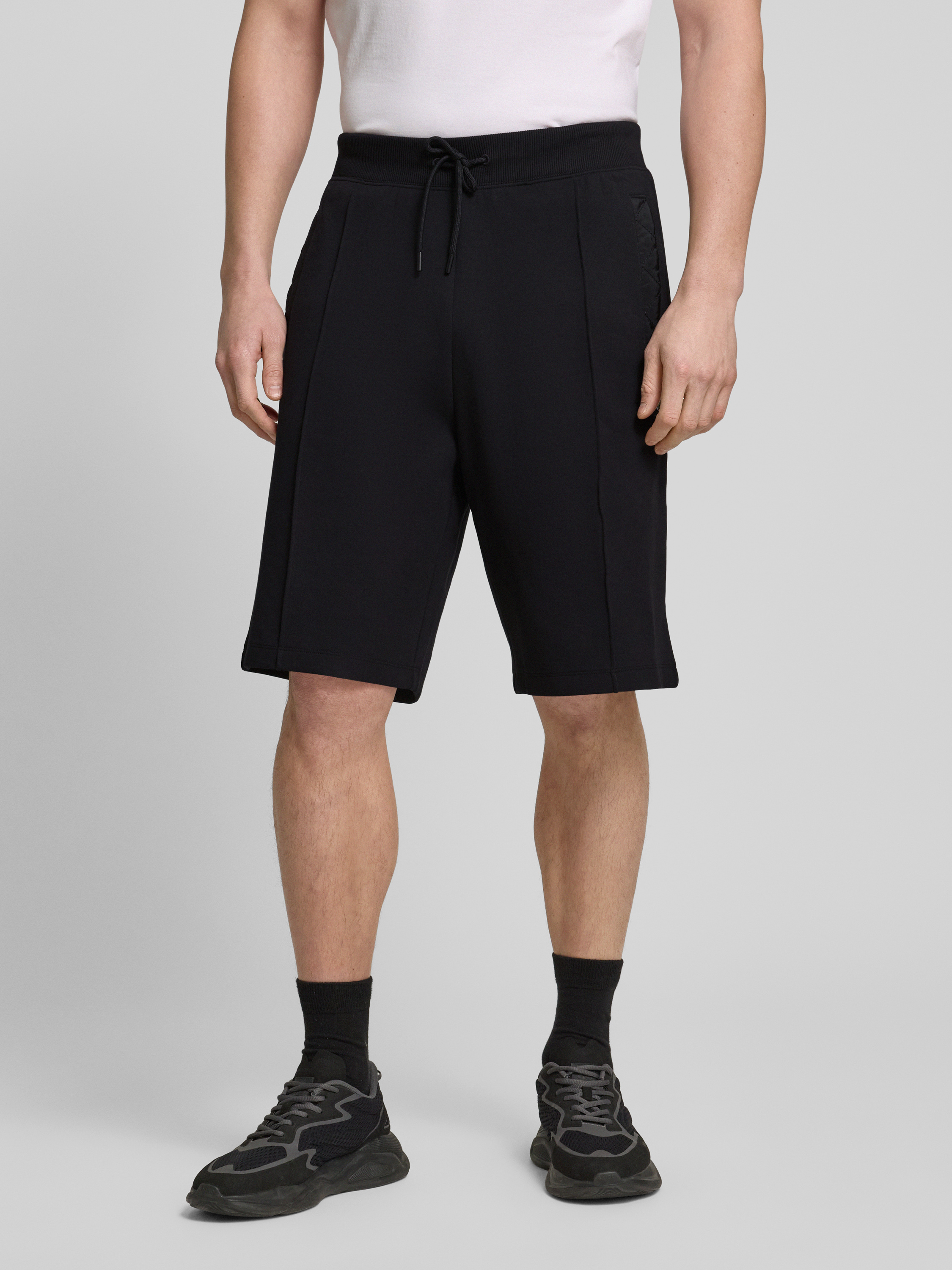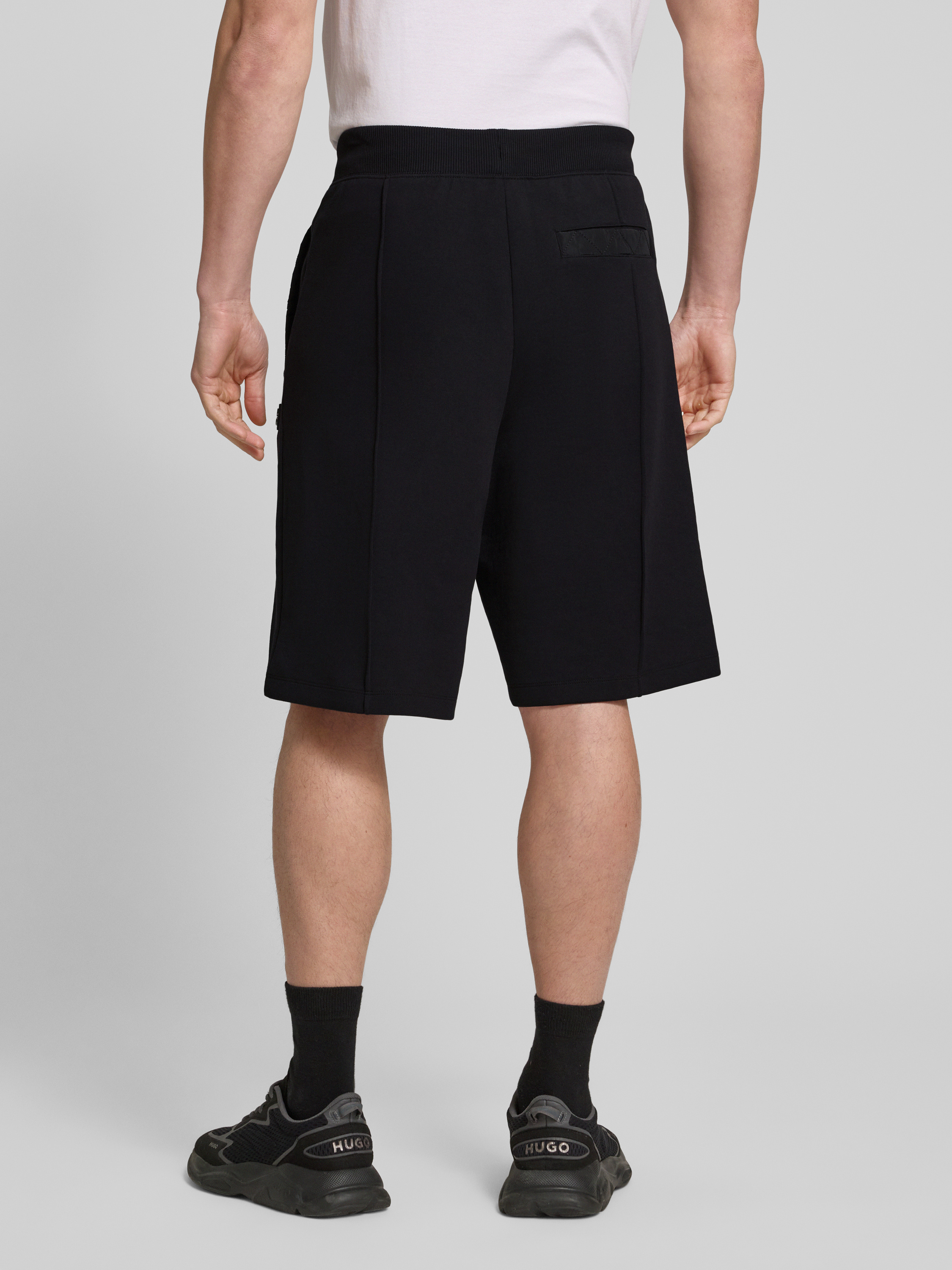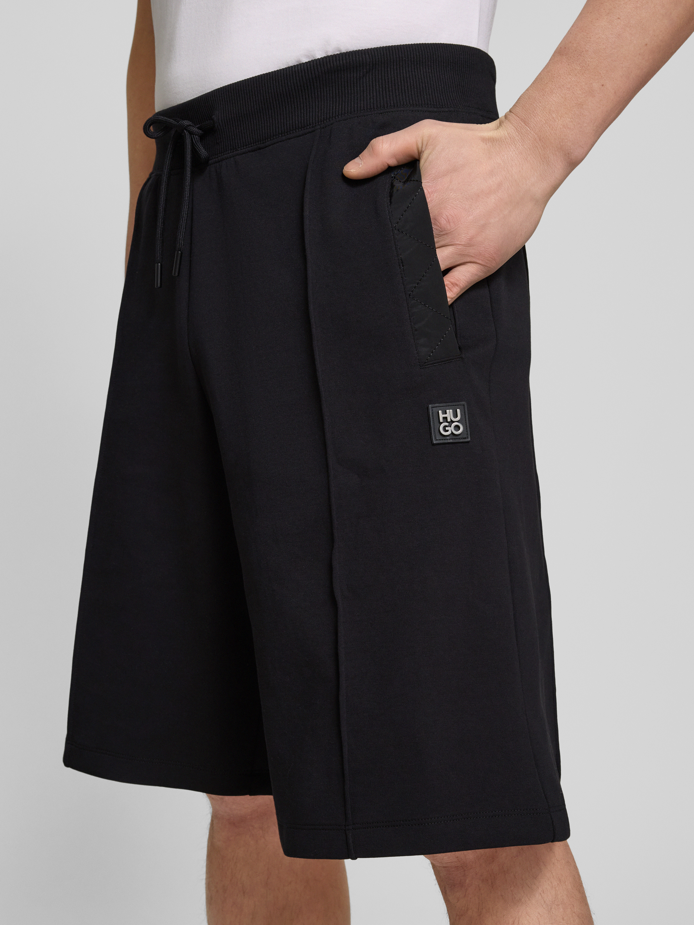 Die Sweatshorts 'Dilmos' von HUGO bieten mit ihrem Baumwoll-Mix und Stretch-Anteil hohen Tragekomfort und Bewegungsfreiheit. Durch den lockeren Schnitt und den elastischen Bund mit Tunnelzug eignen sie sich ideal für entspannte Tage. Seitliche Eingrifftaschen und Ziernähte runden das Design ab.