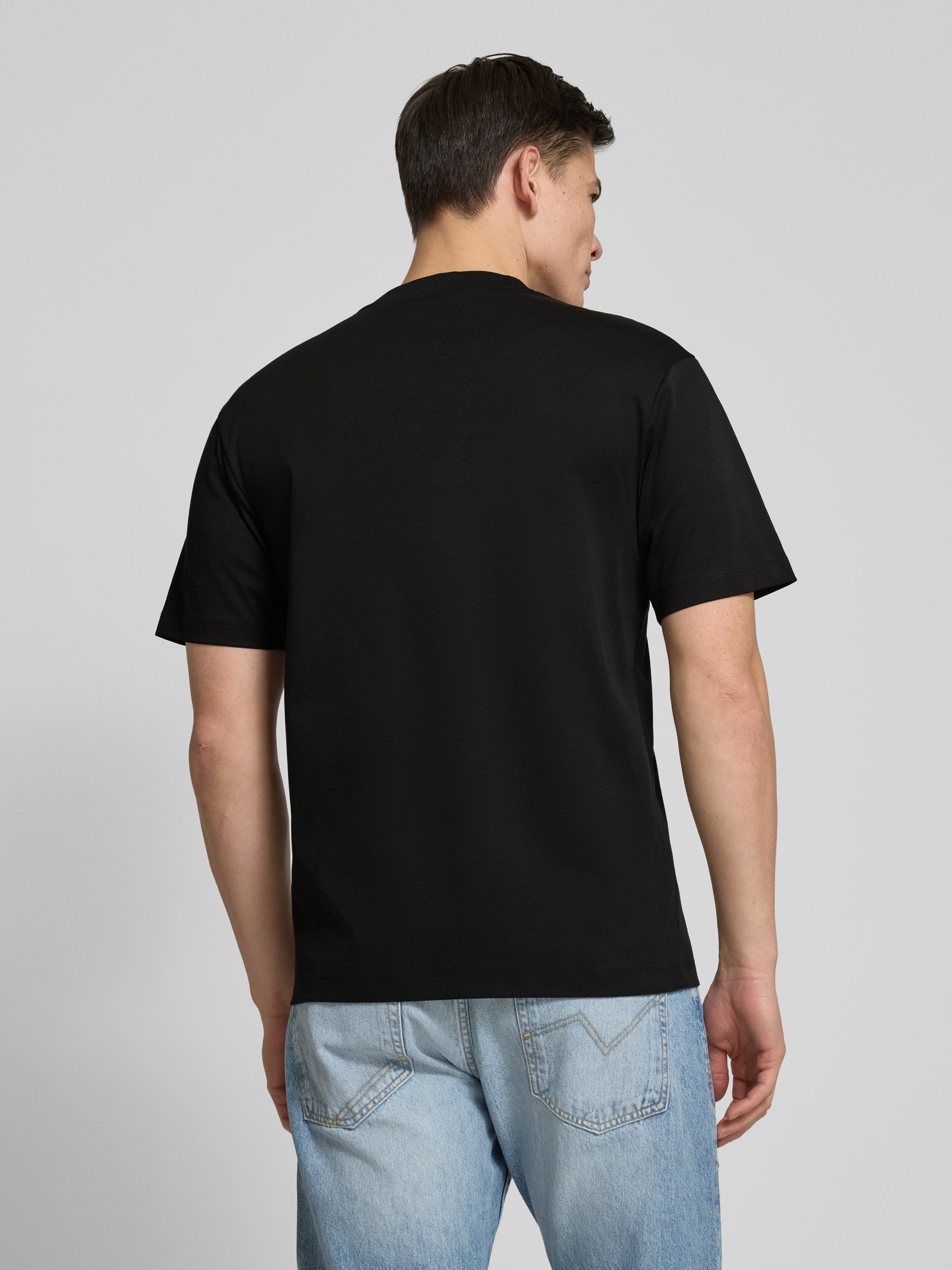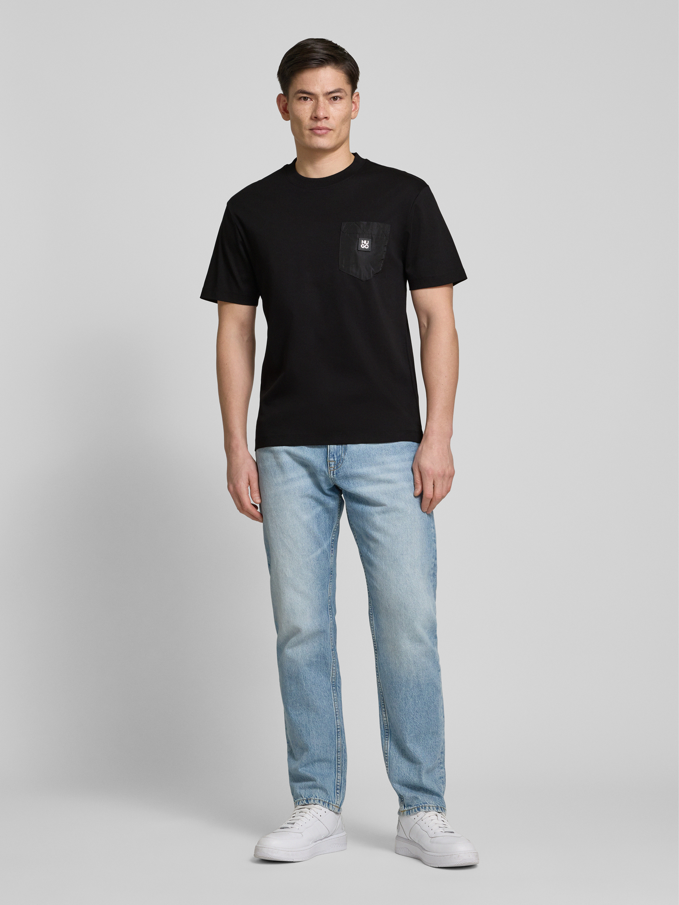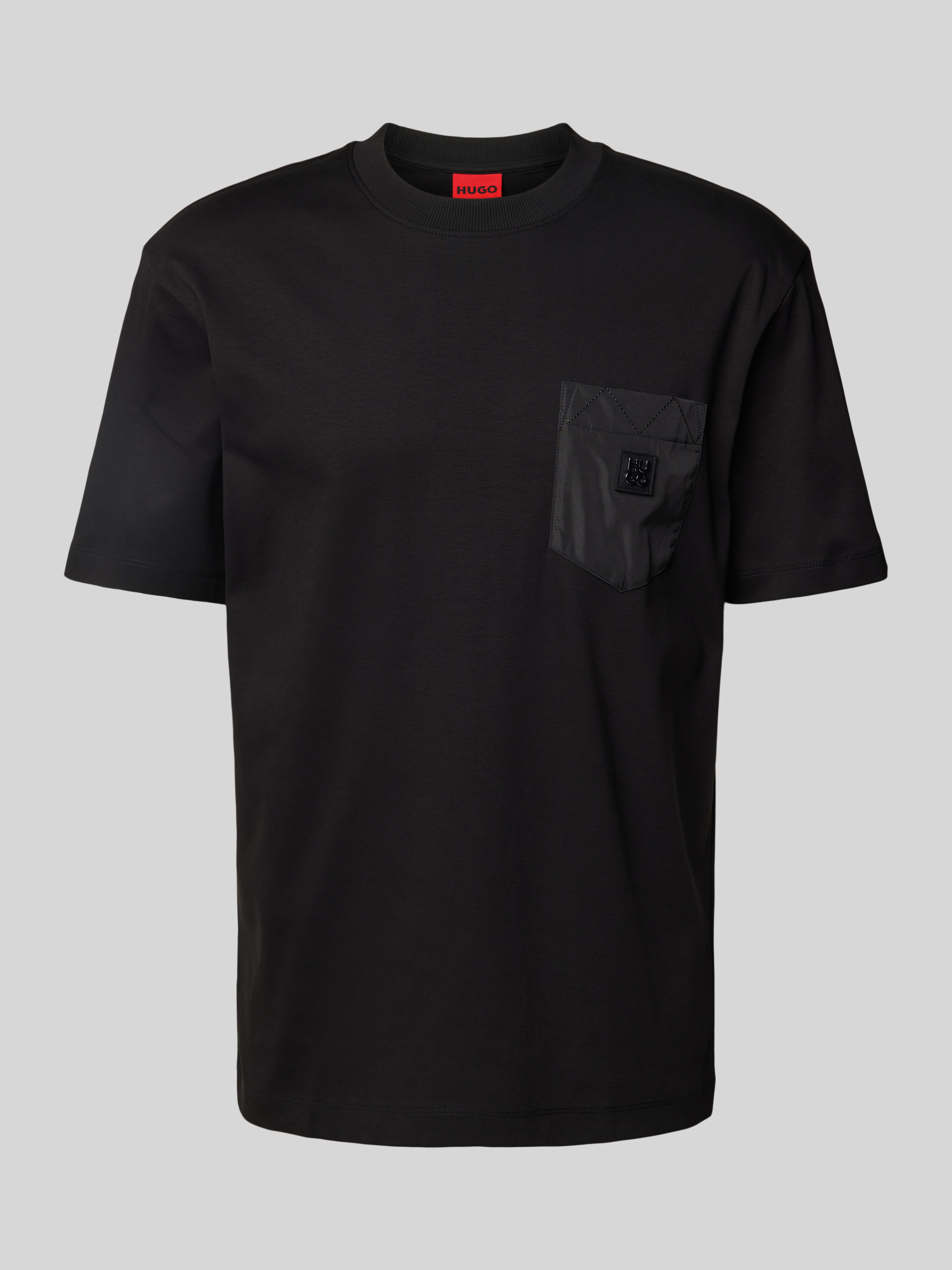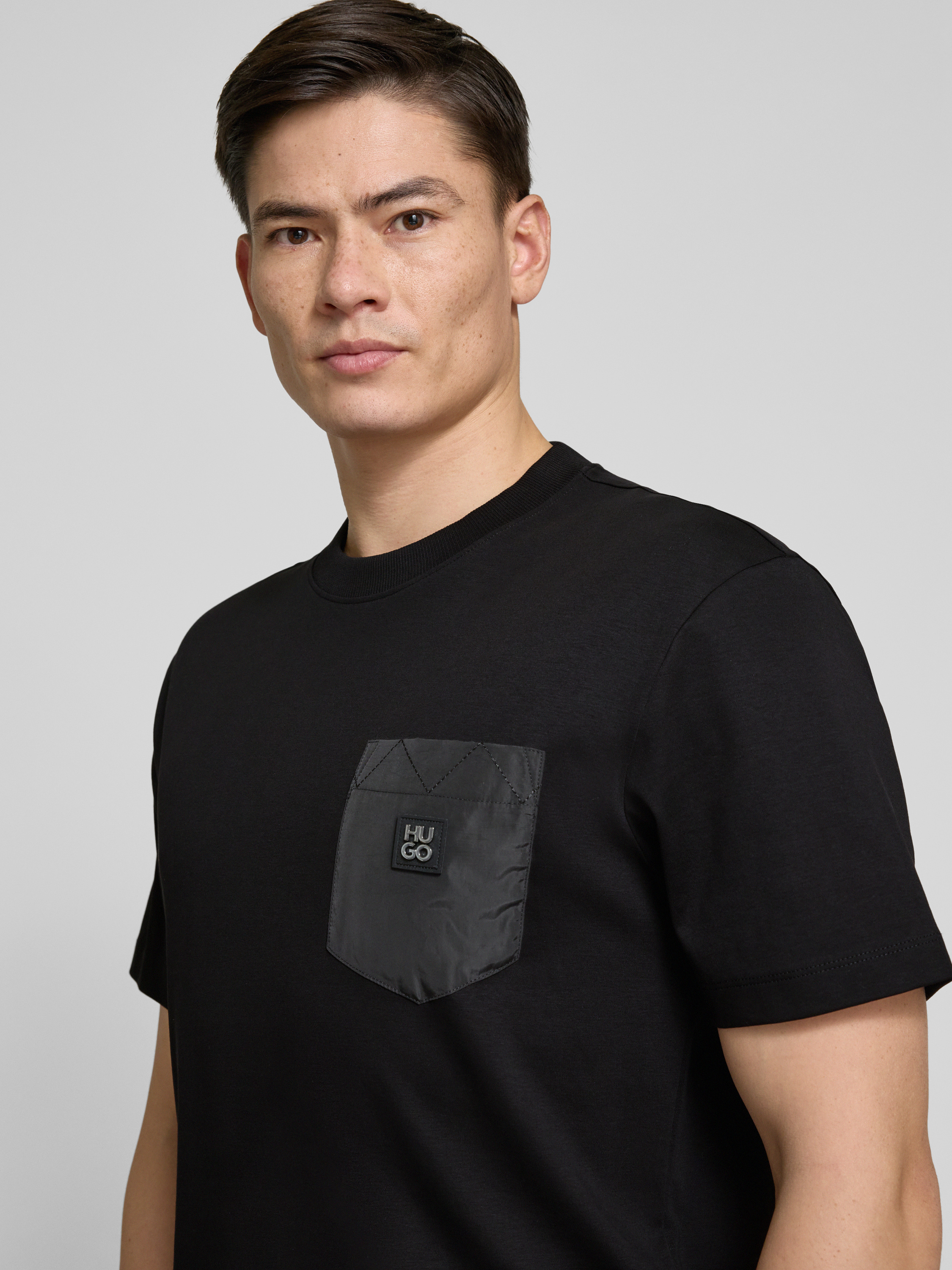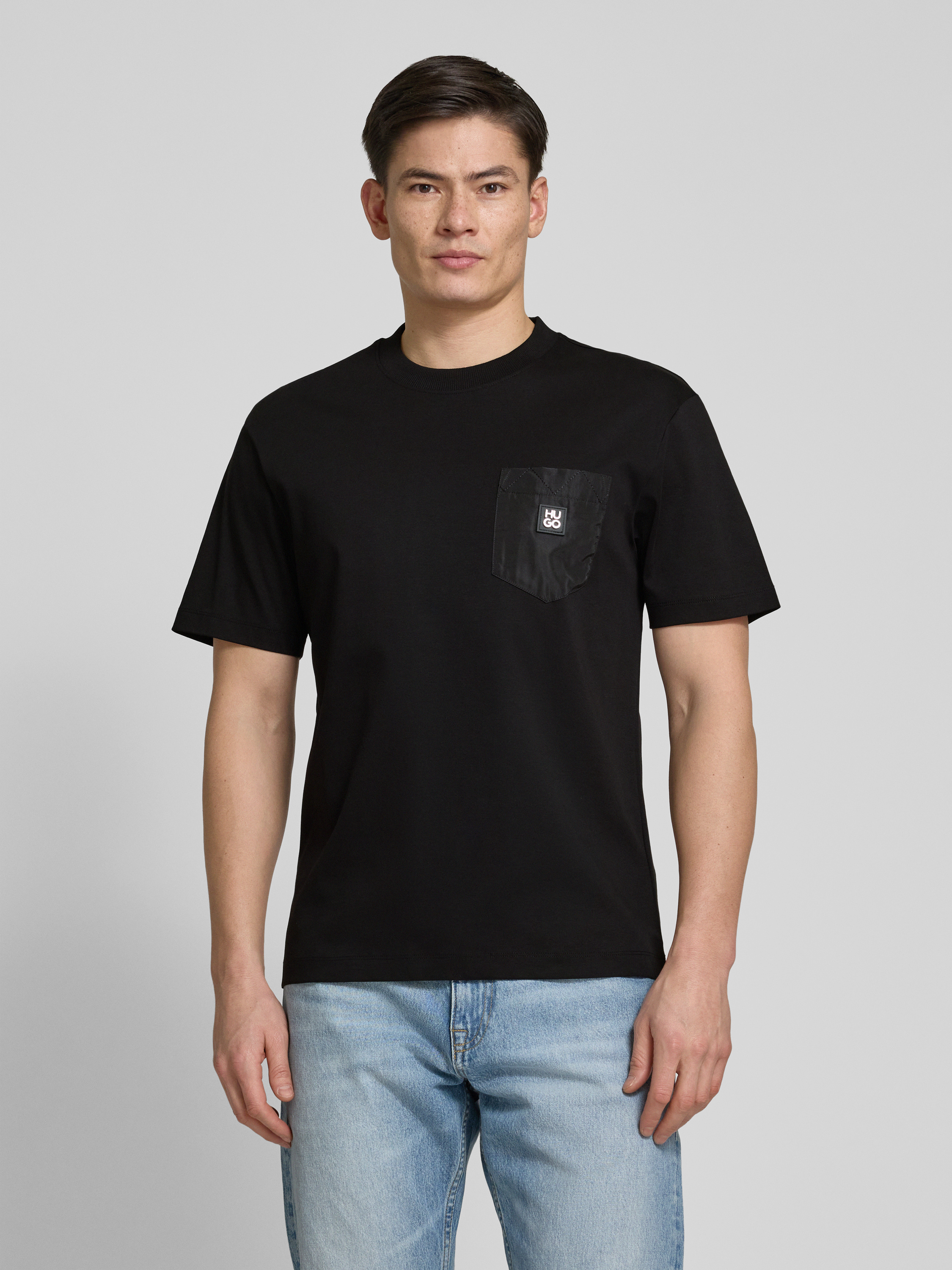 Das Herren T-Shirt von HUGO präsentiert sich in einem geraden Schnitt und aus reiner Baumwolle, was für angenehmen Tragekomfort sorgt. Der Rundhalsausschnitt verleiht ihm einen klassischen Look, während der Label-Patch und die Brusttasche dezente Akzente setzen. Ideal für den Alltag geeignet.