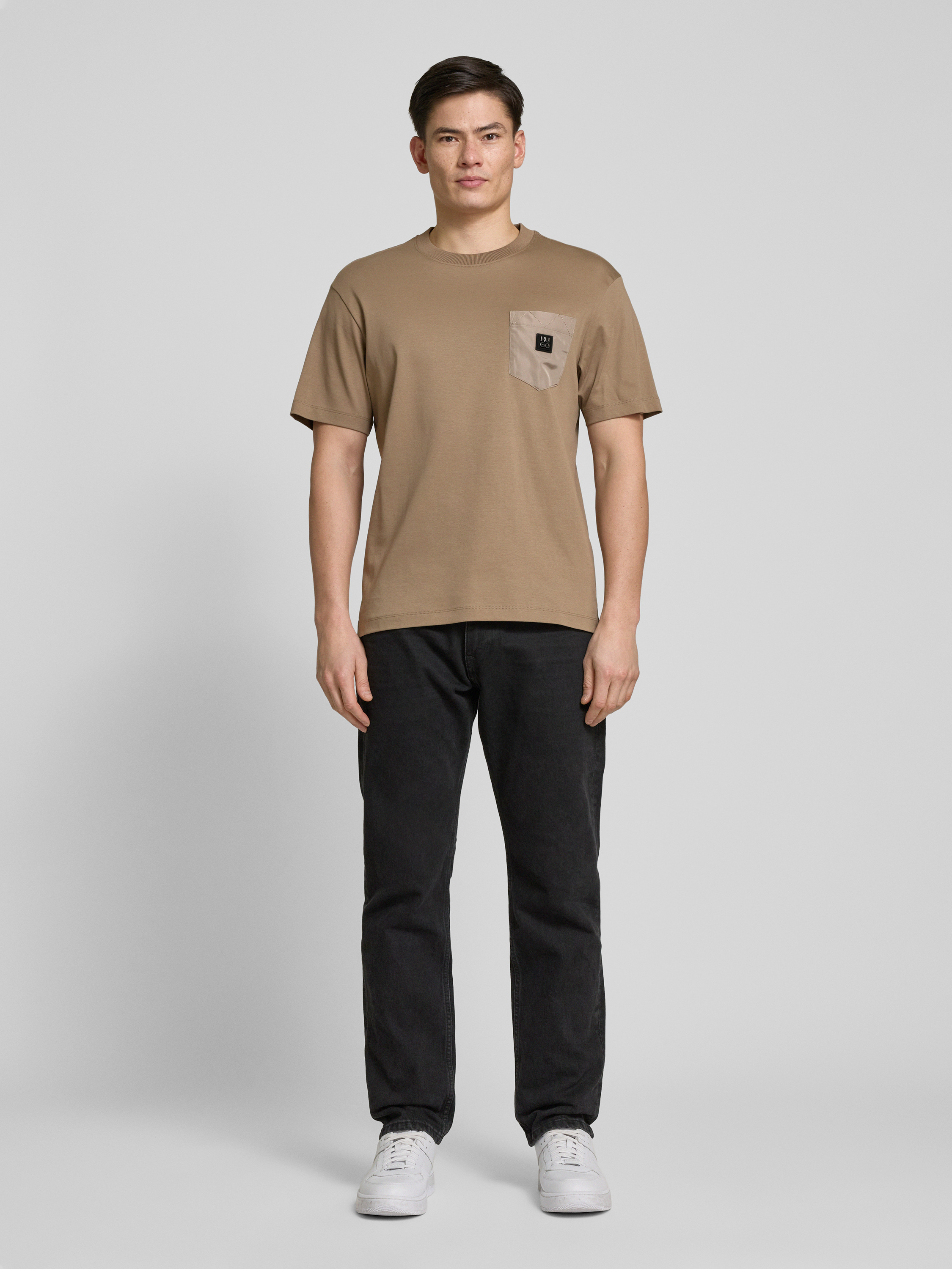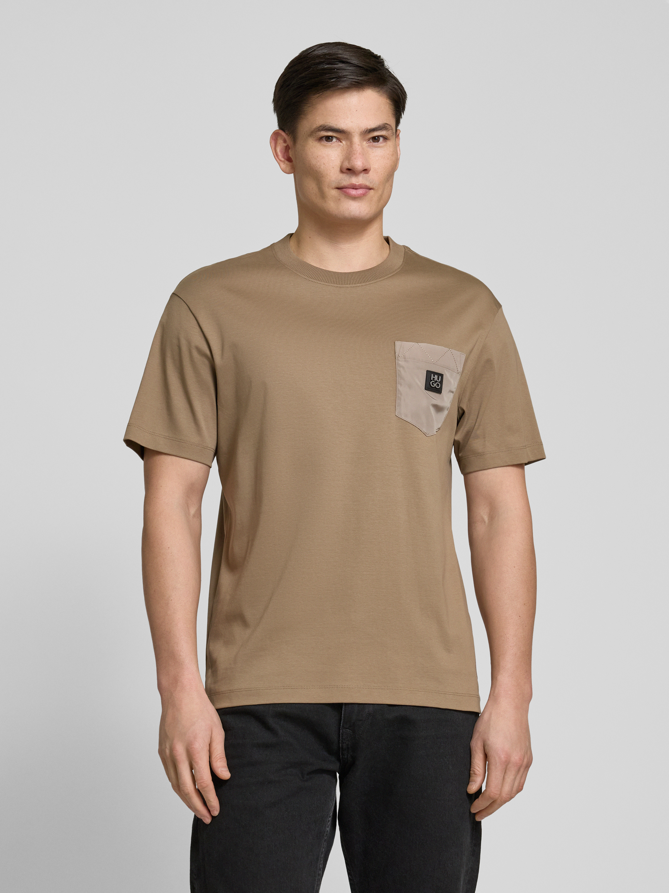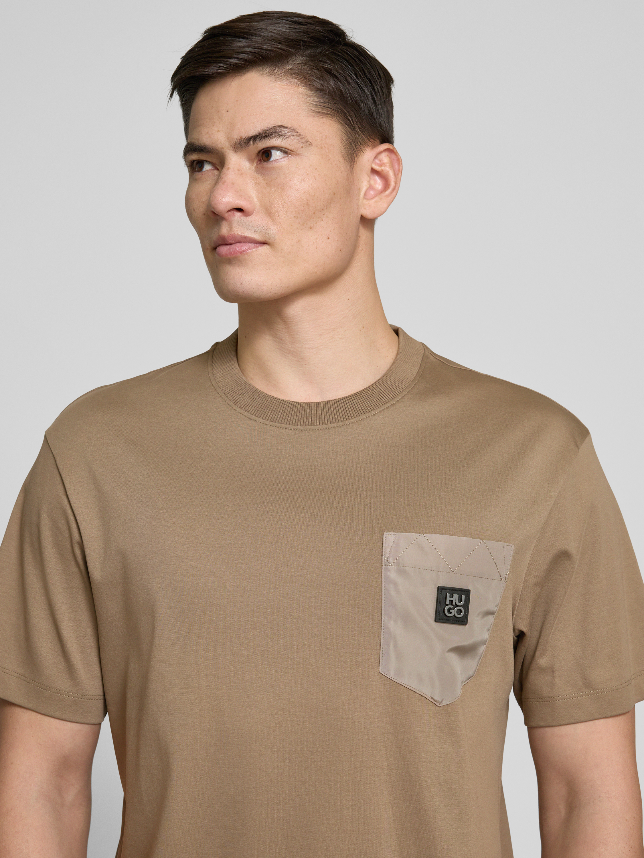 HUGOT-Shirt mit Label-Patch in hellbraun