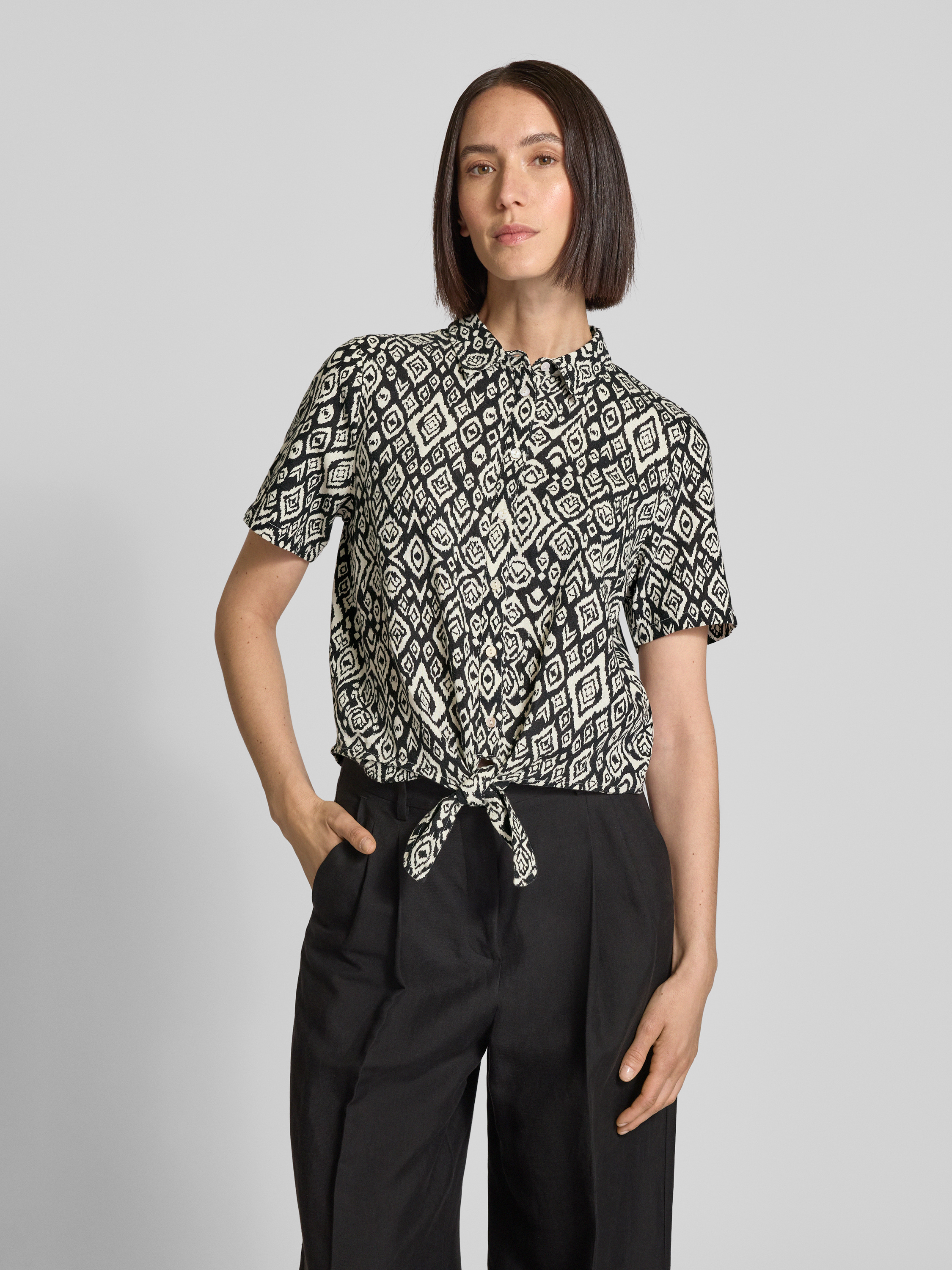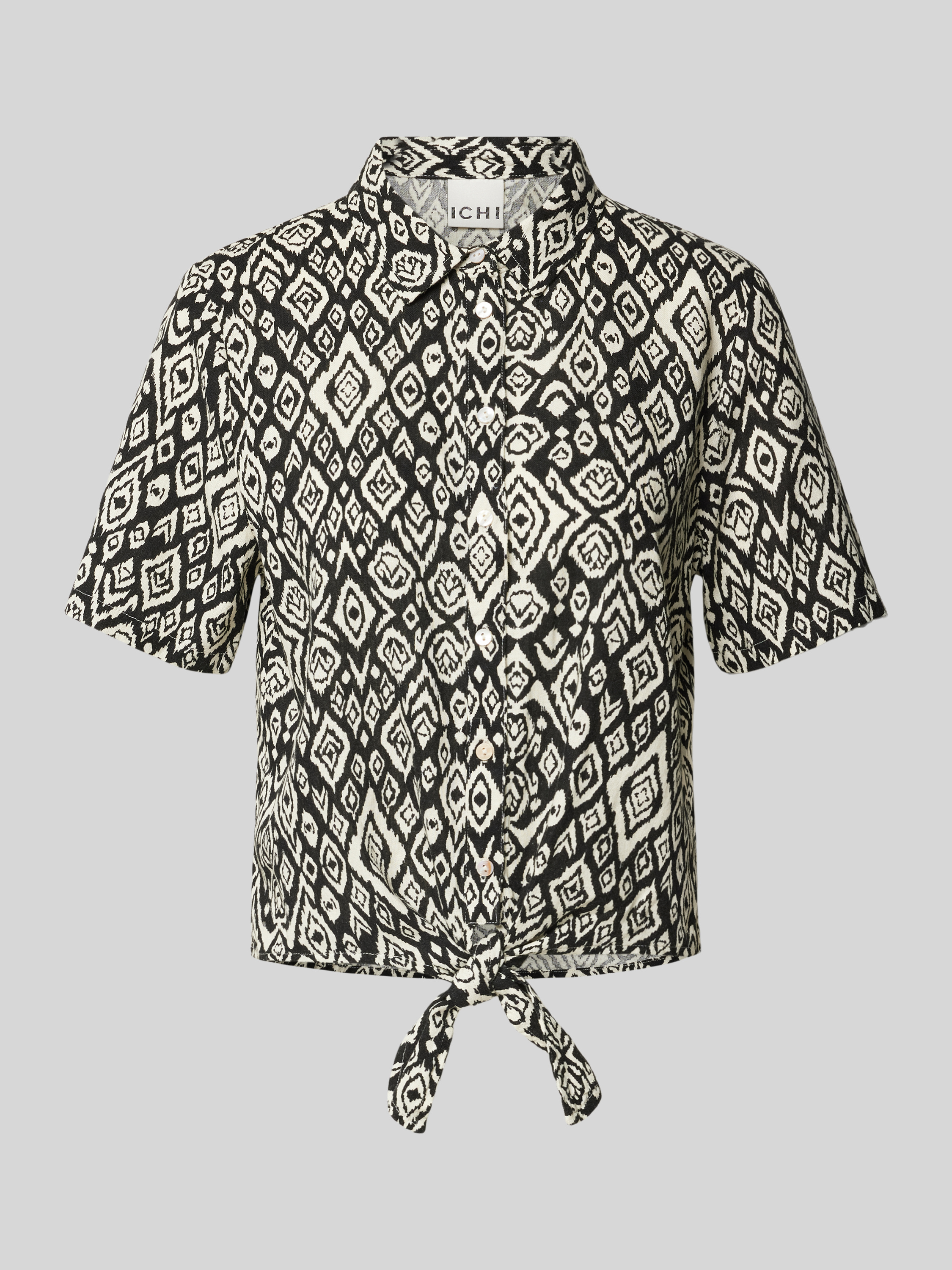 ICHIRegular Fit Bluse aus Leinen-Viskose-Mix mit Knotendetail in black
