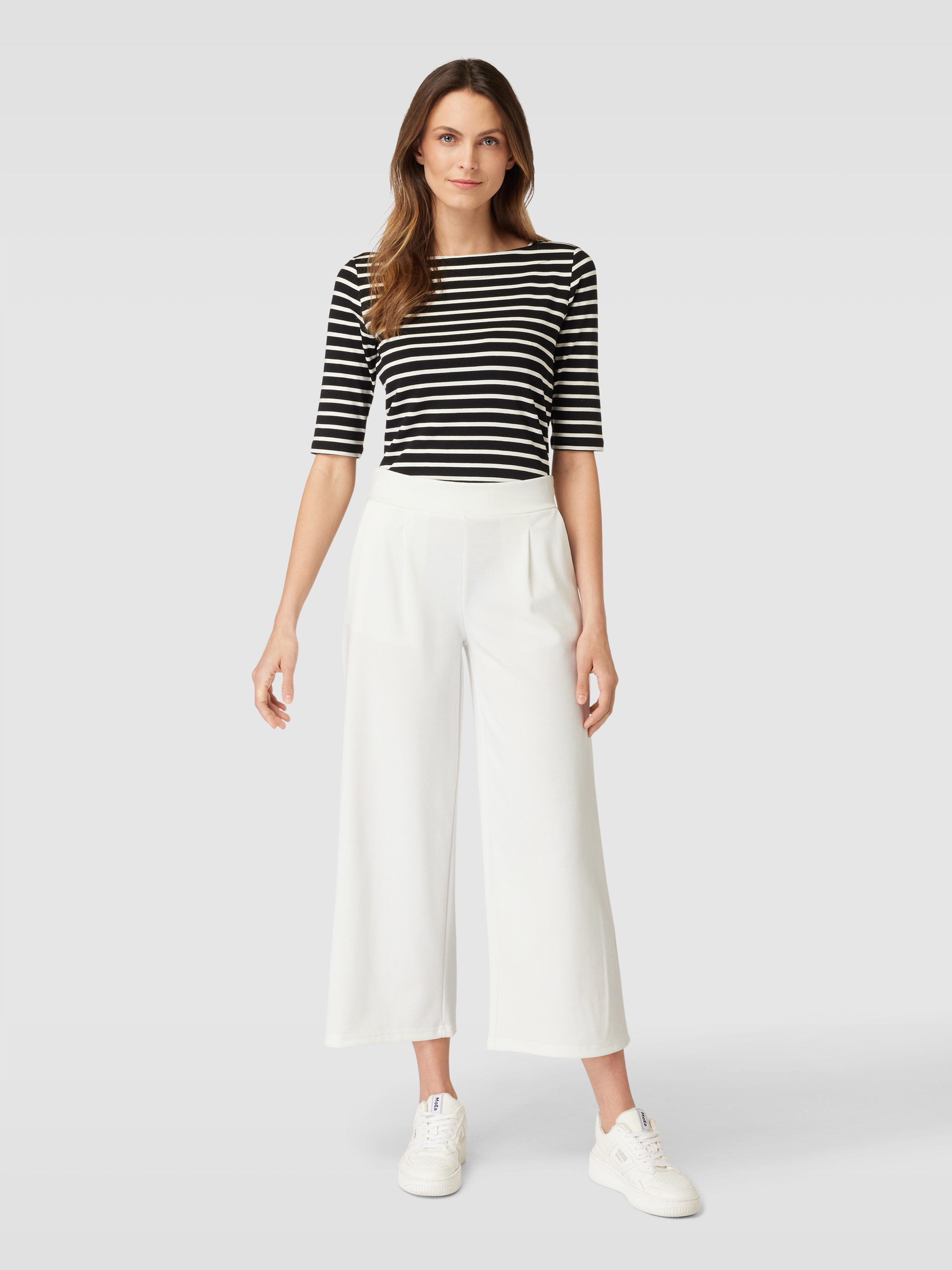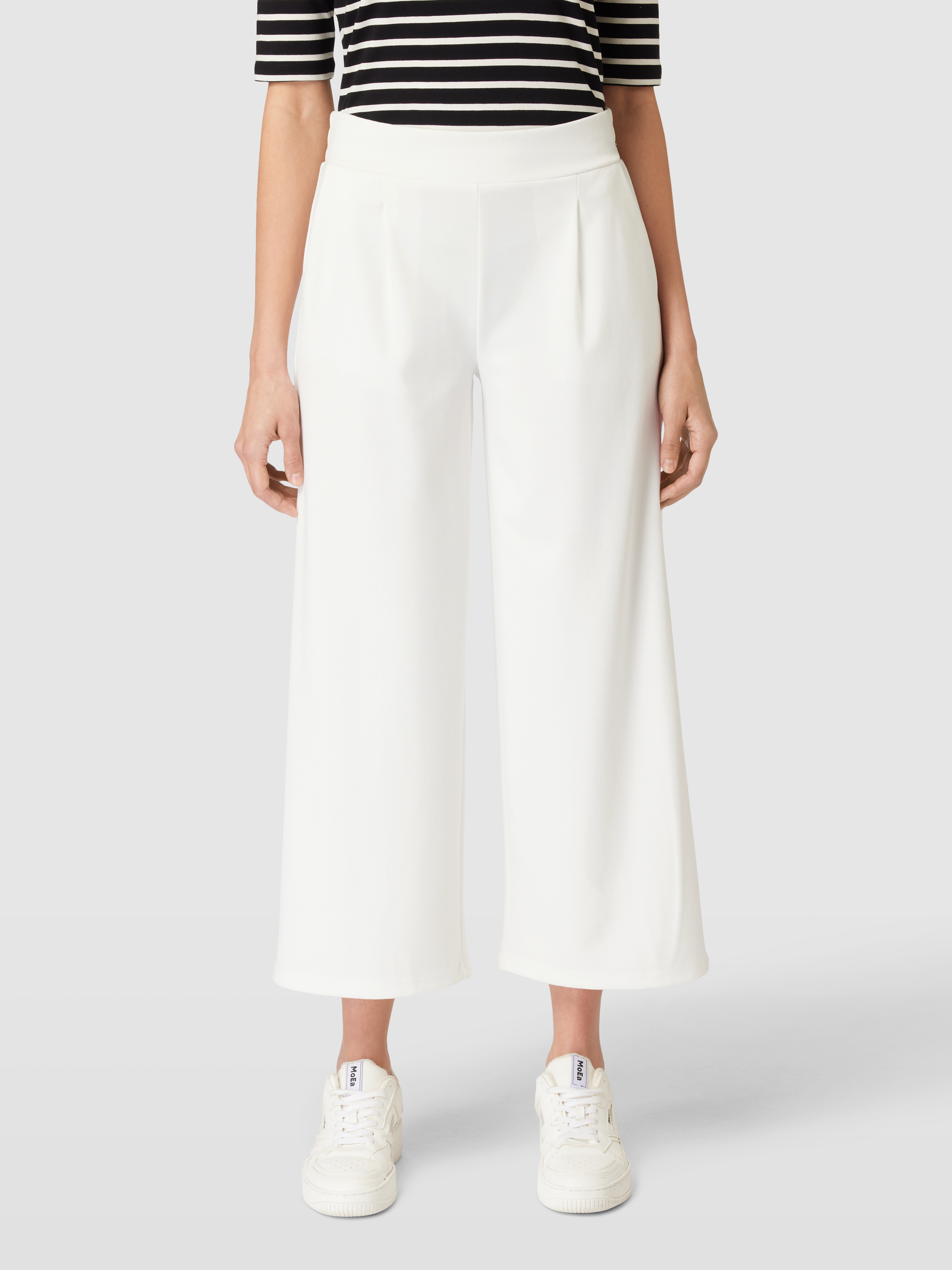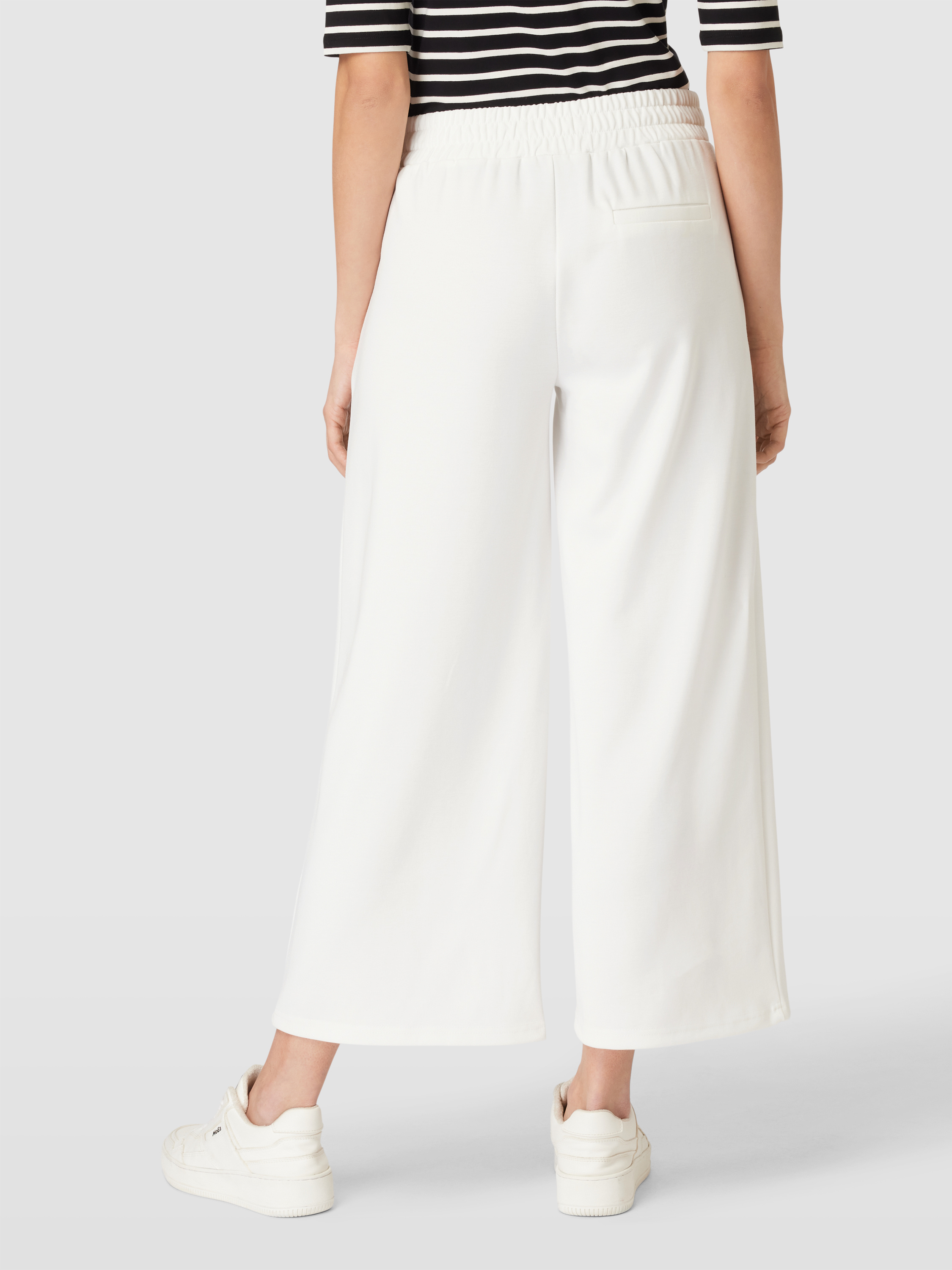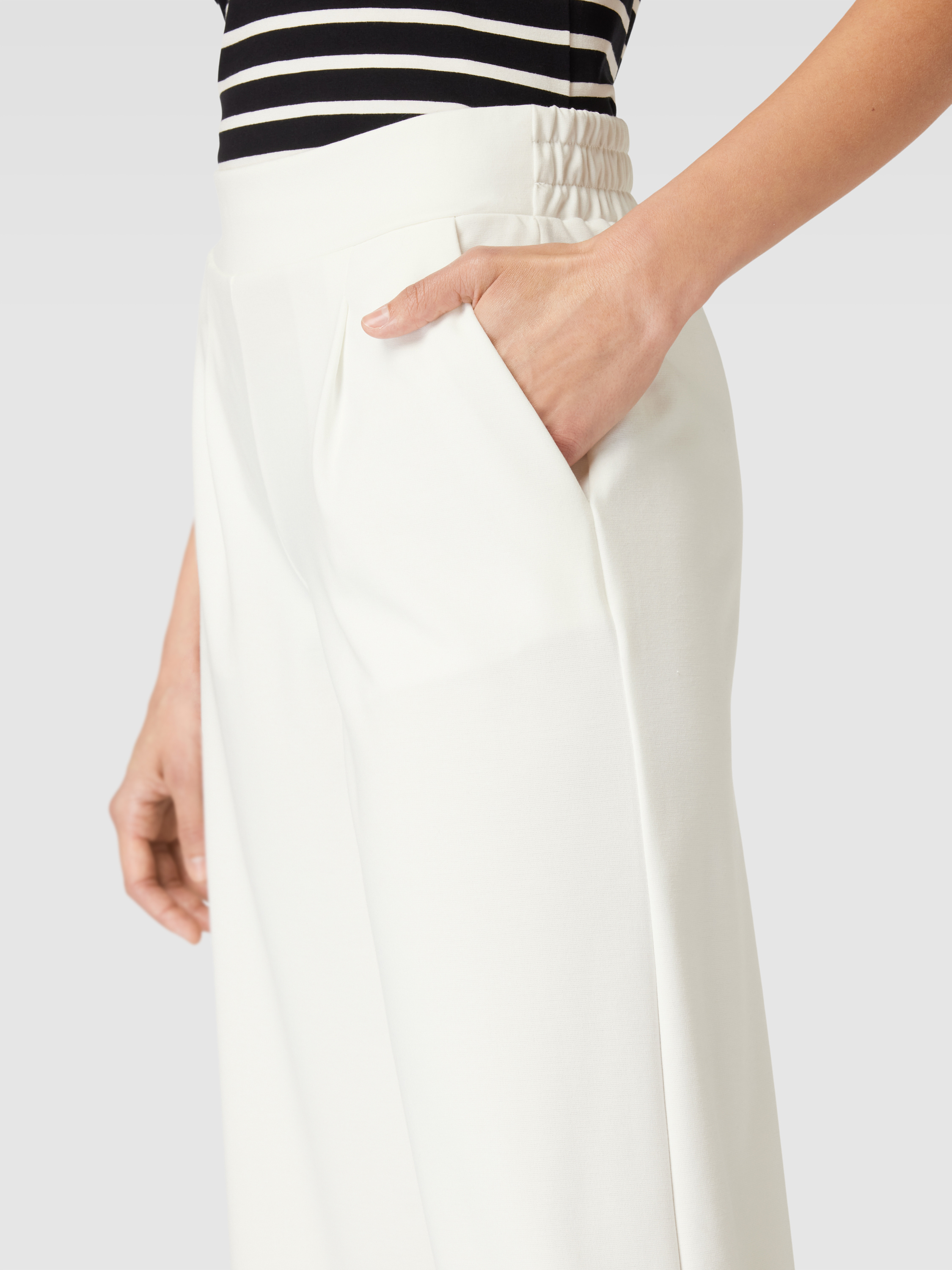 Die Stoffhose von ICHI, Modell 'Kate', vereint durchdachtes Design mit einem angenehmen Material-Mix, der Viskose enthält. Dank der lockeren Passform und des elastischen Bundes bietet sie hohen Tragekomfort. Eingrifftaschen ergänzen das unifarbene Design und sorgen für zusätzliche Funktionalität.