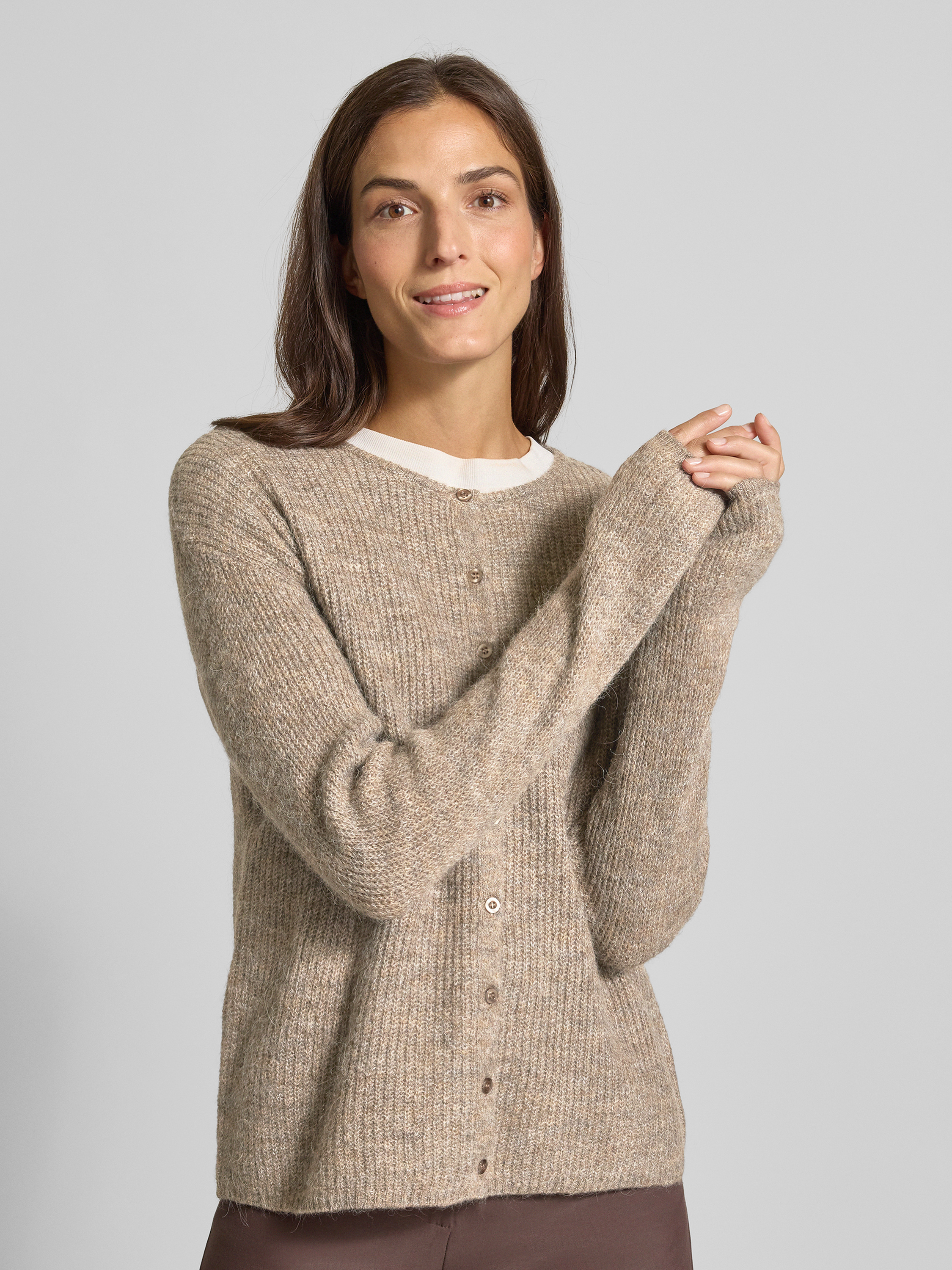 ICHIStrickjacke mit Rundhalsausschnitt Modell 'KAMARA' in taupe