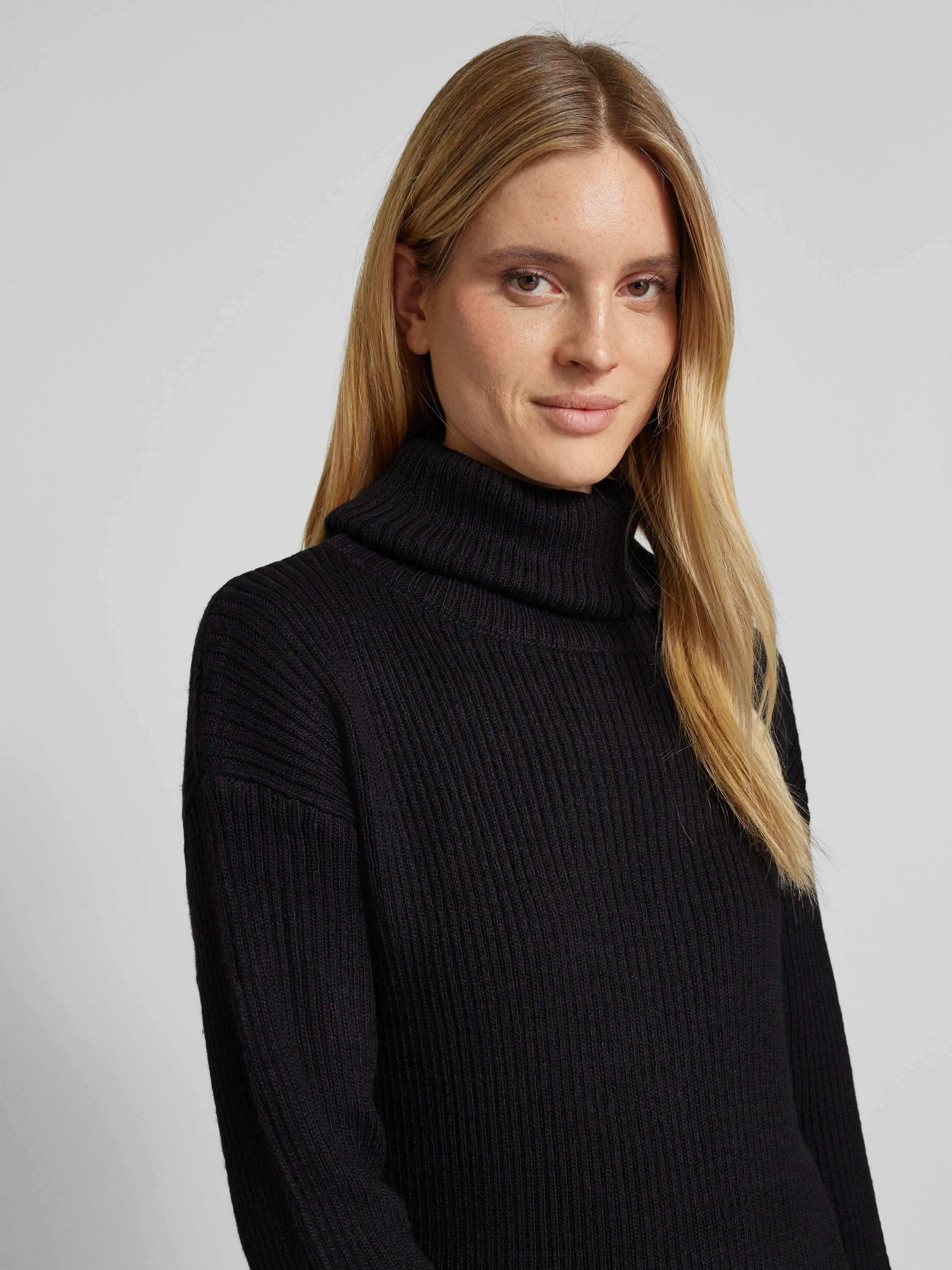 Das Strickkleid 'ANDOSA' von ICHI kombiniert stilvolle Eleganz mit funktionalem Design. Dank des geraden Schnitts und des sanften Material-Mixes schmiegt es sich angenehm an den Körper an und eignet sich ideal für kühle Tage. Der Rollkragen verleiht zusätzlichen Komfort und Wärme.