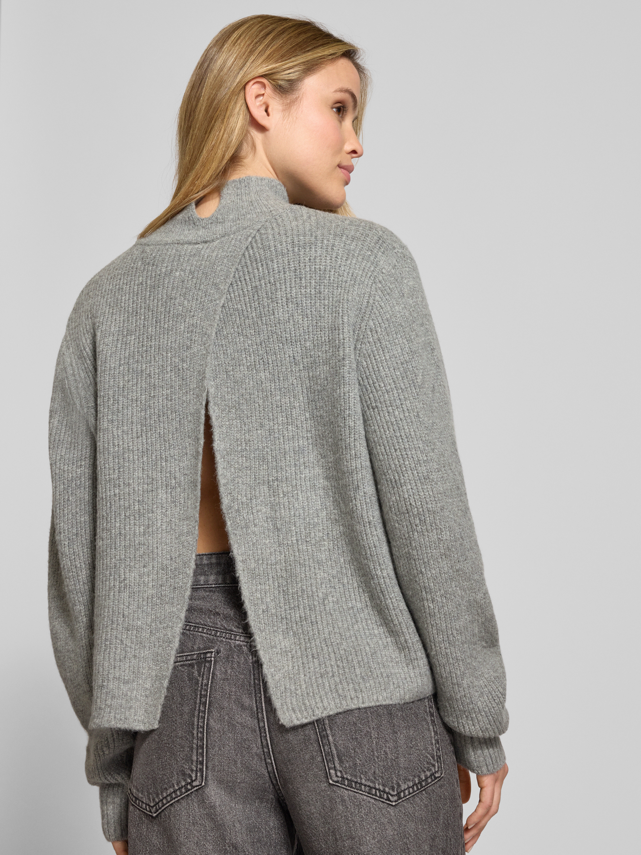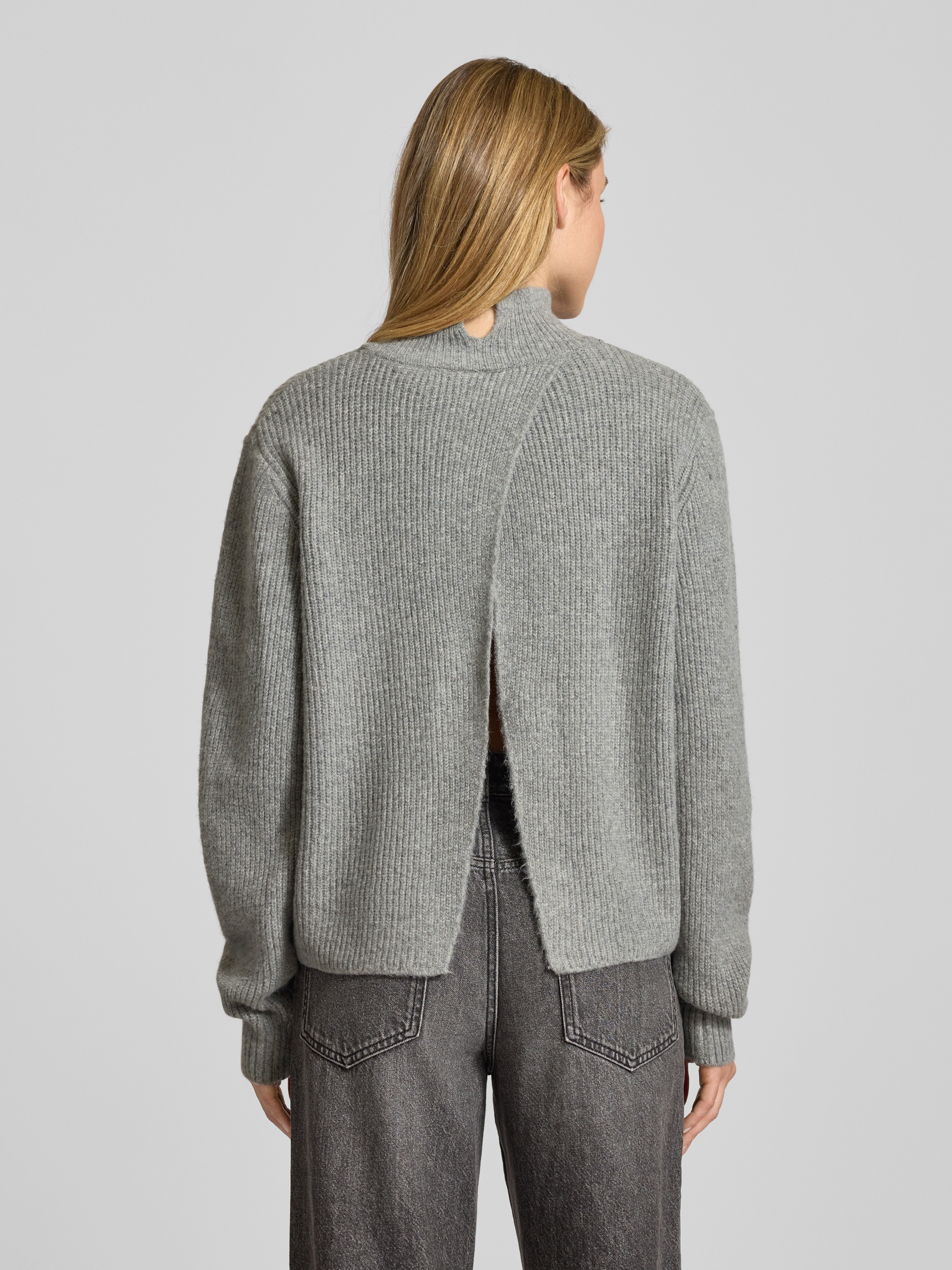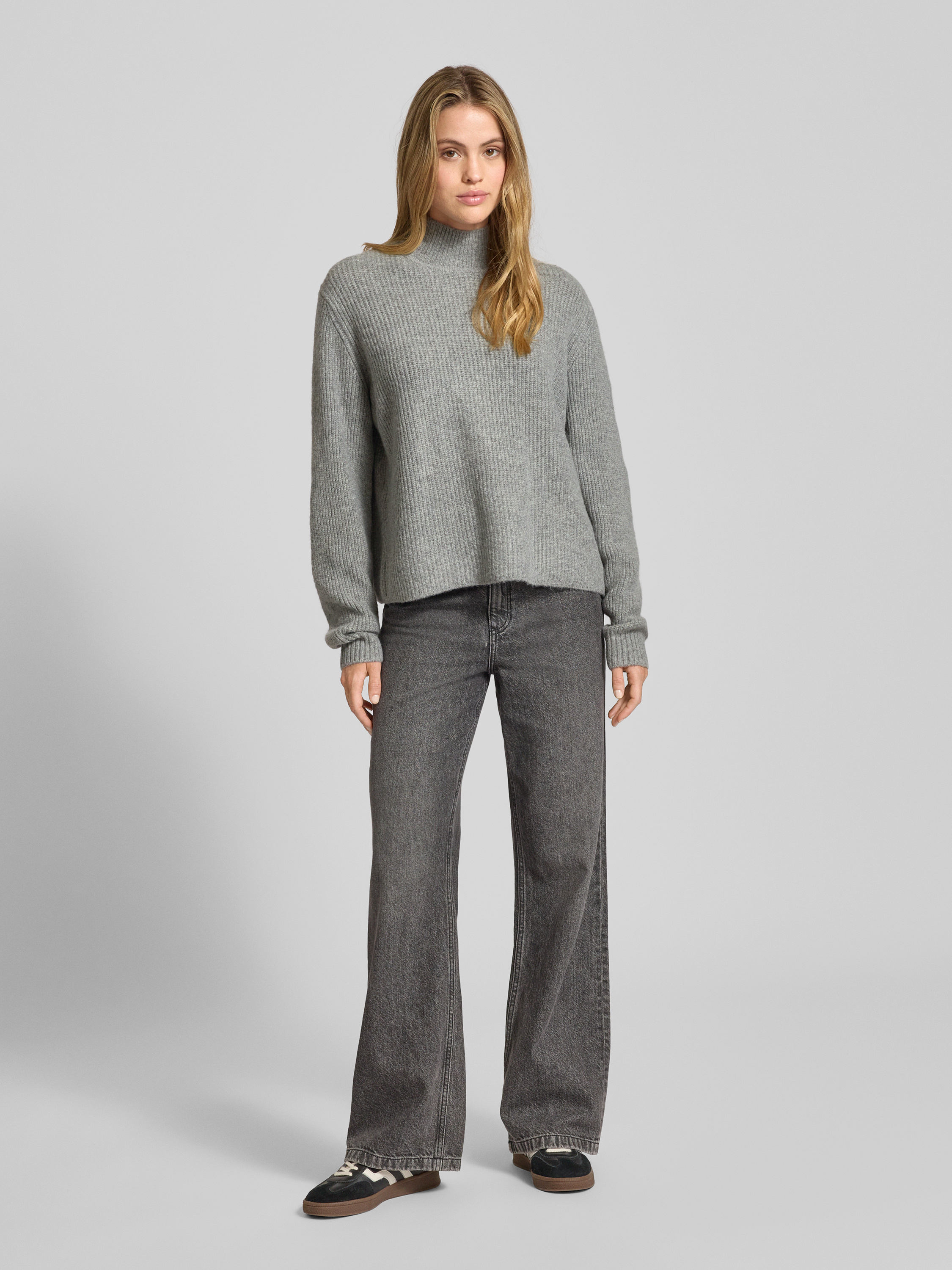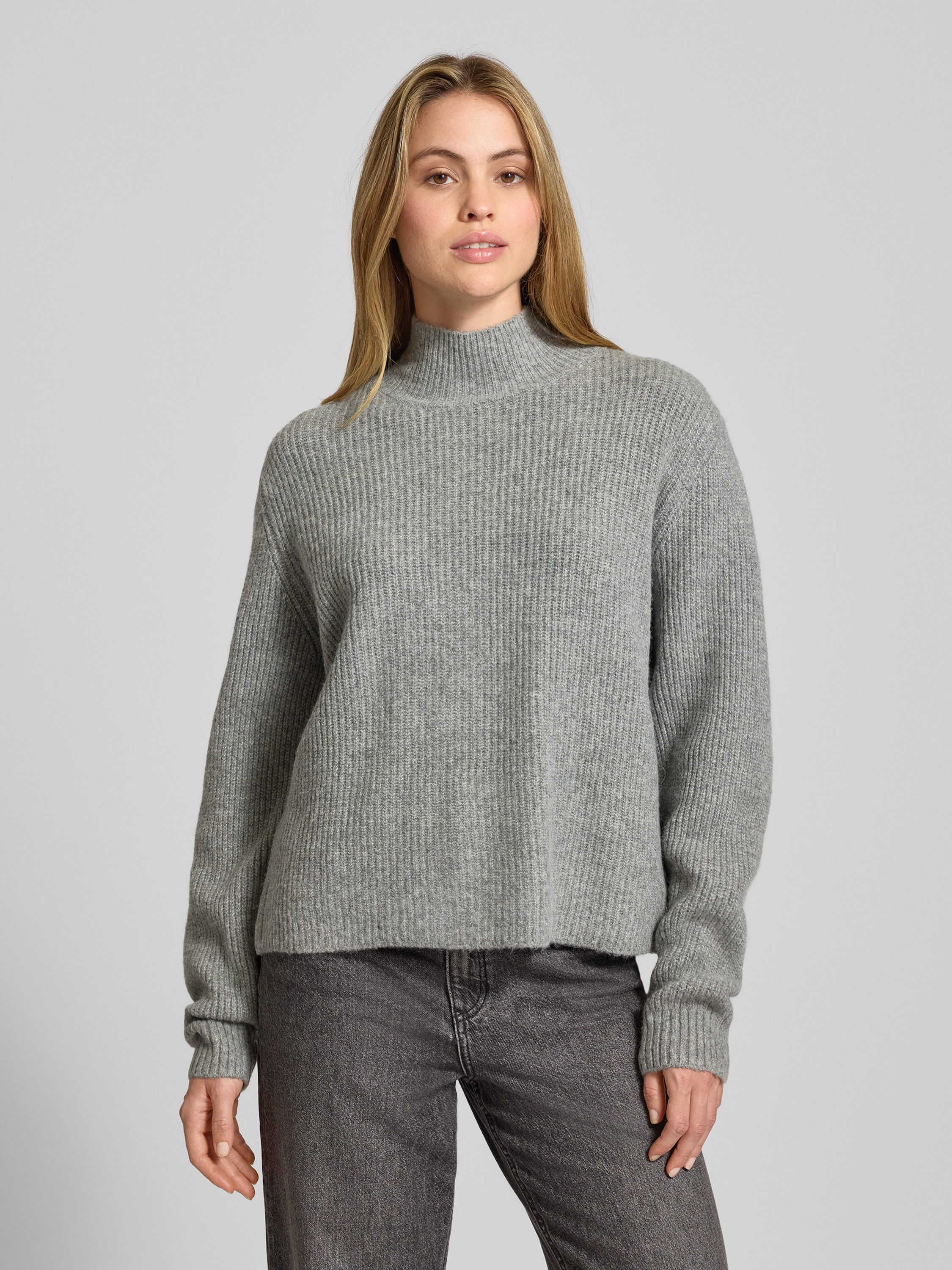 ICHIStrickpullover mit Stehkragen und überschnittenen Schultern in mittelgrau