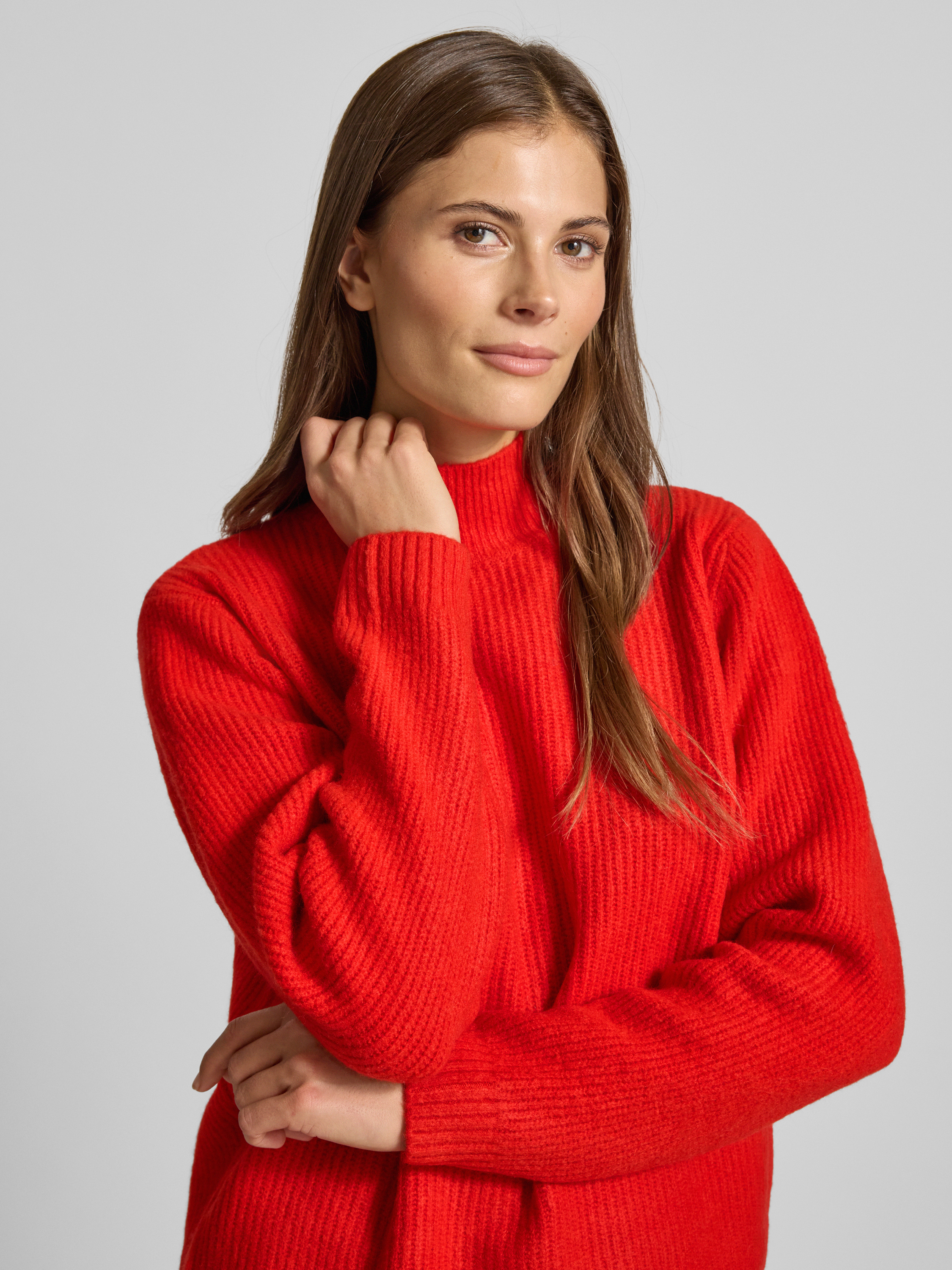ICHIStrickpullover mit Stehkragen und überschnittenen Schultern in rot