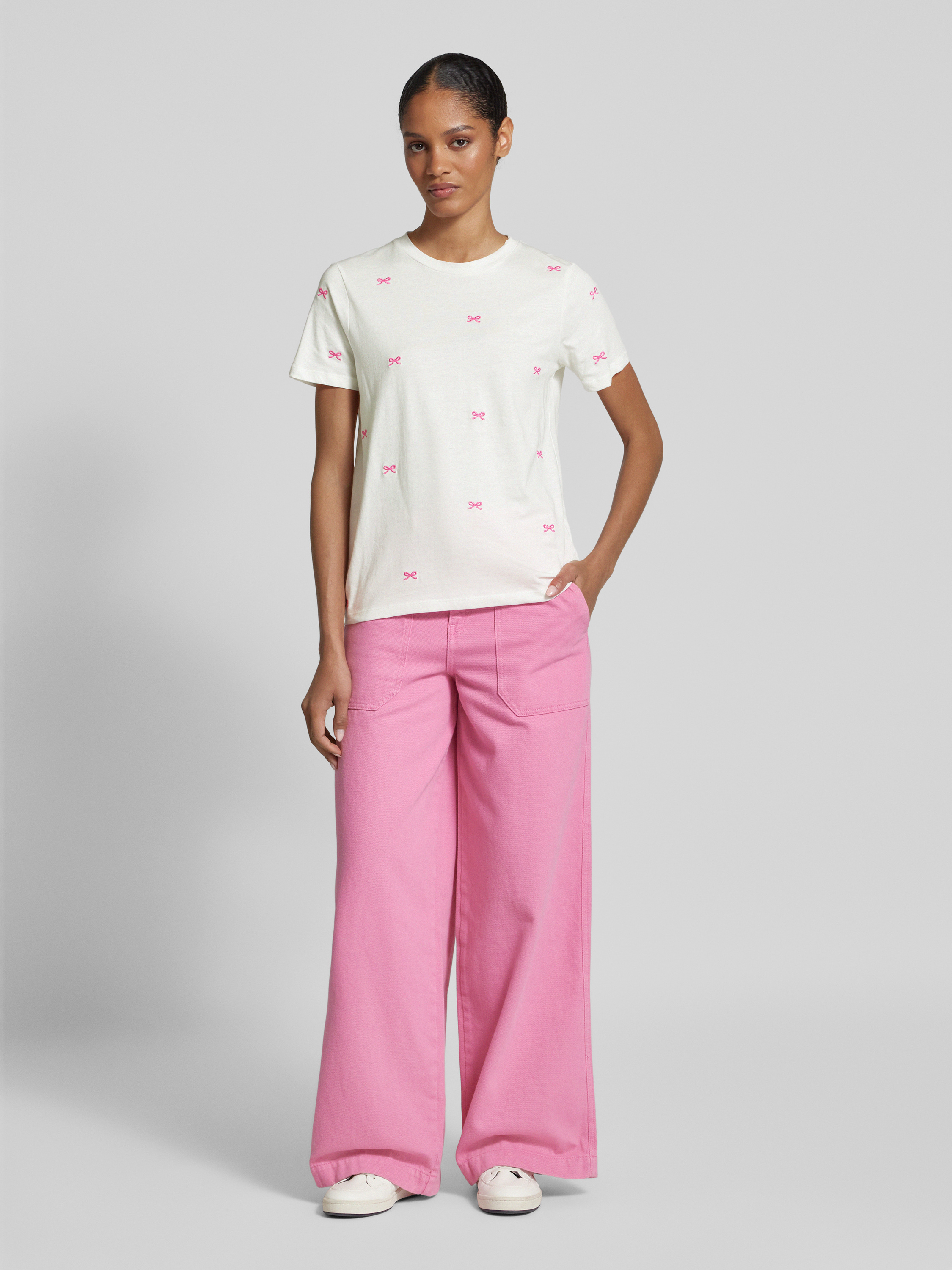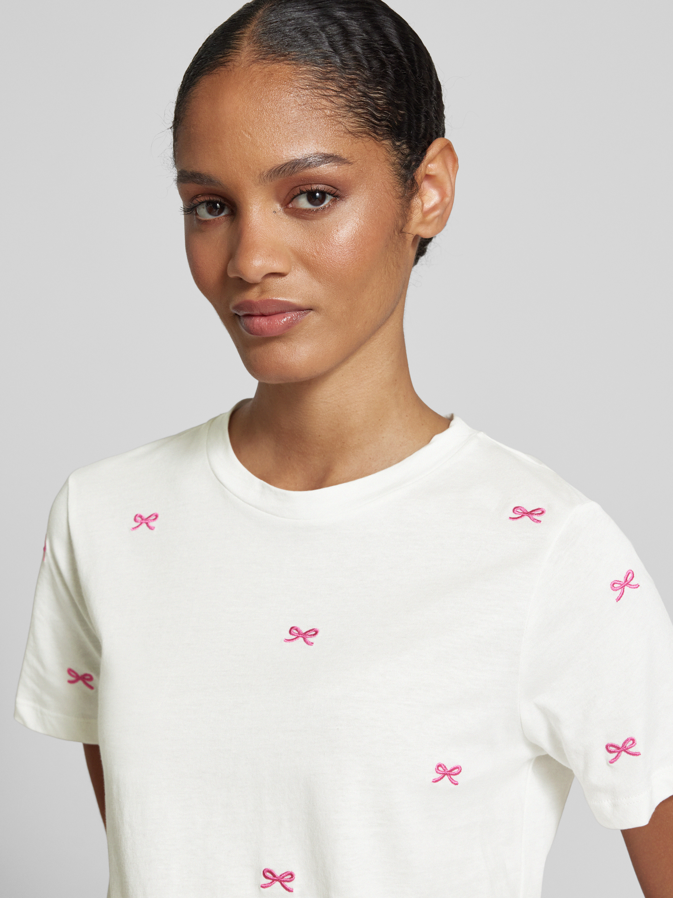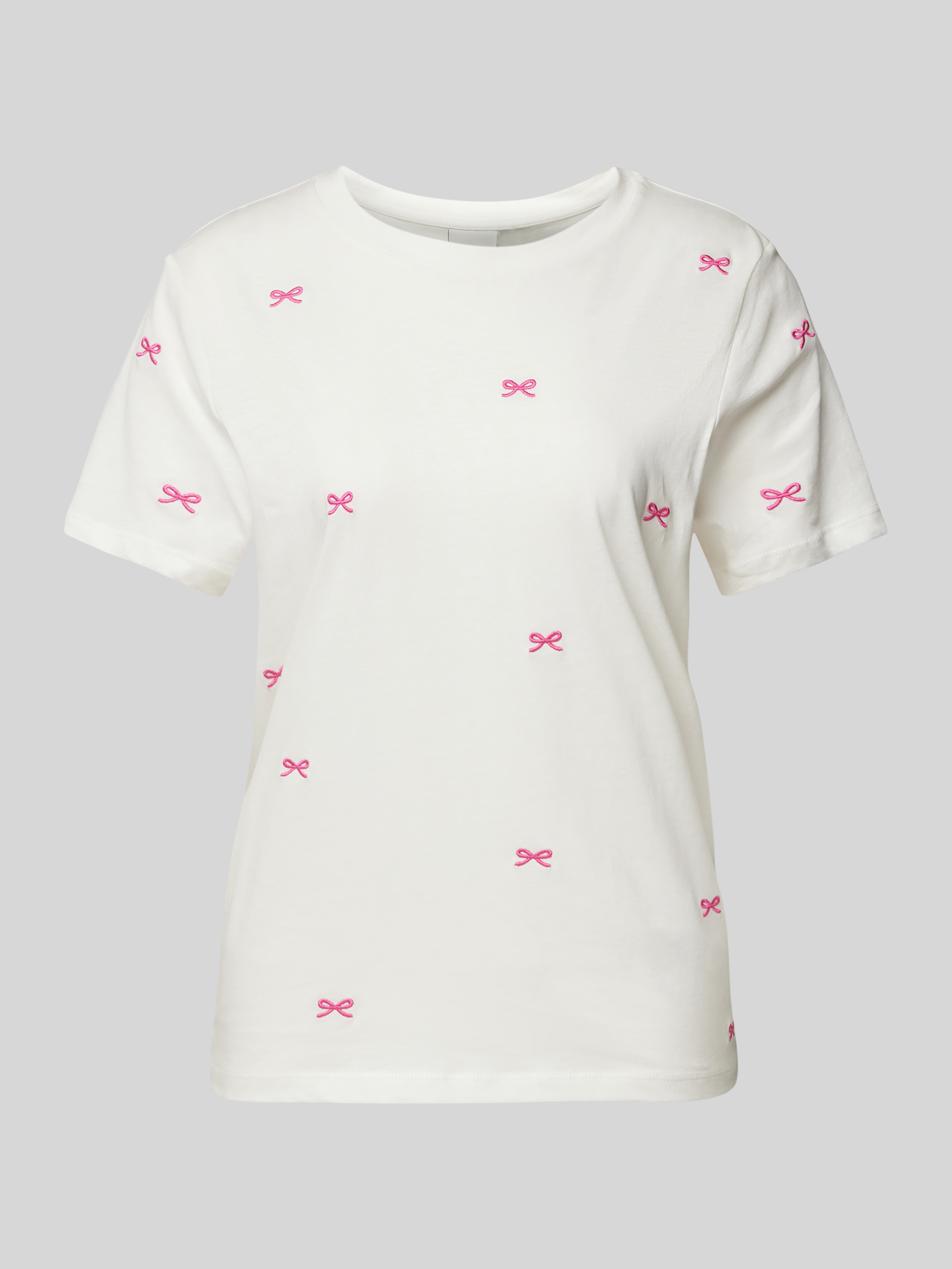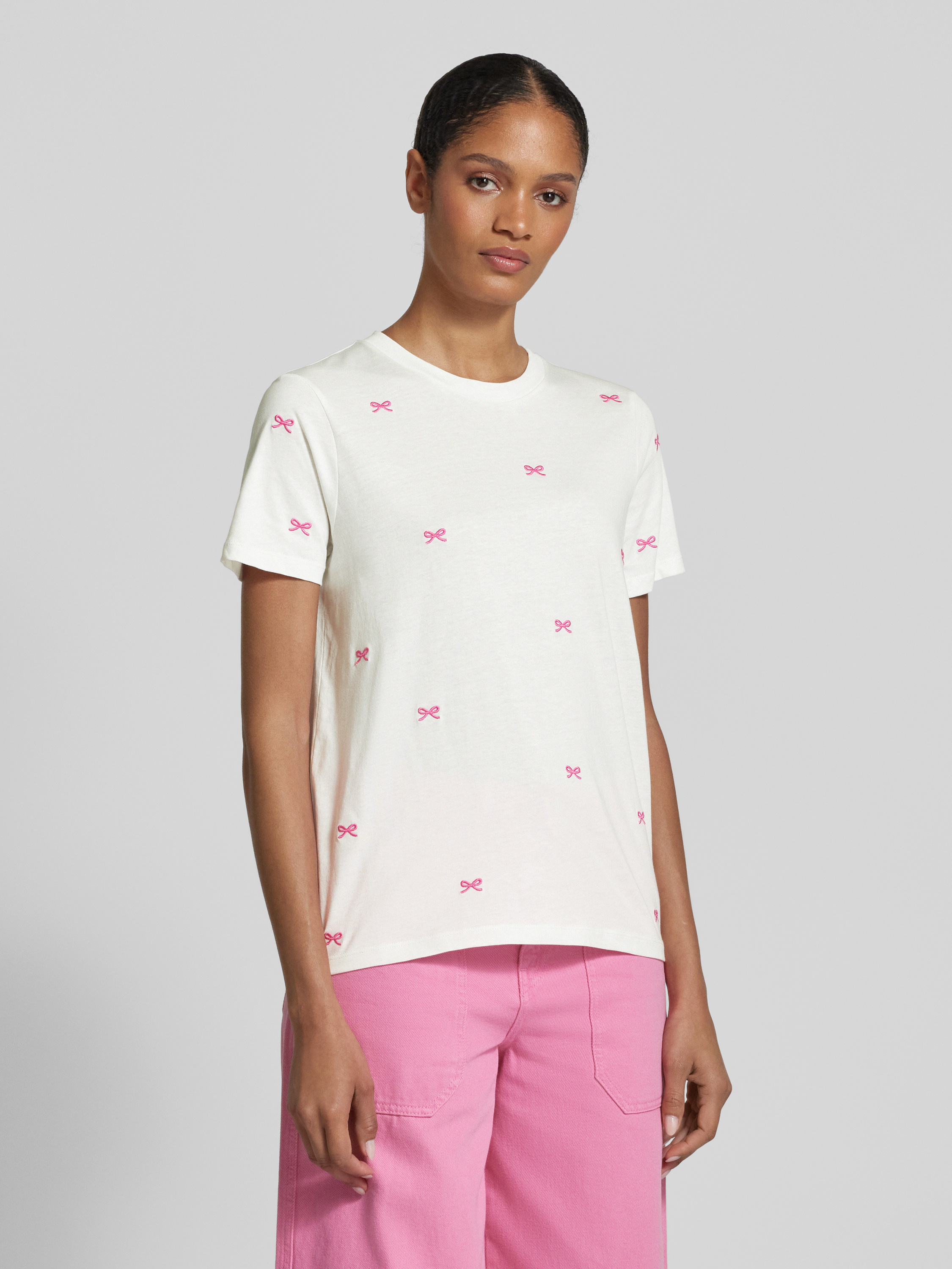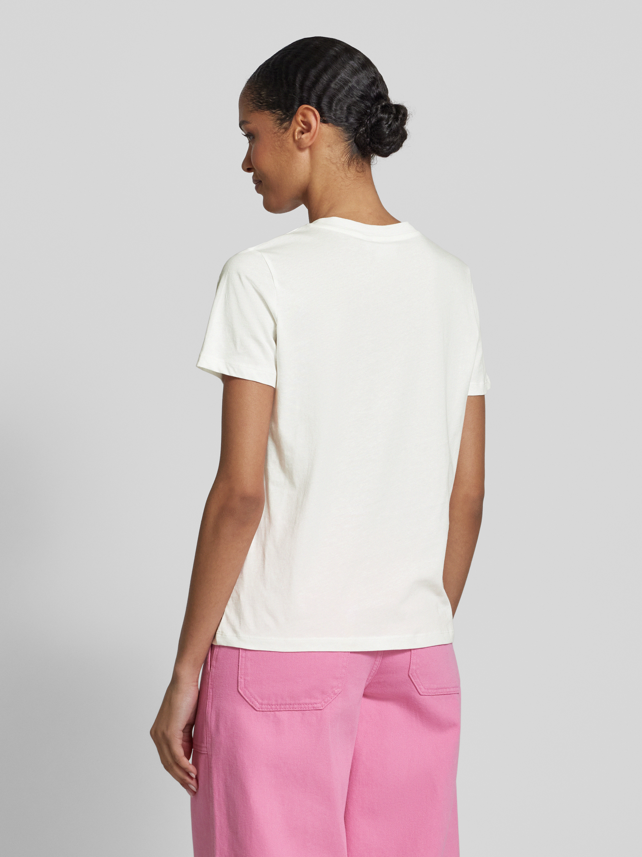 Das Damen T-Shirt von ICHI, Modell 'CAMINO', ist aus reiner Baumwolle gefertigt und bietet durch seinen geraden Schnitt einen bequemen Tragekomfort. Der Rundhalsausschnitt ergänzt das Design, während das Motiv-Stitching dezente Akzente setzt. Ideal für vielseitige Kombinationen im Alltag.