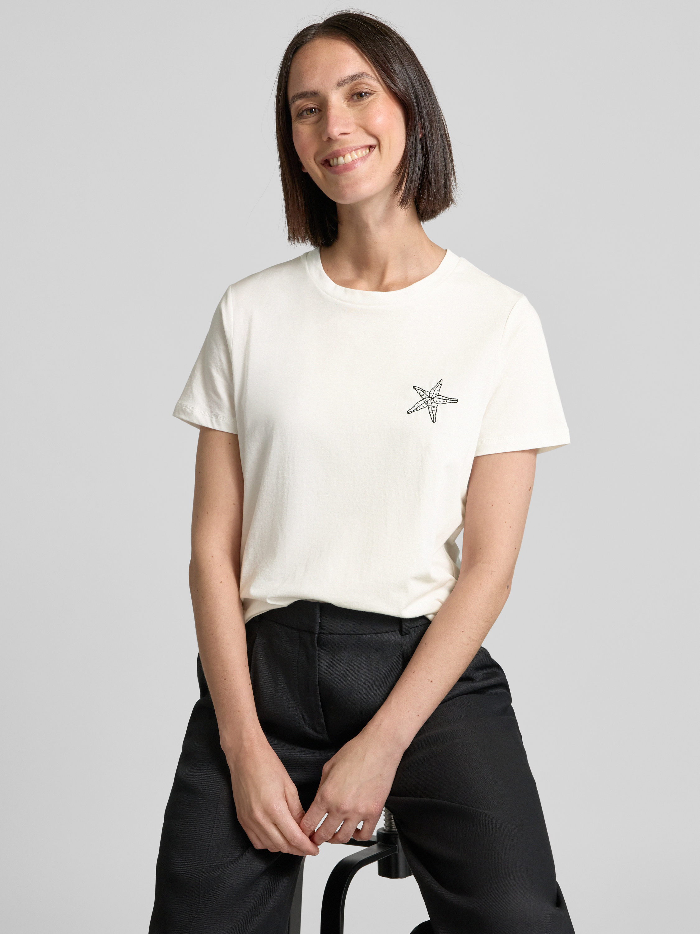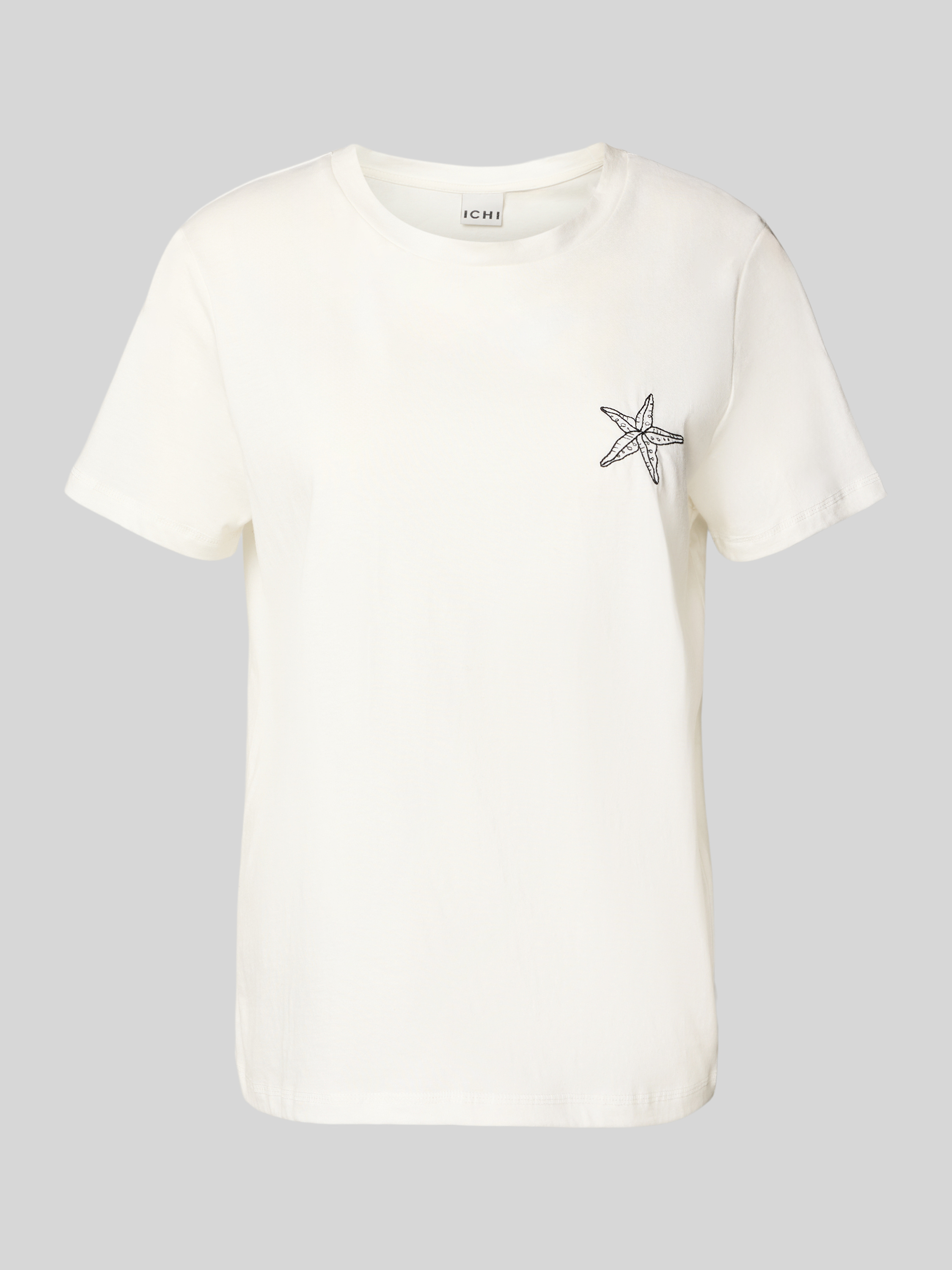 • ICHI T-Shirt mit Motiv-Stitching Modell 'CAMINO' Weiss