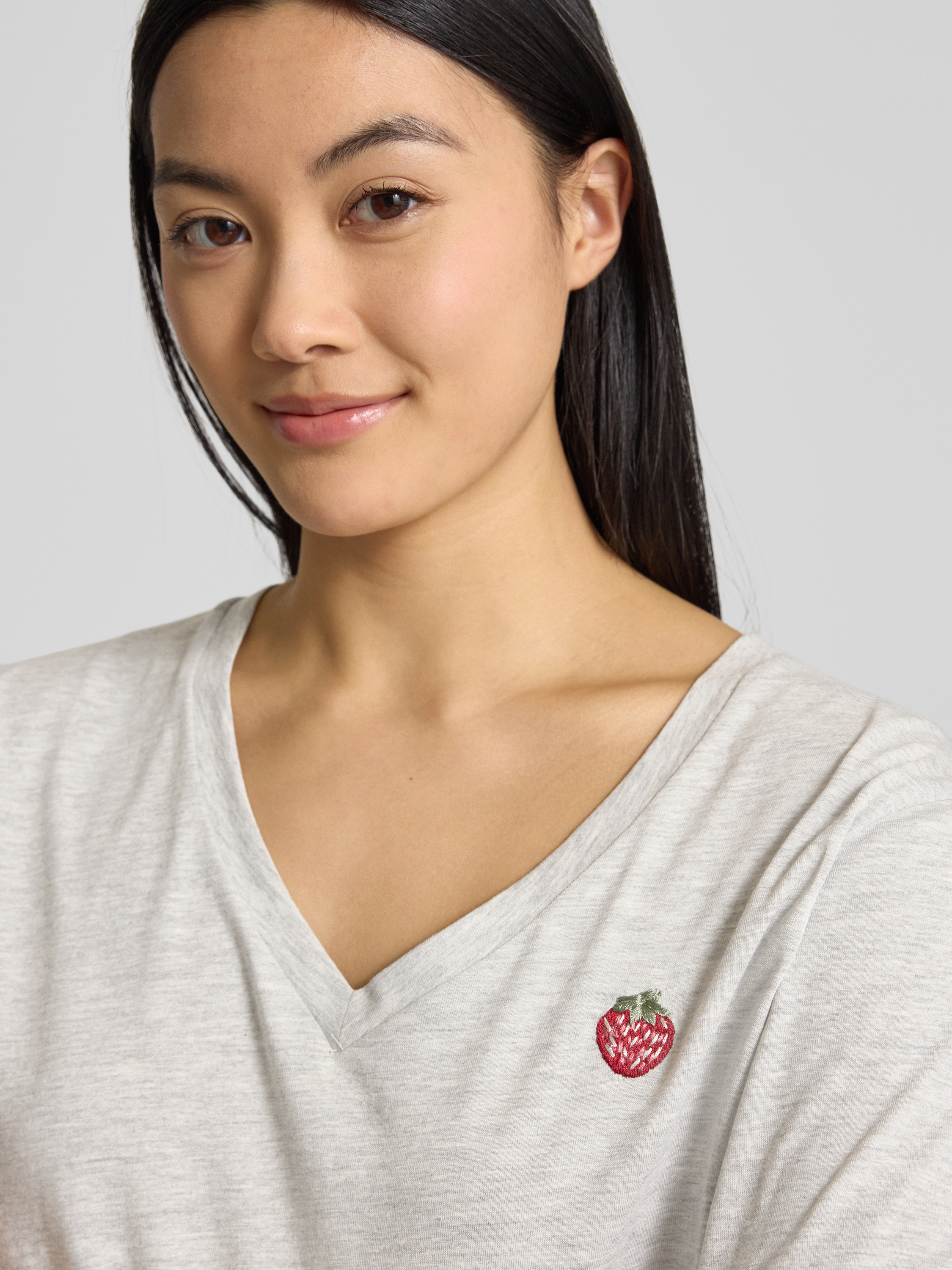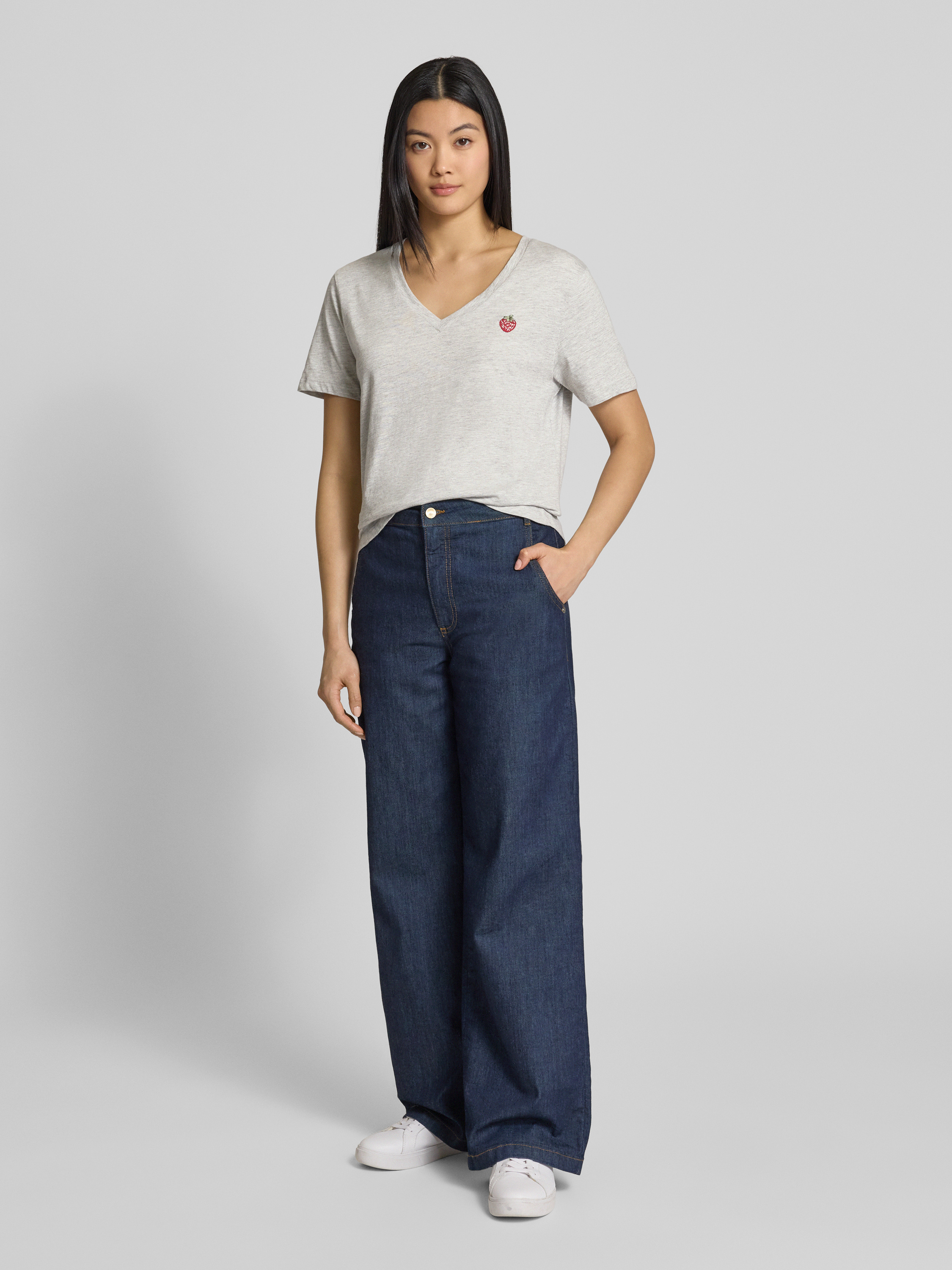Das Damen T-Shirt 'KENNEDY' von ICHI kombiniert einen geraden Schnitt mit einem weichen Baumwoll-Viskose-Mix, der sich angenehm auf der Haut anfühlt. Der V-Ausschnitt und das dezente Motiv-Stitching verleihen dem Oberteil einen modernen Touch, der vielseitig tragbar ist.