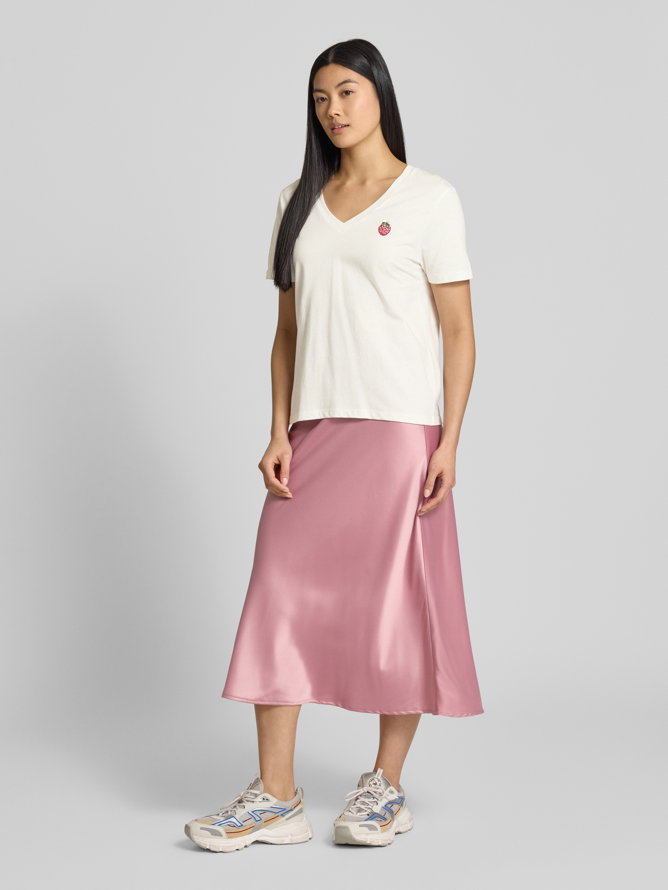 Das Damen T-Shirt 'KENNEDY' von ICHI kombiniert einen geraden Schnitt mit einem weichen Baumwoll-Viskose-Mix, der sich angenehm auf der Haut anfühlt. Der V-Ausschnitt und das dezente Motiv-Stitching verleihen dem Oberteil einen modernen Touch, der vielseitig tragbar ist.