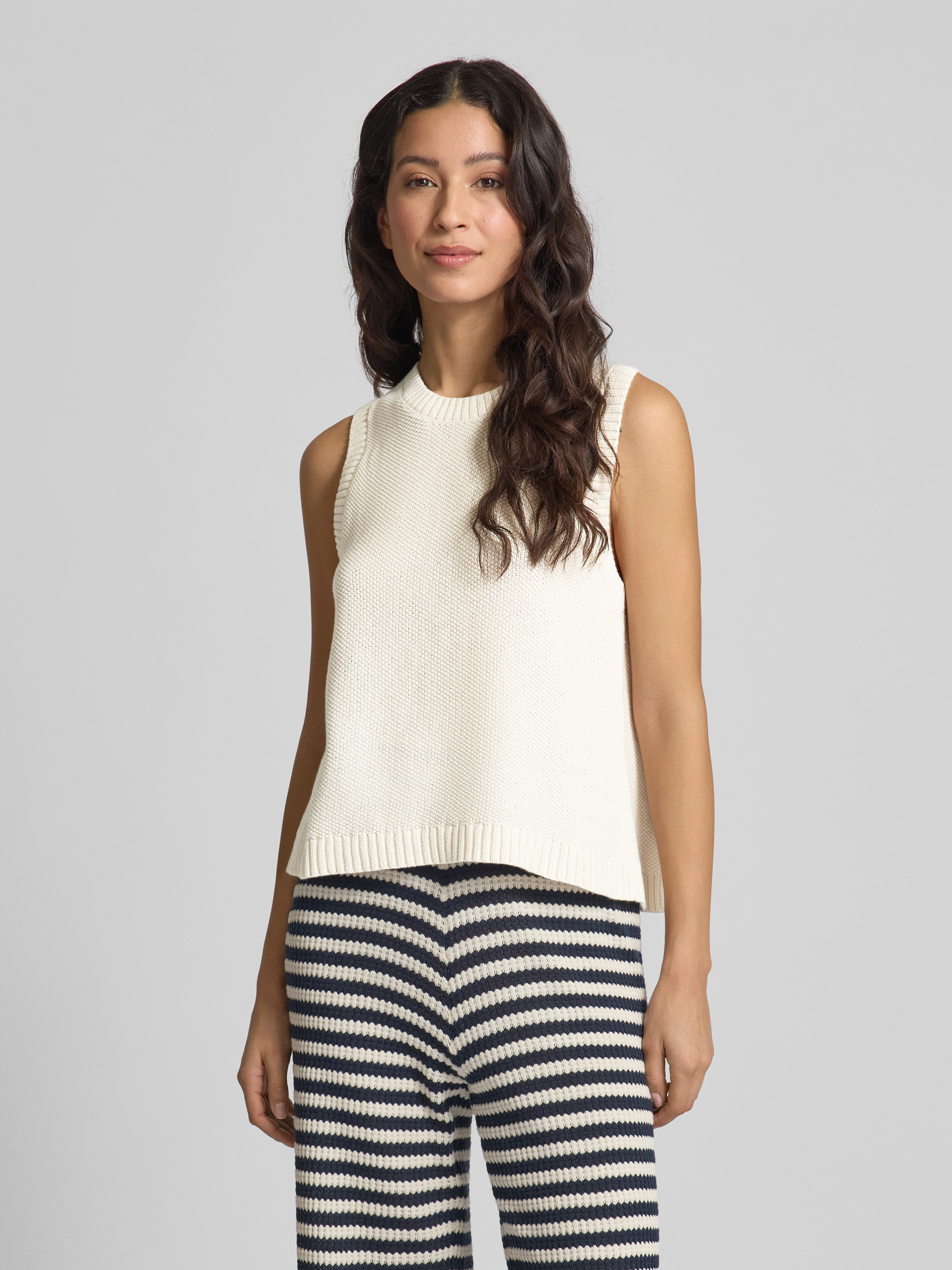 Das Damen Tanktop von ICHI, Modell 'DOTTIES', beeindruckt durch seine Strick-Optik und besteht aus reiner Baumwolle. Der Regular Fit sowie der Rundhalsausschnitt sorgen für angenehmen Tragekomfort. Mit gerippten Abschlüssen eignet es sich ideal für entspannte und lässige Looks.