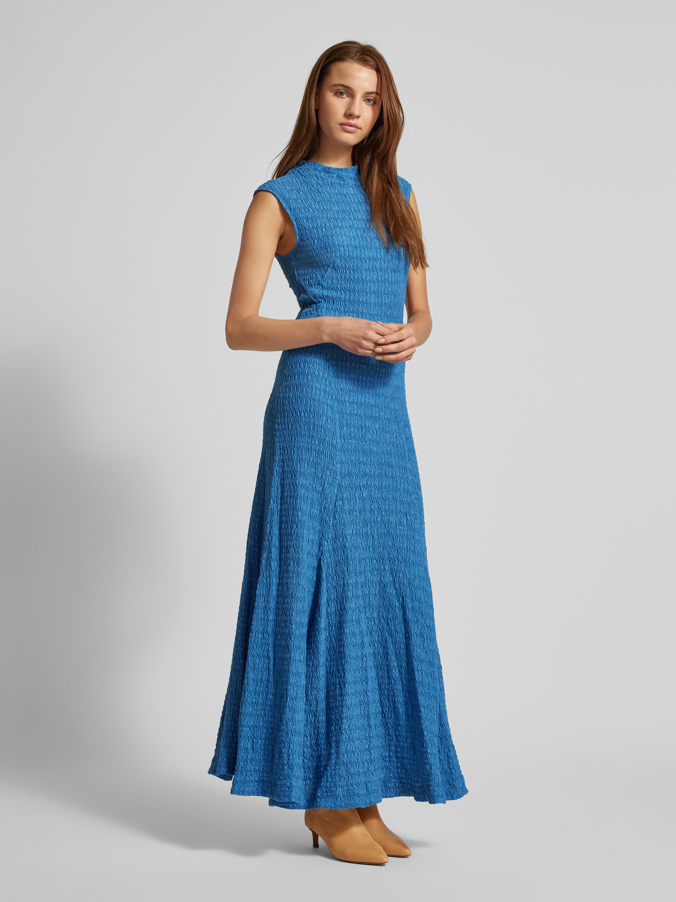 Das Maxikleid 'MARCELLA' von IVY OAK vereint einen eleganten Stehkragen mit einer körpernahen Passform, die die Silhouette sanft betont. Der Baumwoll-Mix bietet dabei einen angenehmen Tragekomfort, während das Strukturmuster dem Kleid eine dezente Raffinesse verleiht. Ein extrakurzes Ärmeldesign rundet das Gesamtbild stilvoll ab.