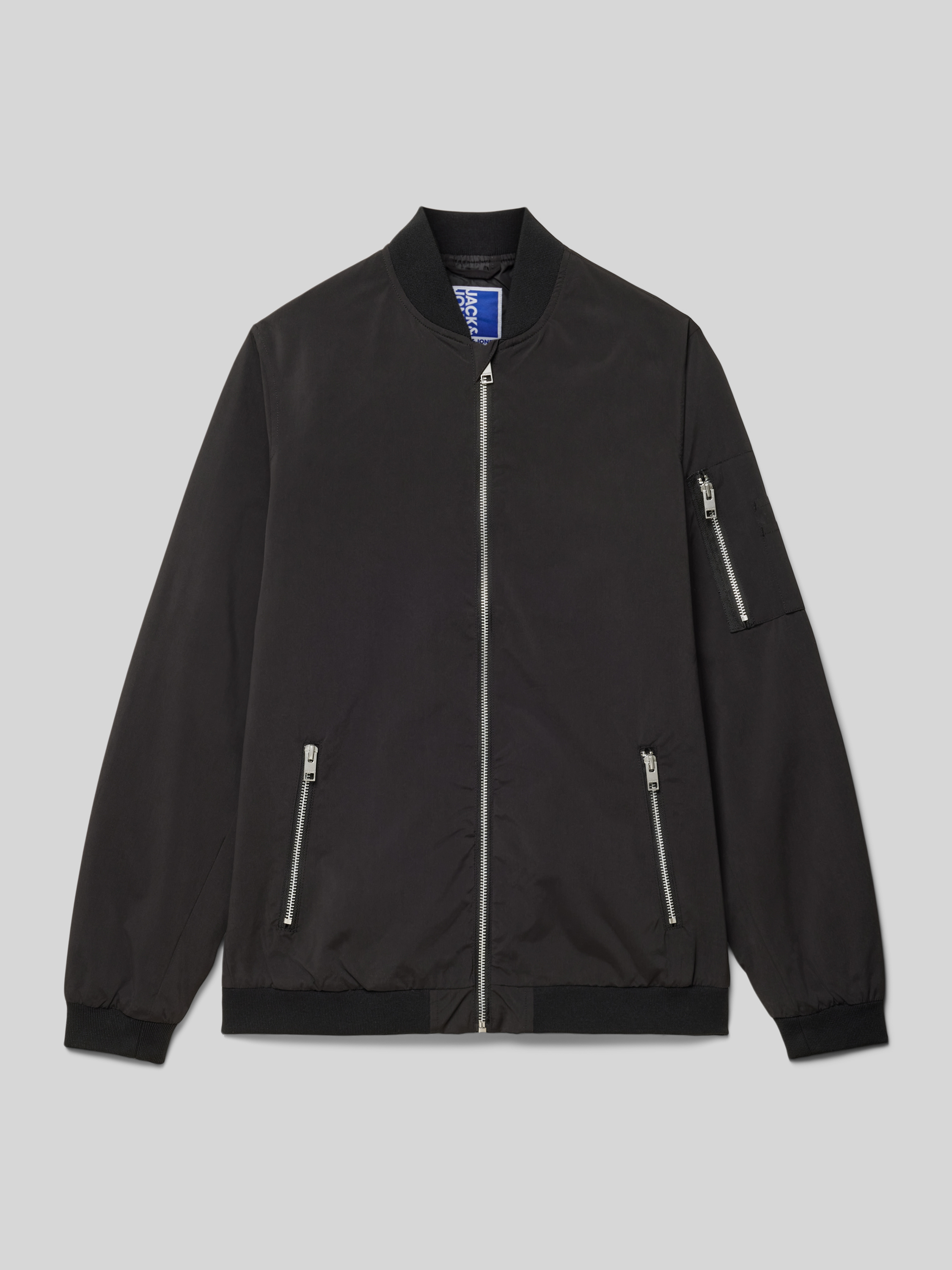 Die Bomberjacke 'ERUSH' von JACK & JONES für Kinder kombiniert einen lässigen Look mit praktischen Details wie Reißverschlusstaschen und einer Armtasche. Der gerippte Stehkragen und die lockere Passform sorgen für Komfort, während elastische Abschlüsse eine bequeme Bewegungsfreiheit ermöglichen. Ideal für den Alltag geeignet.