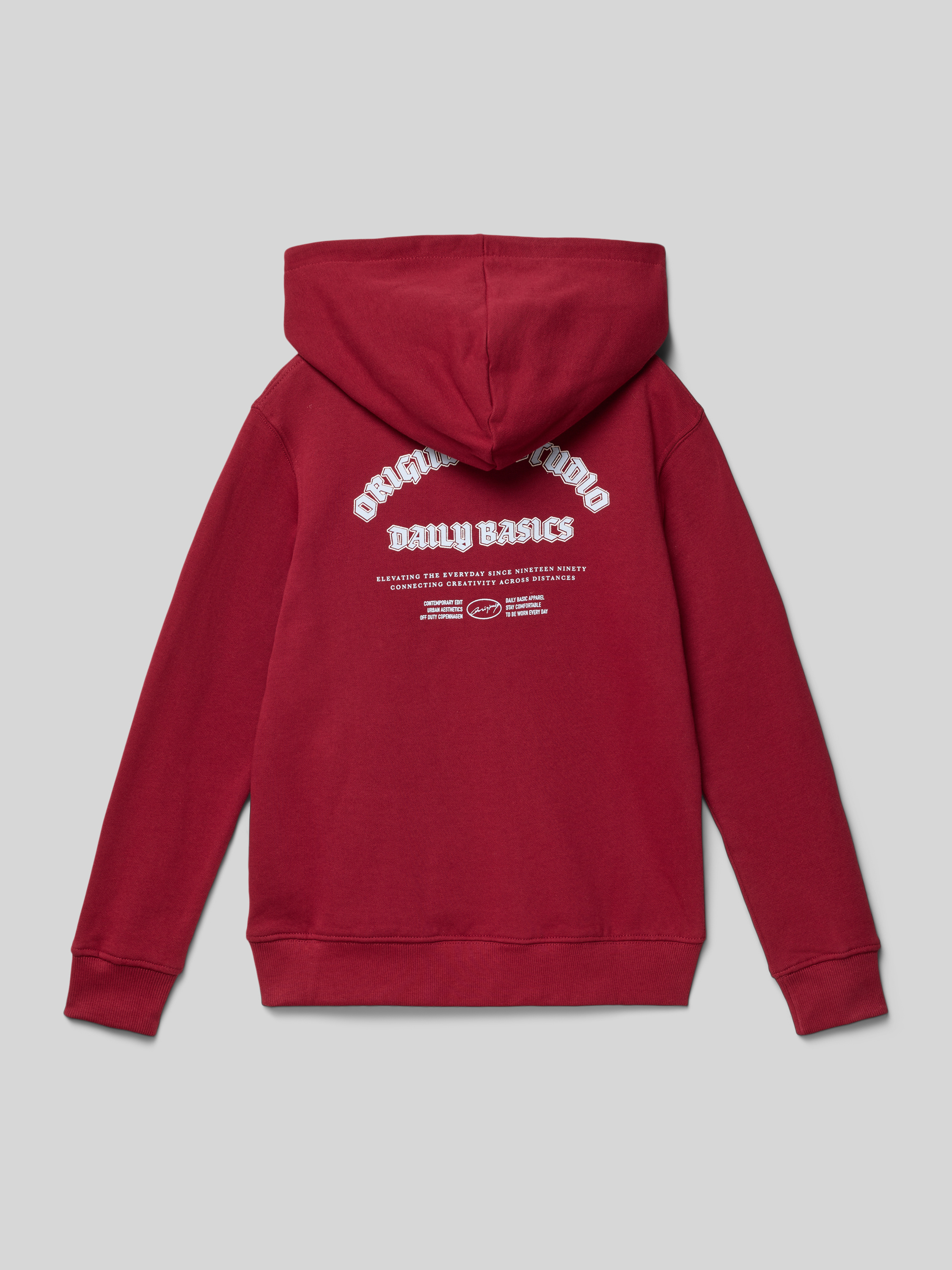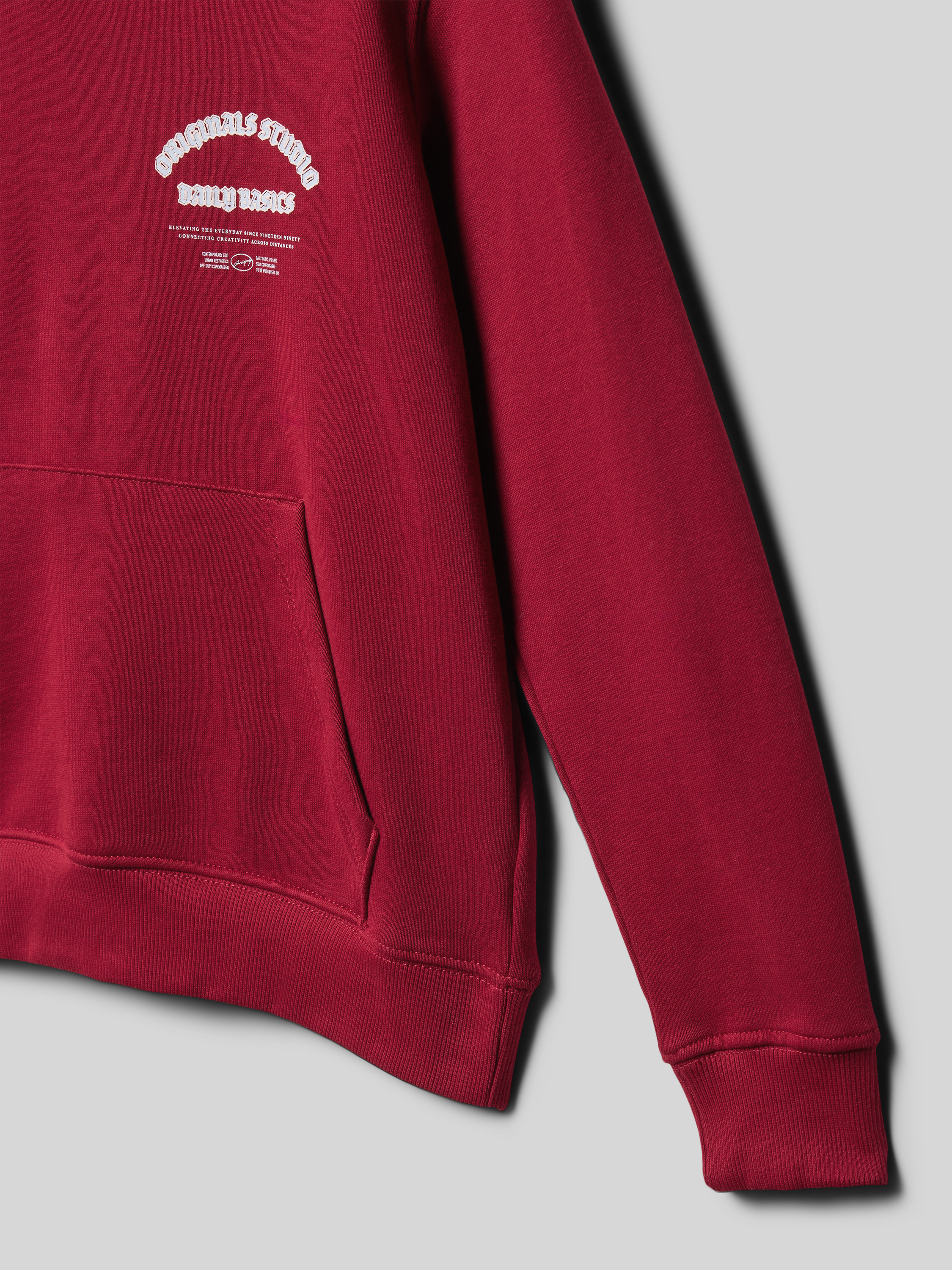 Der Kinder Hoodie von Jack & Jones Modell 'MEADOWS' zeigt sich in reiner Baumwolle und sorgt so für ein angenehmes Tragegefühl im Alltag. Durch den lockeren Schnitt bleibt genügend Bewegungsfreiheit, während die Kapuze und die Känguru-Tasche einen praktischen Mehrwert schaffen. Ein Label-Print rundet das Gesamtbild sportlich ab.