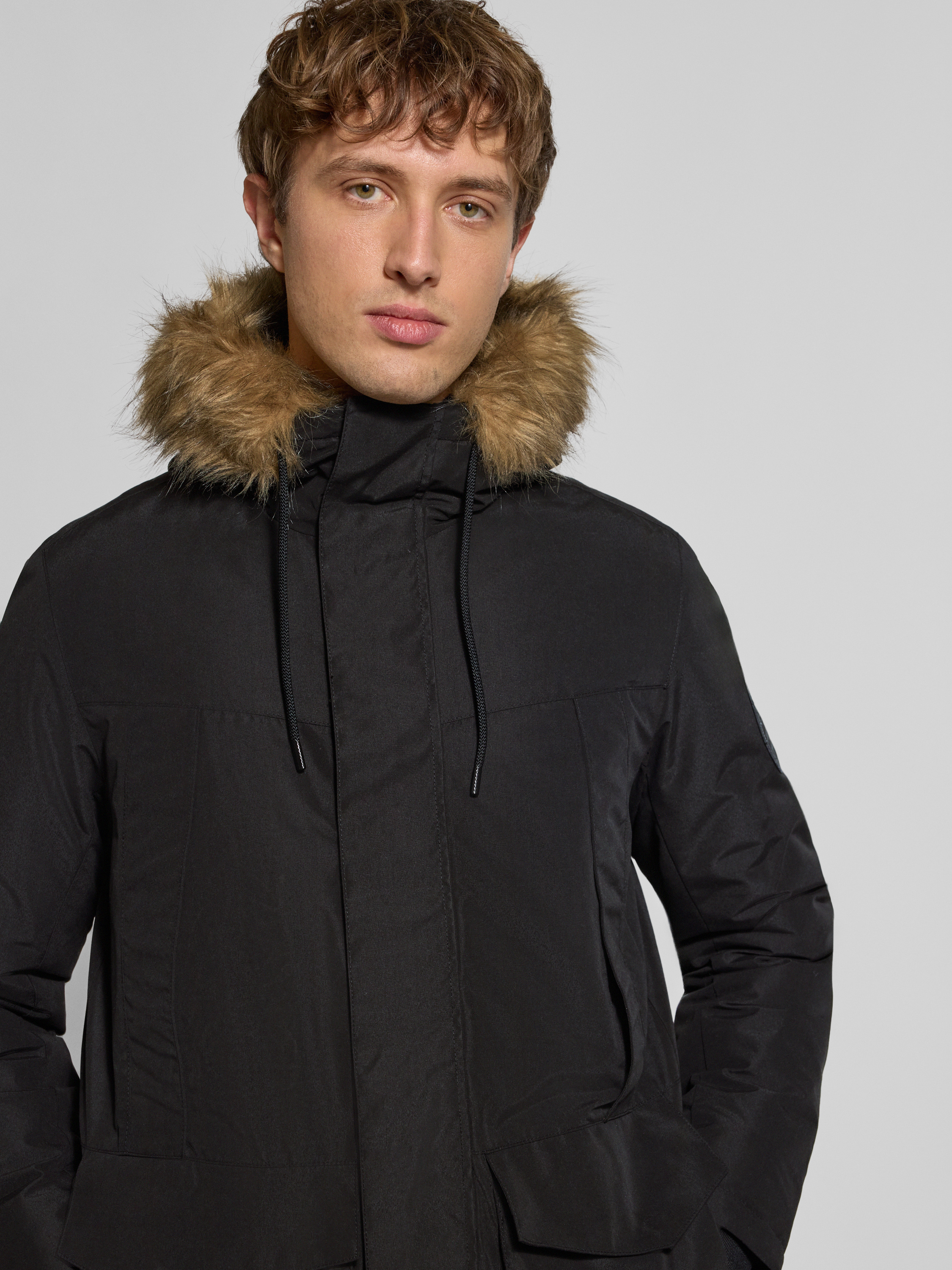 Jack & JonesParka mit Pattentaschen und Kapuze mit Kunstfell in black