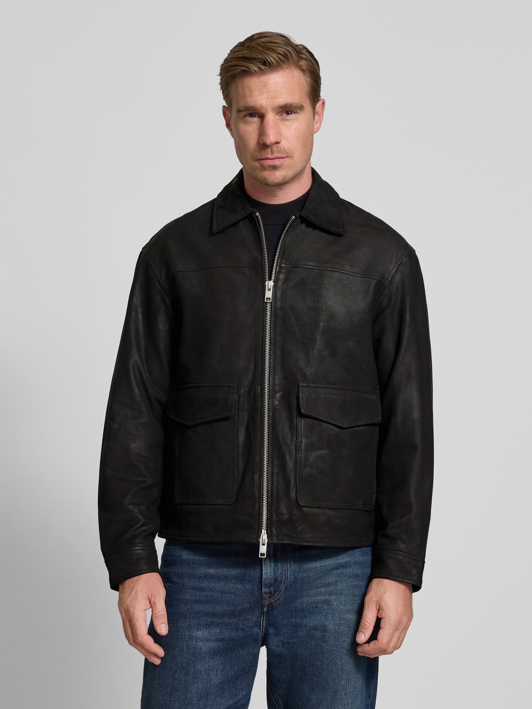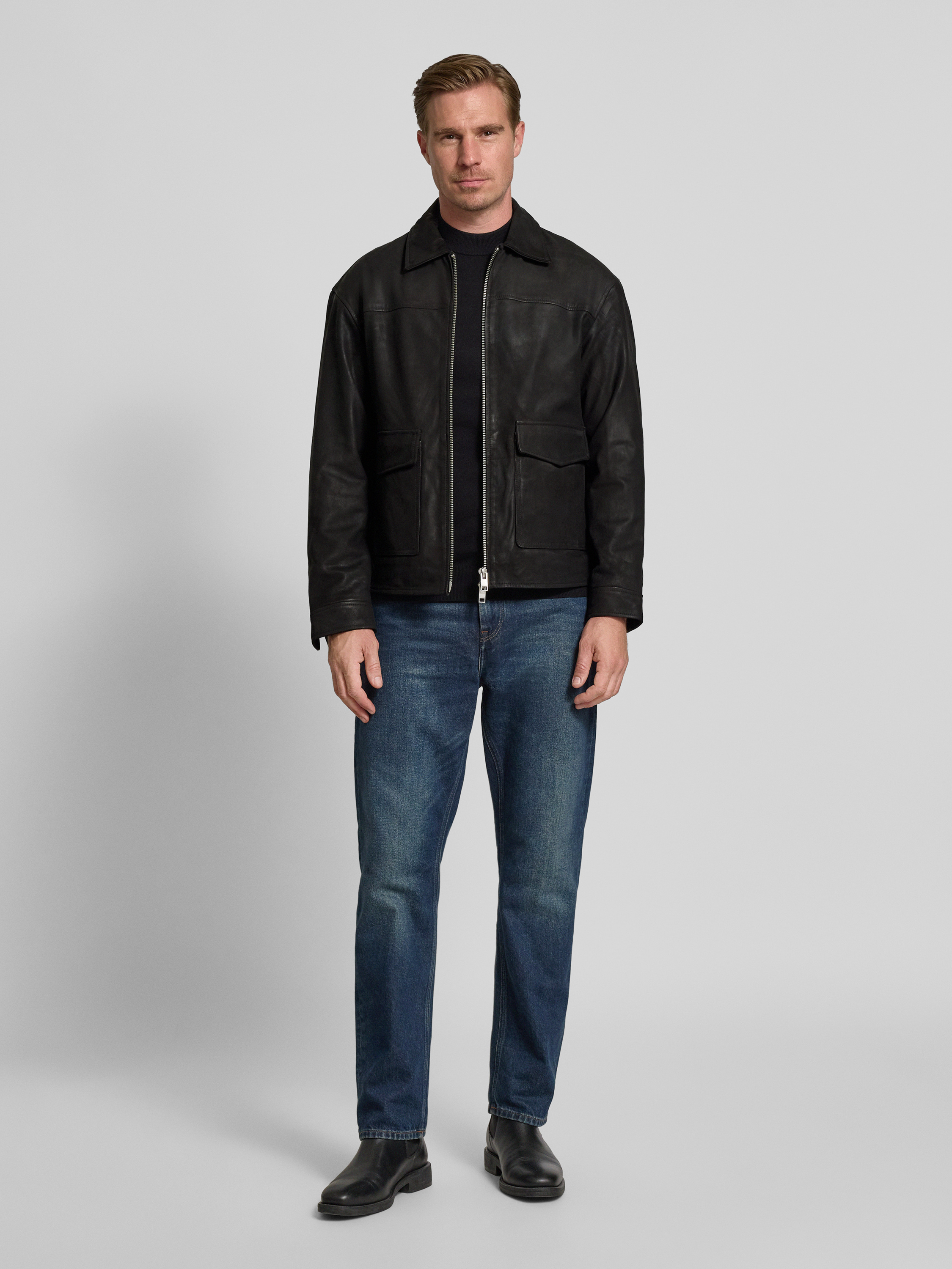 Jack & Jones PremiumLederjacke mit Zweiwege-Reißverschluss Modell 'LEWIS' in black
