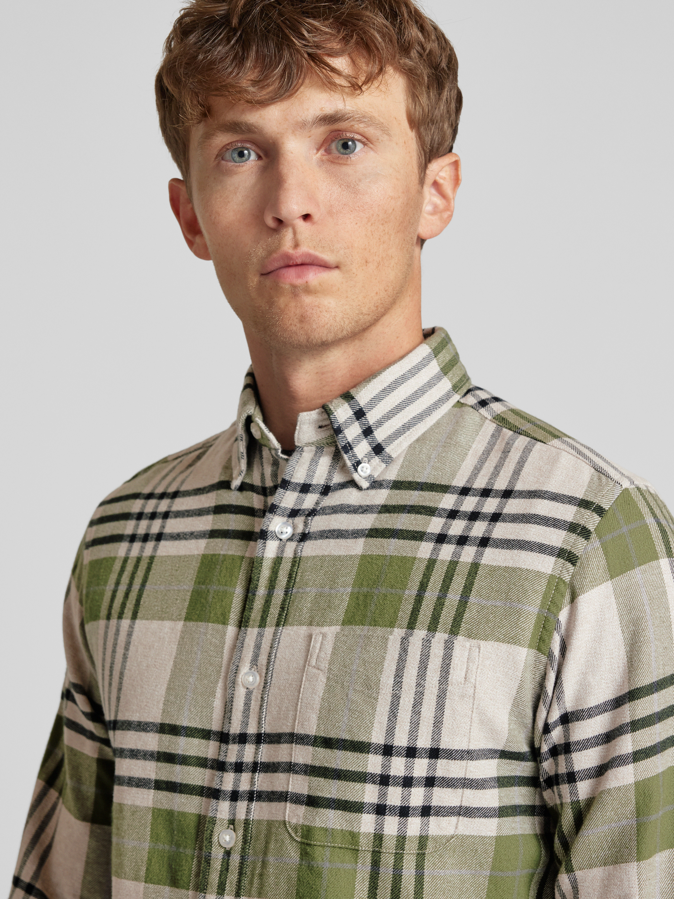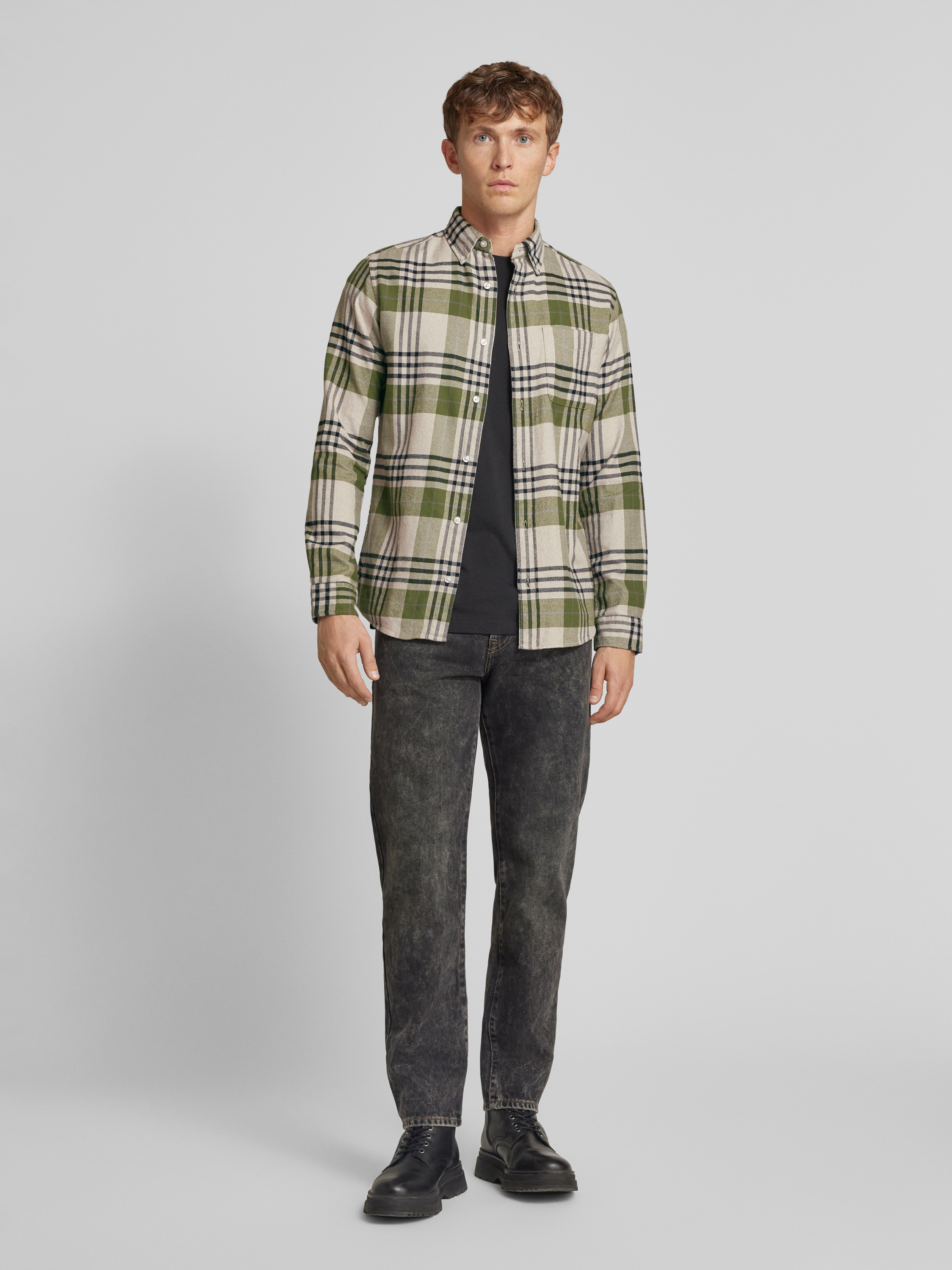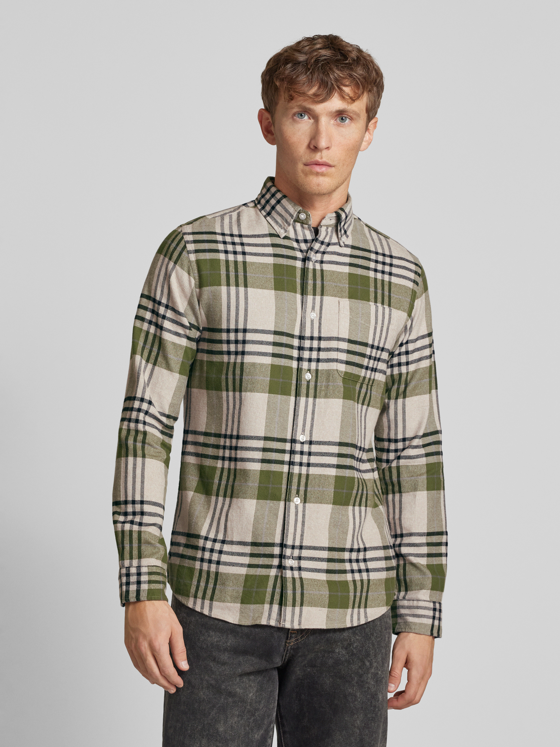 Jack & Jones PremiumSlim Fit Freizeithemd Button-Down-Kragen Modell 'BLUNORRIS' in gruen