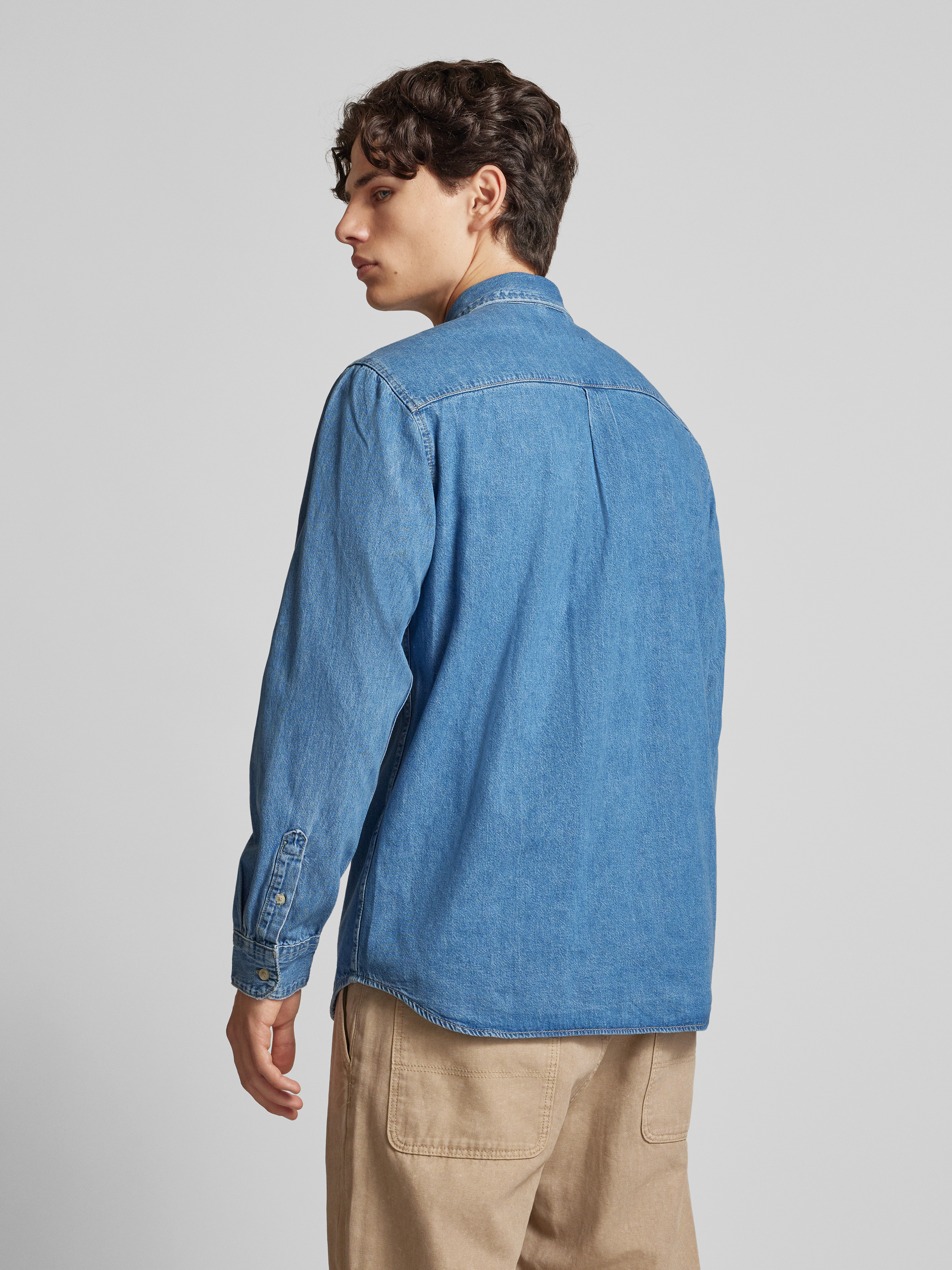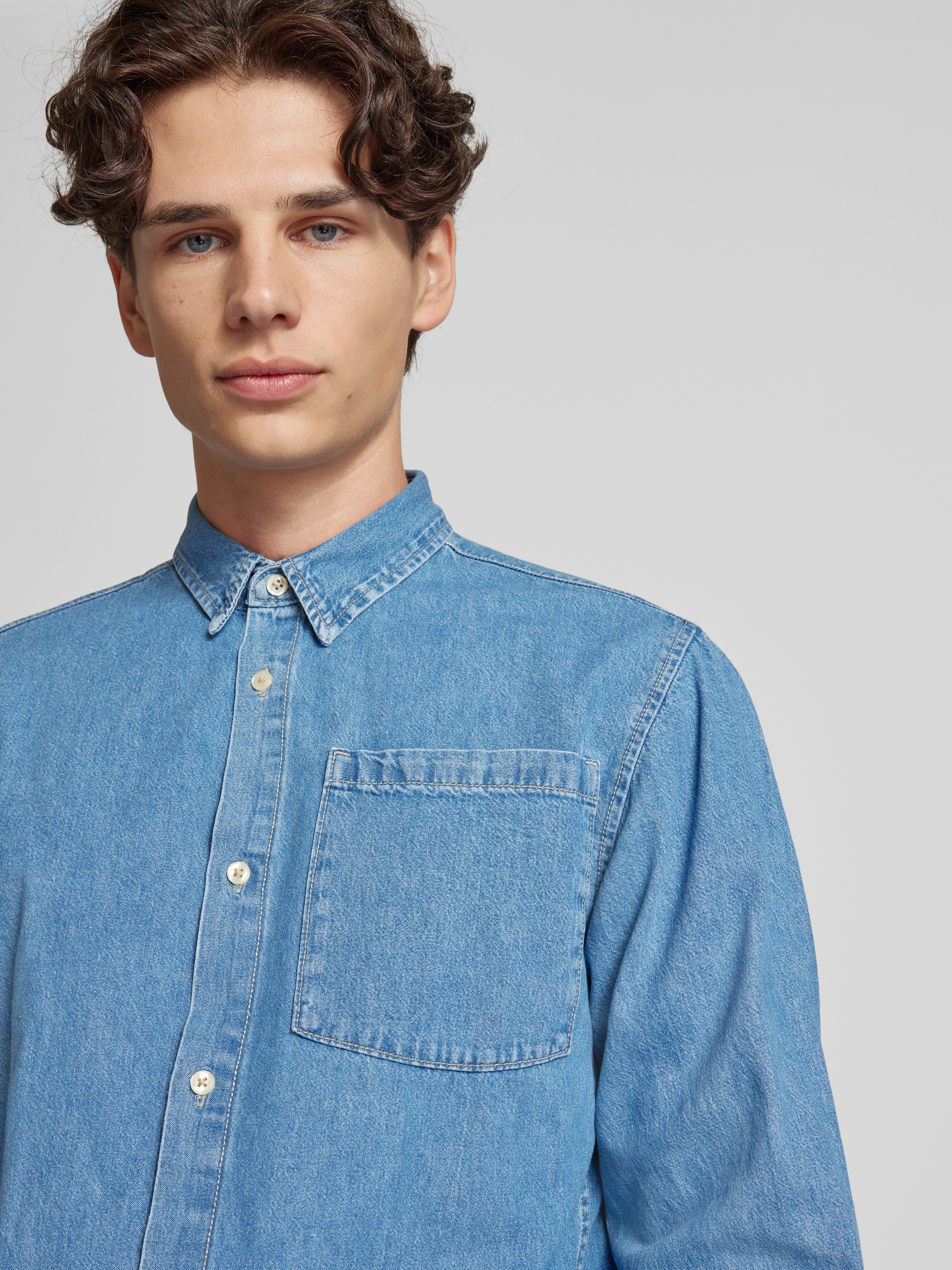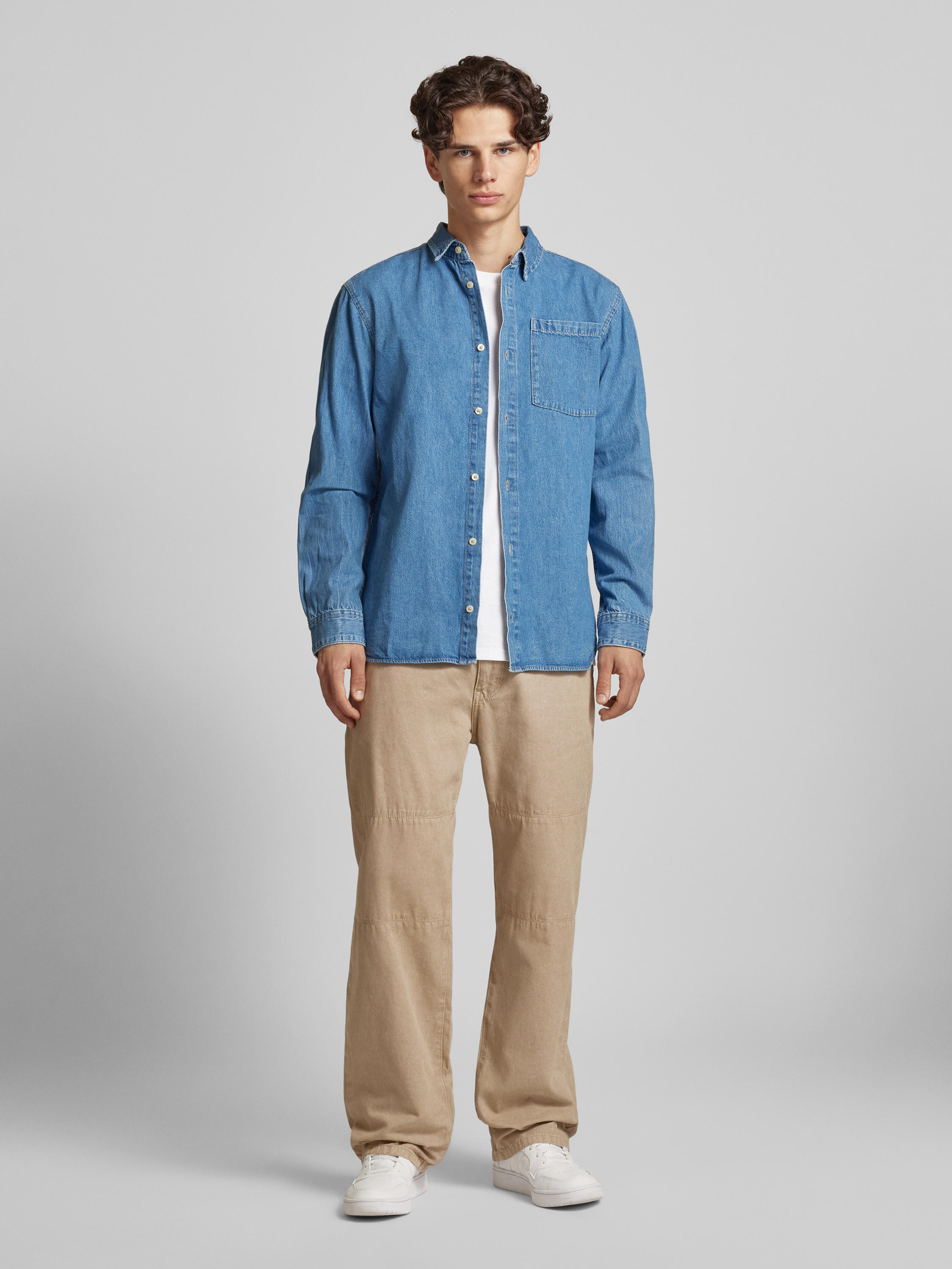 Das Herren Freizeithemd von JACK & JONES, Modell 'CREEK', eignet sich durch seine Denim-Optik und die reine Baumwolle für einen lässigen Auftritt. Der Regular Fit und der klassische Kentkragen bieten einen angenehmen Tragekomfort. Eine praktische Brusttasche rundet das Design ab.