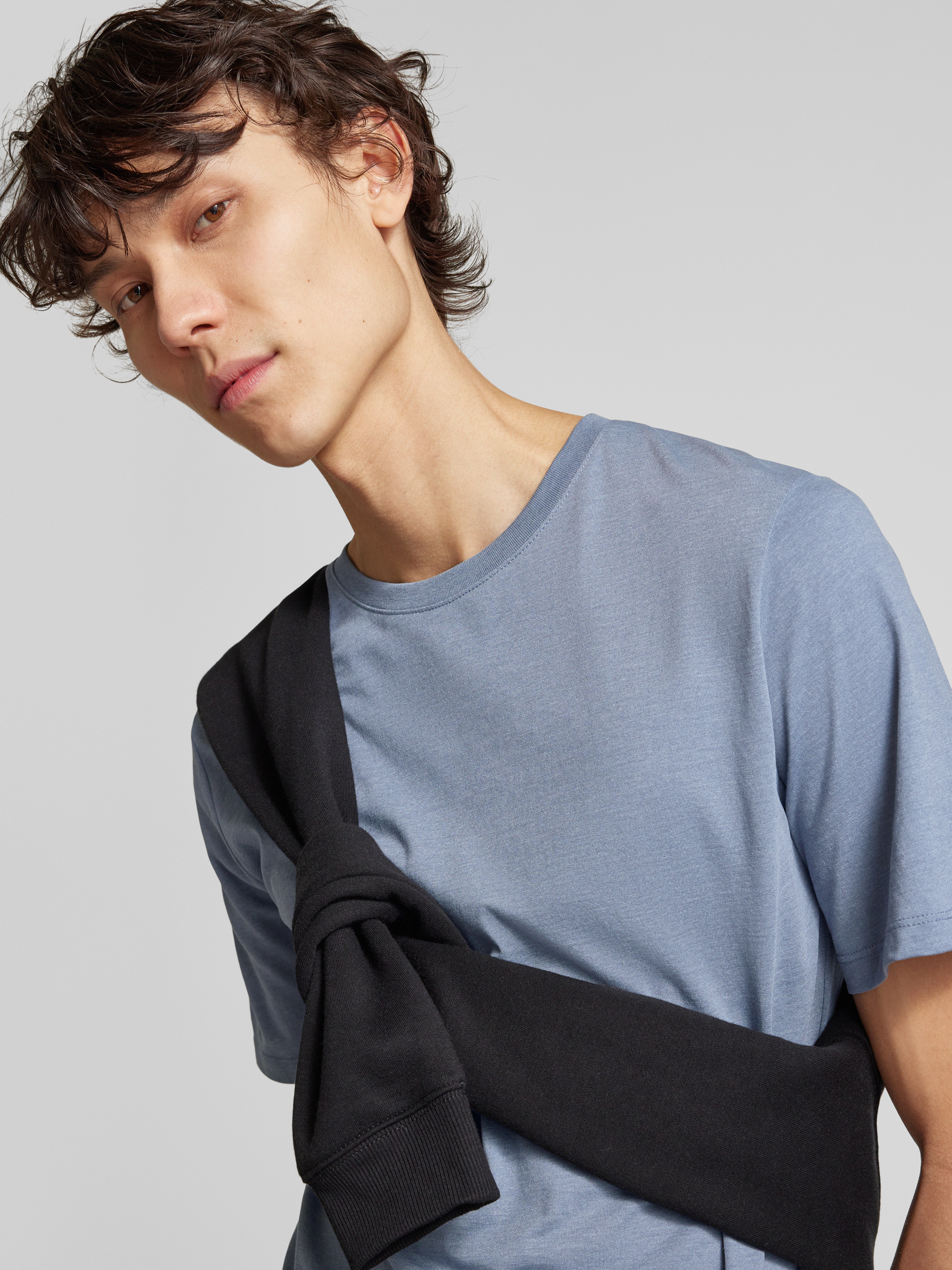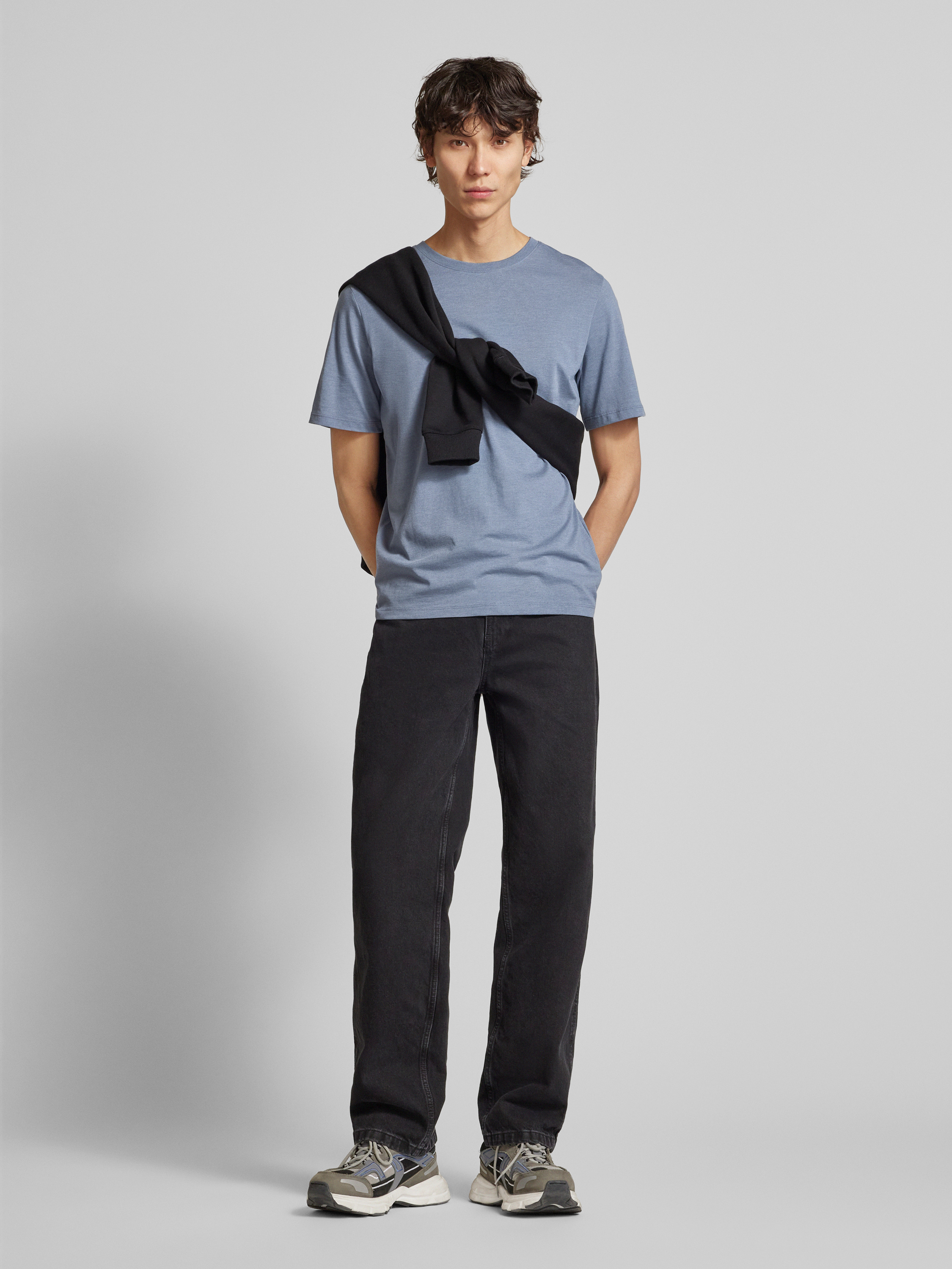 Jack & JonesT-Shirt mit geripptem Rundhalsausschnitt in rauchblau melange
