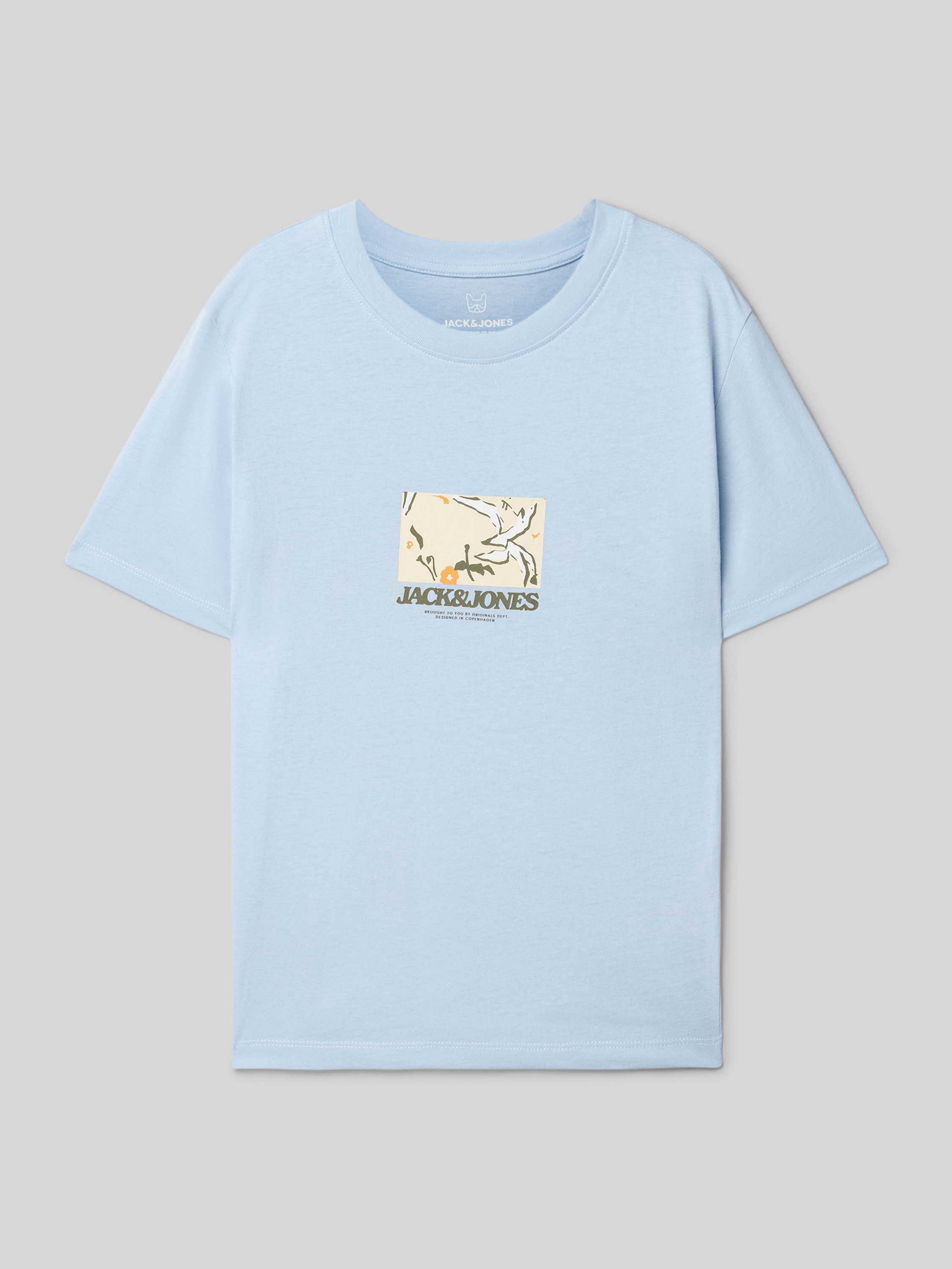 Jack & JonesT-Shirt mit Label-Print Modell 'TAVIRA' in hellblau