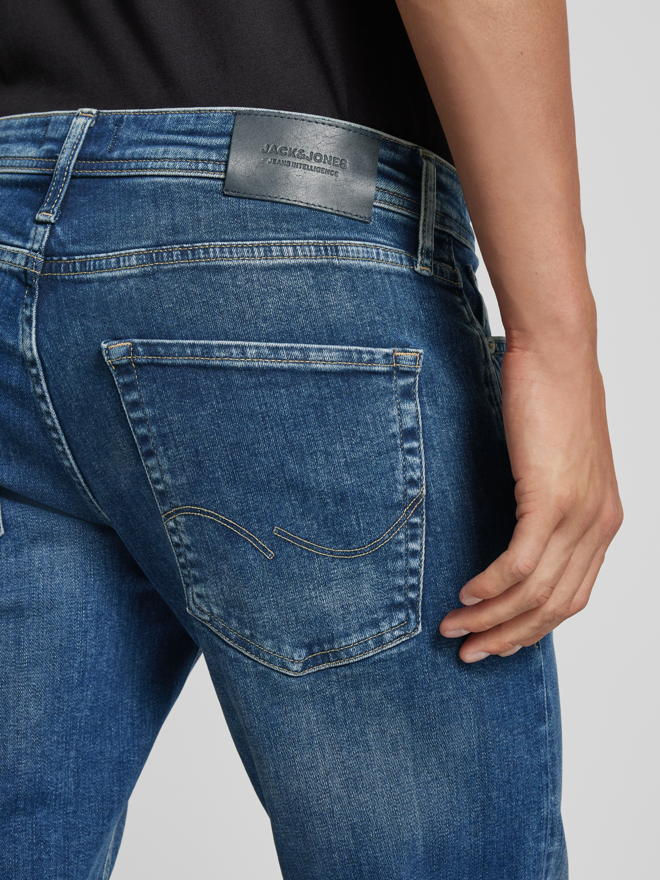 Die Tapered Fit Jeans Modell 'MIKE' von JACK & JONES zeichnet sich durch einen komfortablen Baumwoll-Elasthan-Mix aus, der für Flexibilität und Bewegungsfreiheit sorgt. Durch das klassische 5-Pocket-Design und die Gürtelschlaufen erhält man vielseitige Styling-Möglichkeiten für den Alltag.