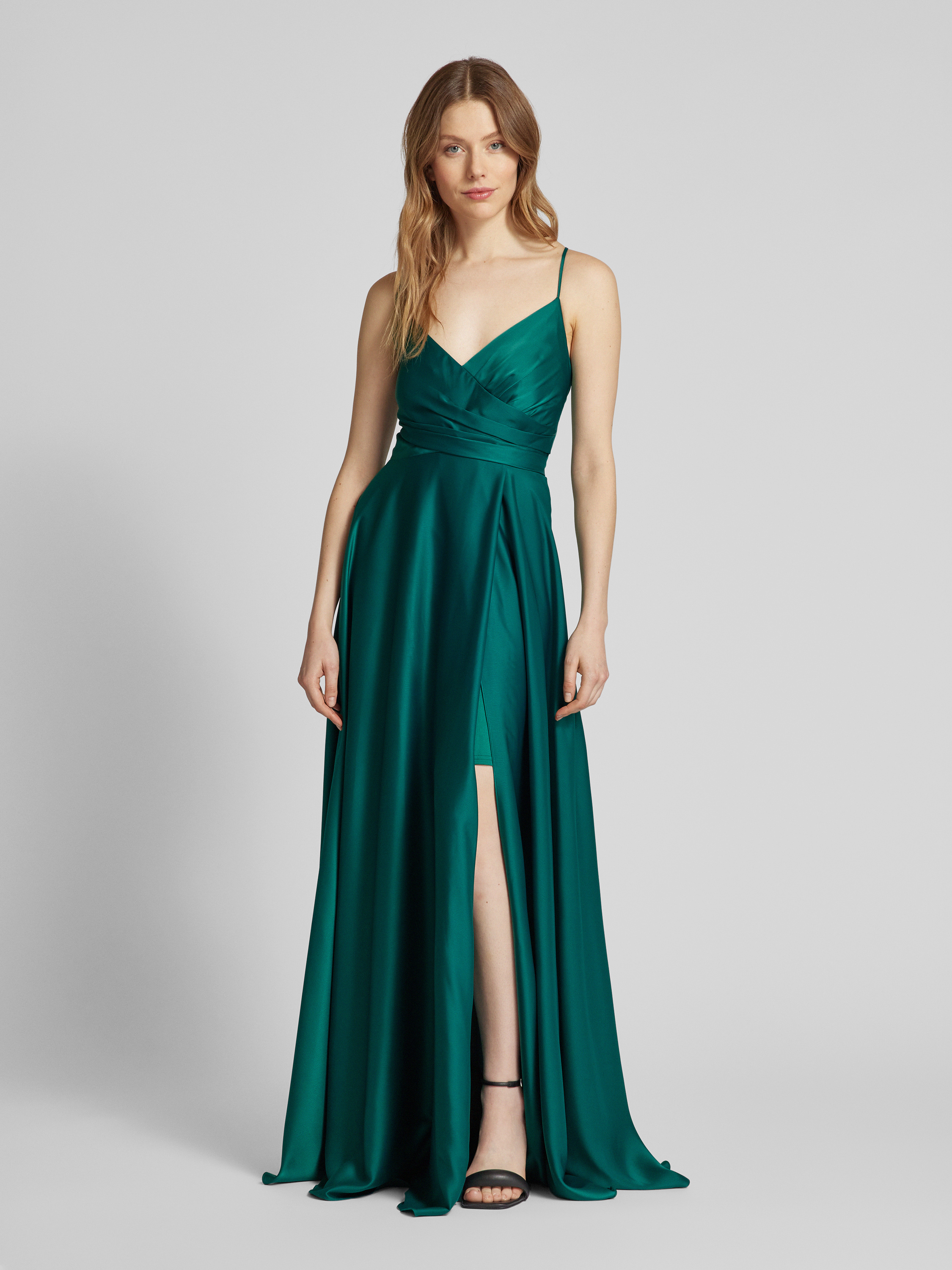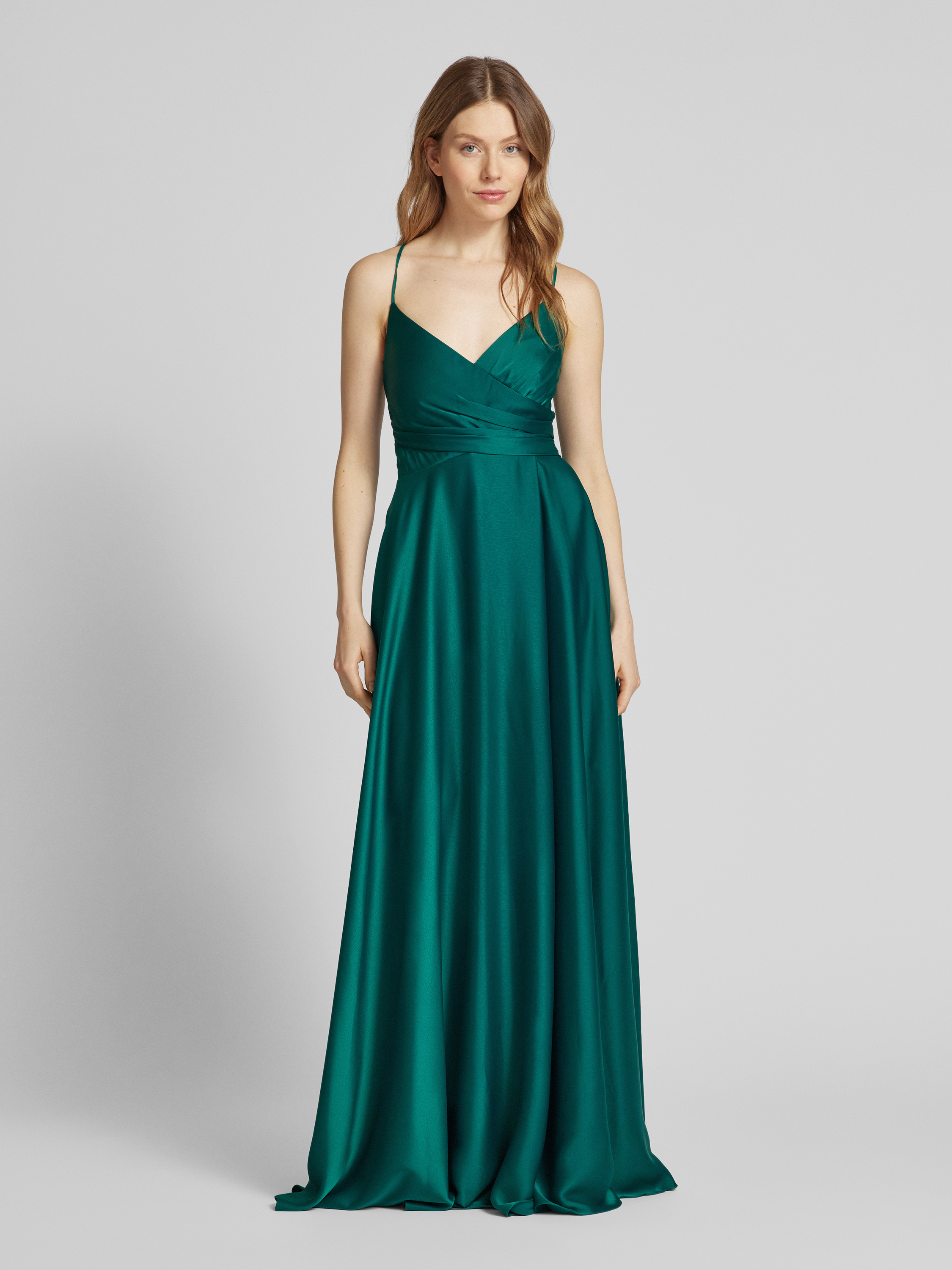 Das Abendkleid von Jake*s Cocktail beeindruckt mit seinem taillierten Schnitt, der in einer eleganten Wickel-Optik gestaltet ist. Der Herz-Ausschnitt und die zarten Spaghettiträger verleihen dem Kleid eine feminine Note. Raffungen und ein blickdichtes Unterkleid sorgen für einen ansprechenden Fall.