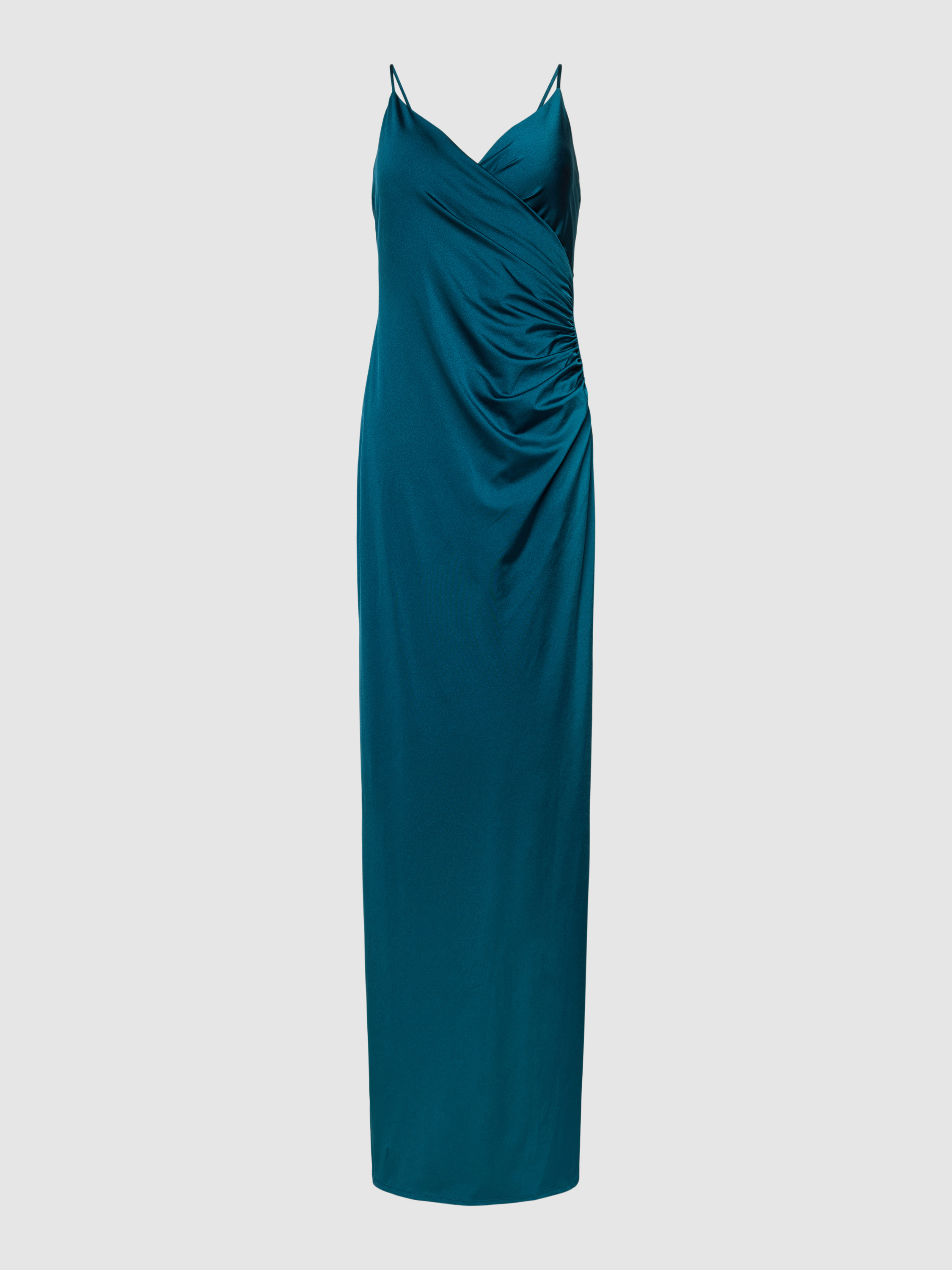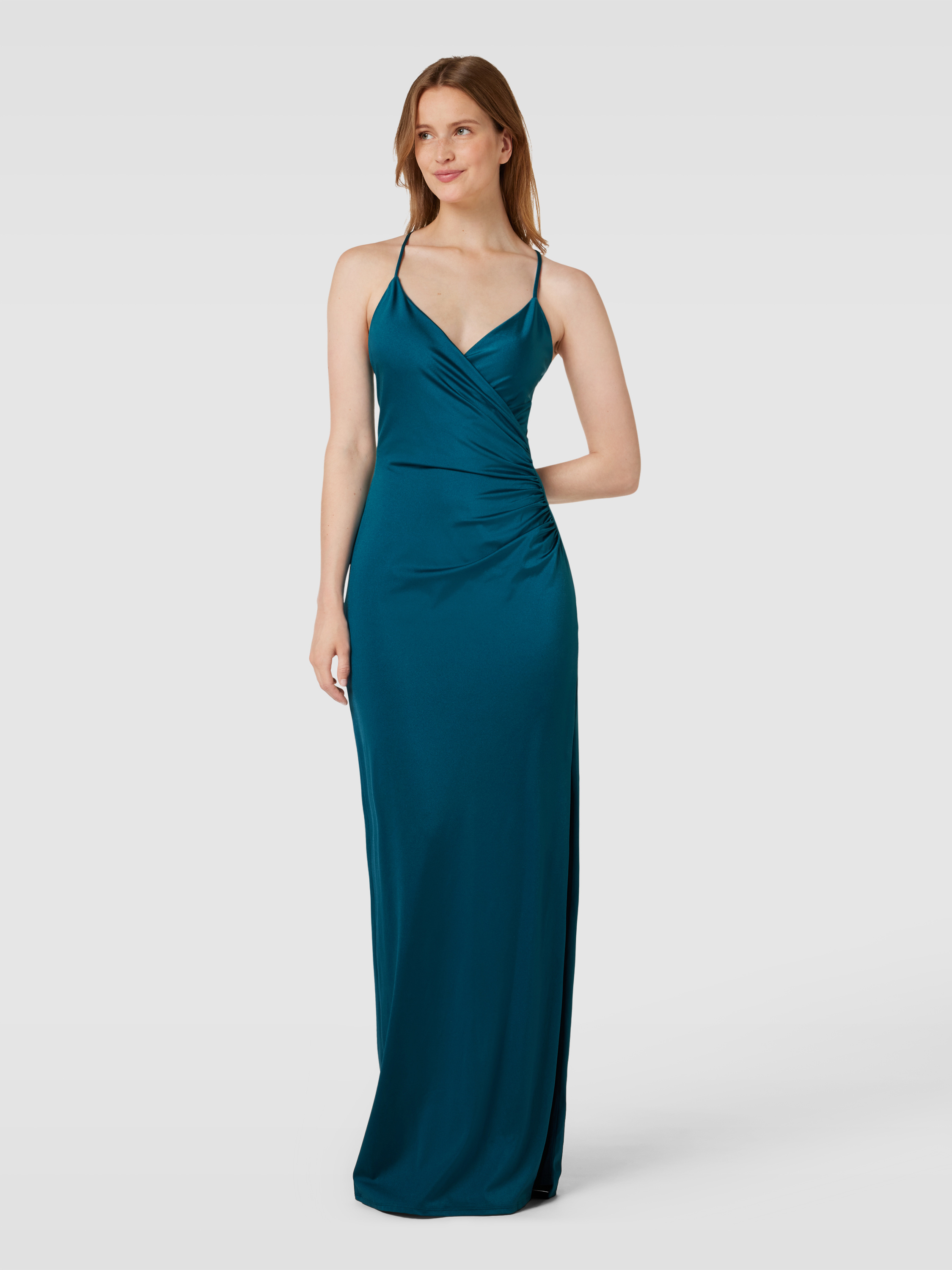 Das Abendkleid in Wickel-Optik von Jake*s Cocktail beeindruckt durch seinen eng anliegenden Schnitt und die gekreuzten Spaghettiträger, die eine elegante Silhouette schaffen. Der Material-Mix mit Stretch-Anteil sorgt für Bewegungsfreiheit, während Raffungen und Gehschlitz stilvolle Akzente setzen. Ideal für besondere Anlässe.