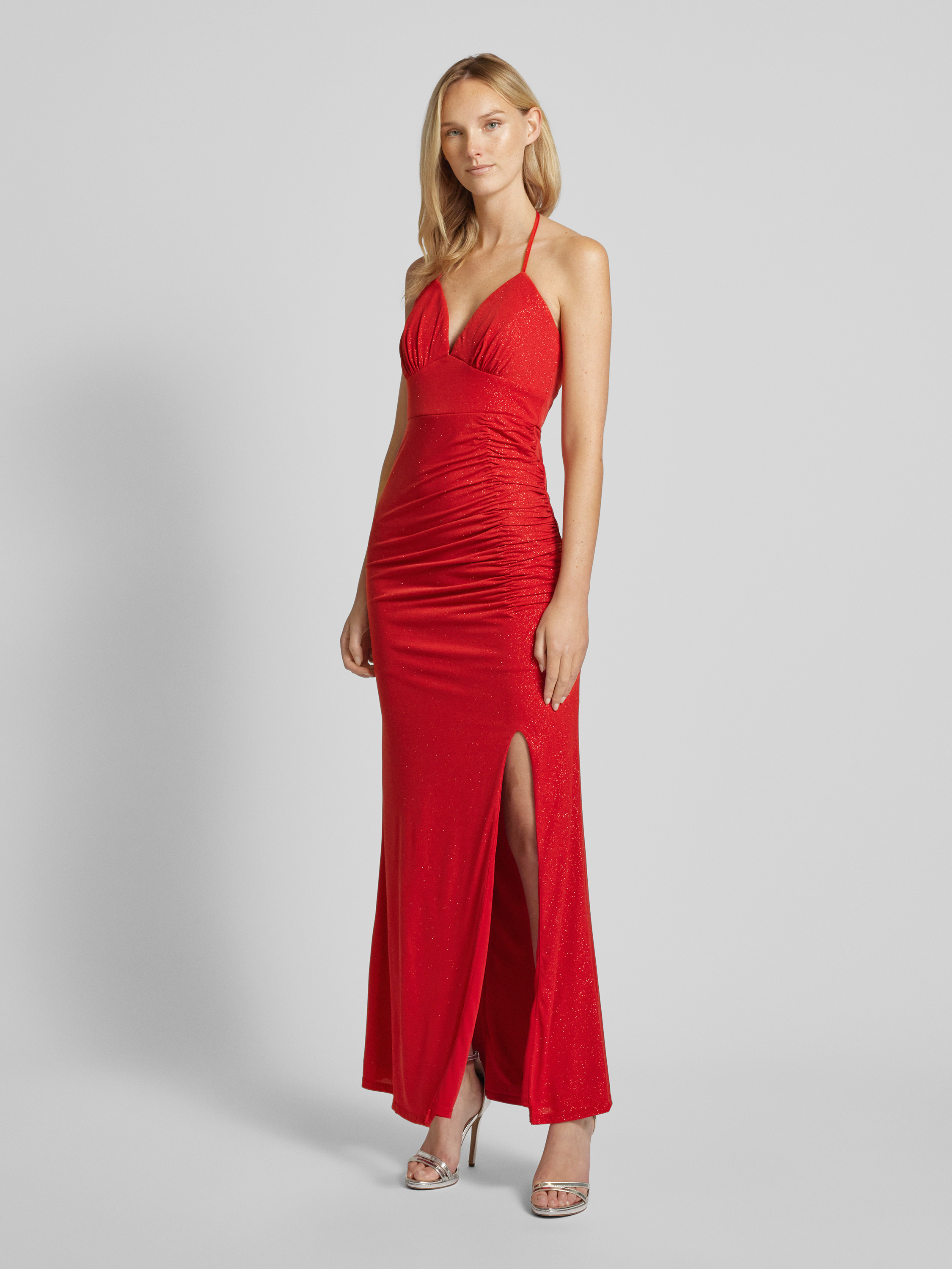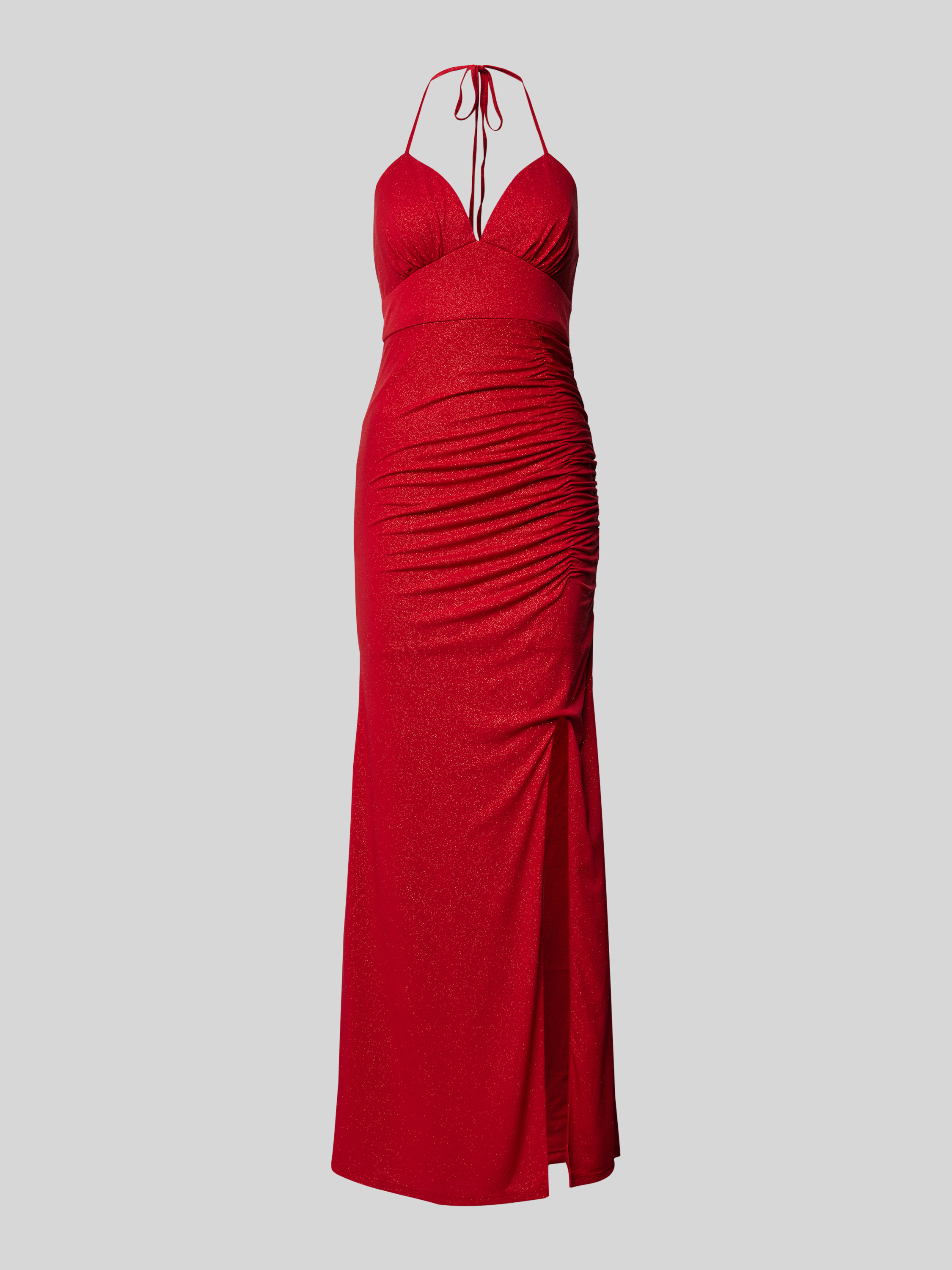 Das Abendkleid von Jake*s Cocktail kombiniert einen eleganten Neckholder mit einem fließenden Maxikleid-Design. Durch den figurbetonten Schnitt und den raffinierten Gehschlitz entsteht eine stilvolle Silhouette, die Bewegungsfreiheit ermöglicht. Der Material-Mix mit Stretch-Anteil sorgt für angenehmen Tragekomfort bei besonderen Anlässen.