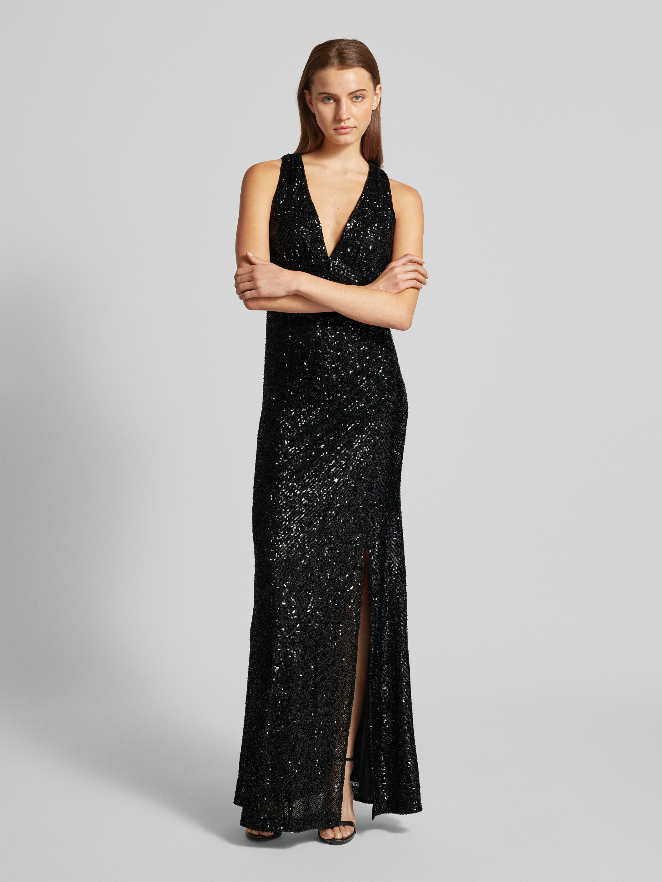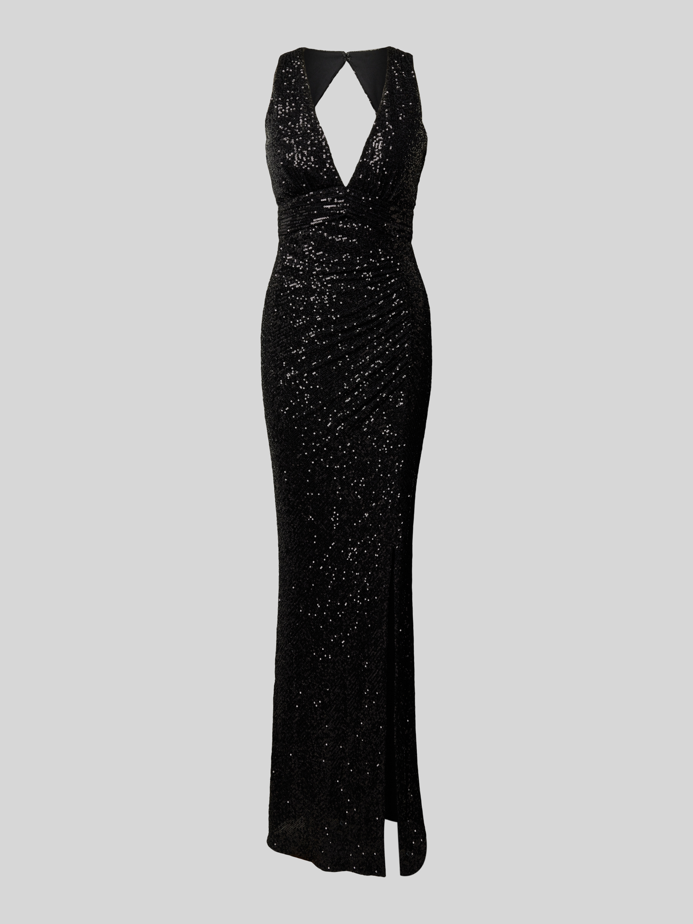 Das elegante Abendkleid von Jake*s Cocktail kombiniert einen taillierten Schnitt mit einem bezaubernden Paillettenbesatz, der für einen Hauch von Glamour sorgt. Der tiefe V-Ausschnitt und das Maxikleid-Design lassen eine stilvolle Silhouette entstehen. Ein Material-Mix mit Stretch-Anteil sorgt für angenehmen Tragekomfort.