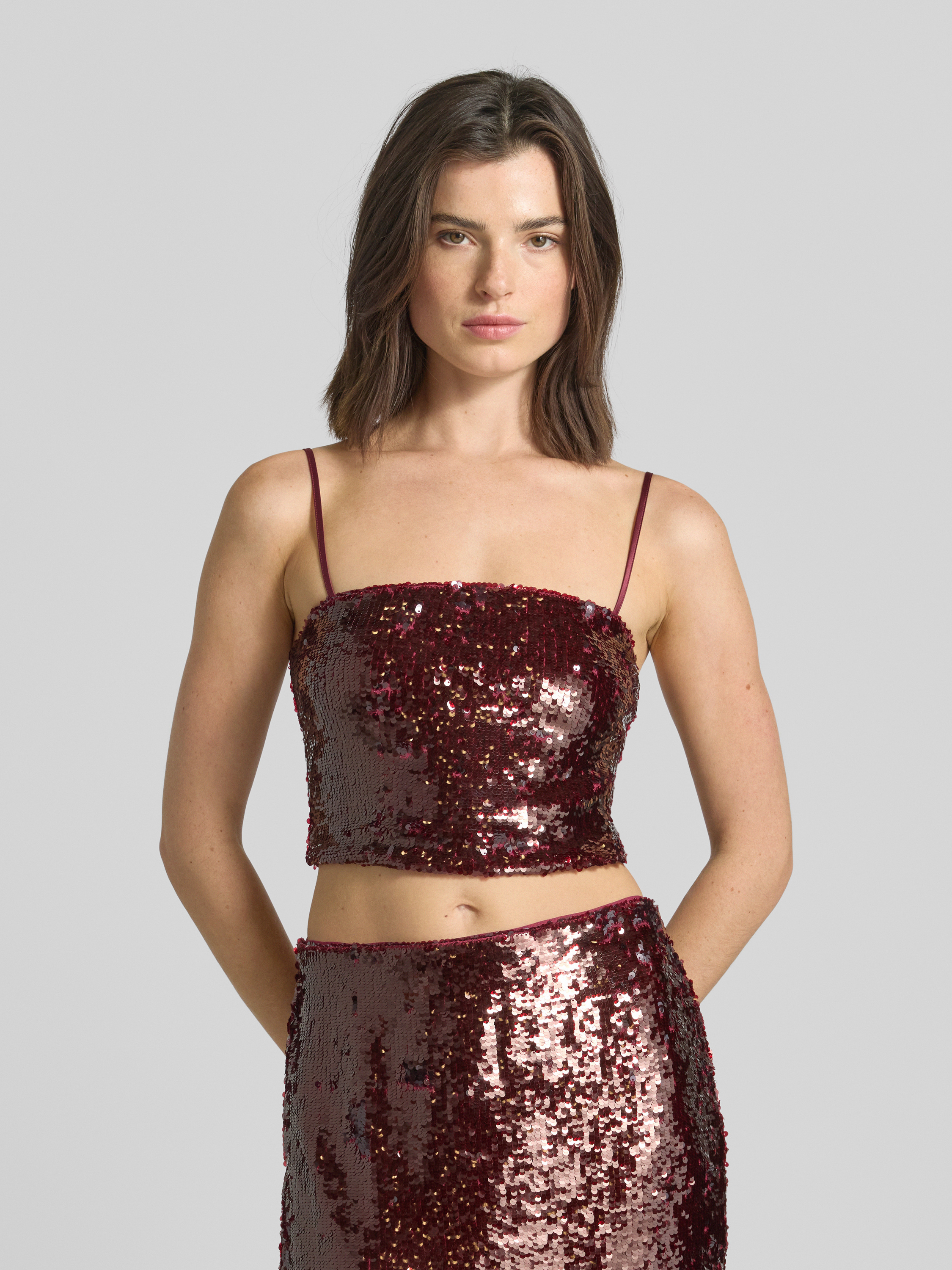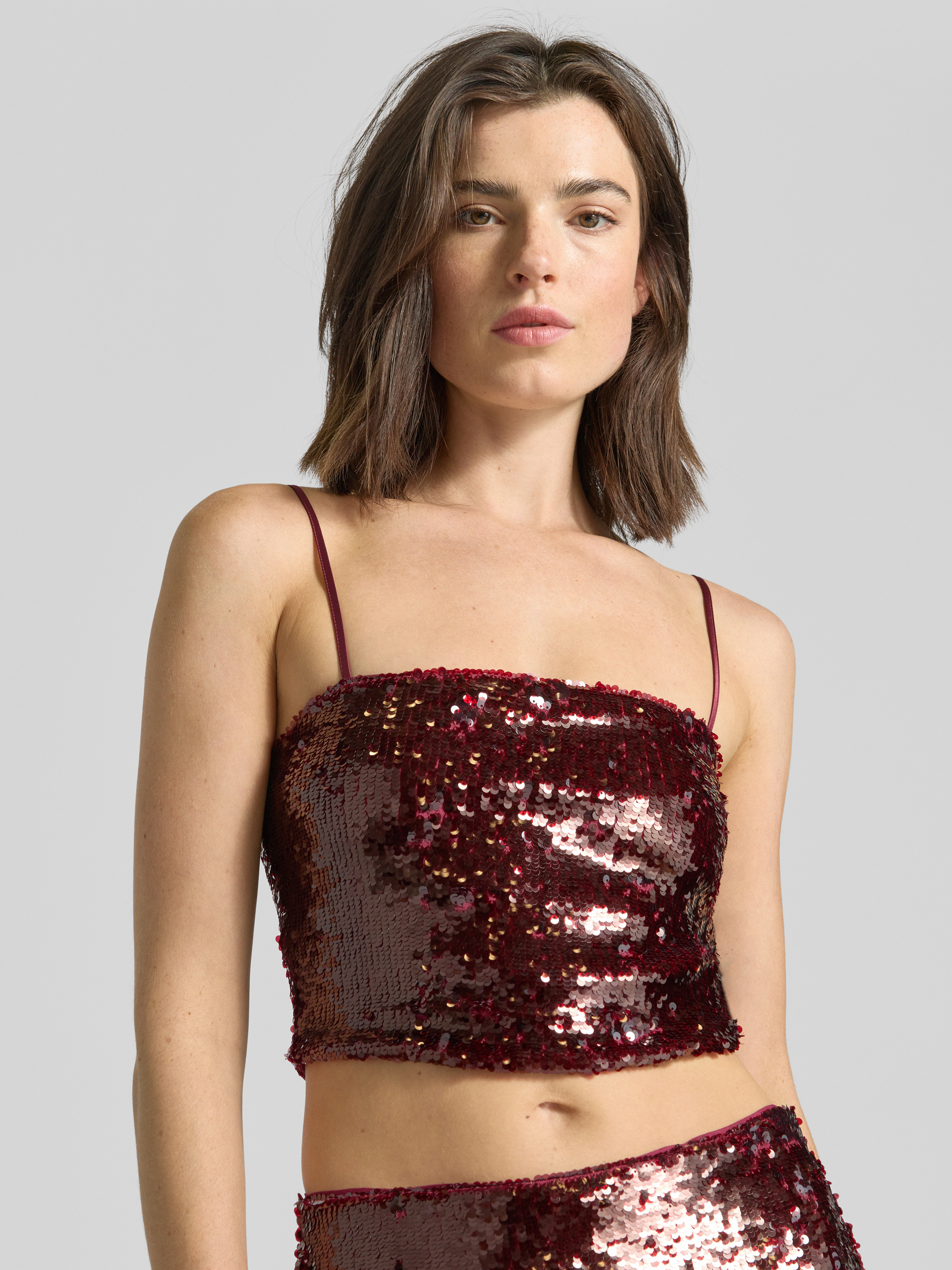 Das Damen Top von Jake*s Cocktail kombiniert einen körpernahen Slim Fit mit einem angesagten Crop-Schnitt, wodurch eine moderne Silhouette entsteht. Durch den Material-Mix mit Stretch-Anteil passt sich das Top angenehm an und sorgt für Bewegungsfreiheit. Pailletten und schmale Spaghettiträger unterstreichen die feminine Ausstrahlung auf dezente Weise.