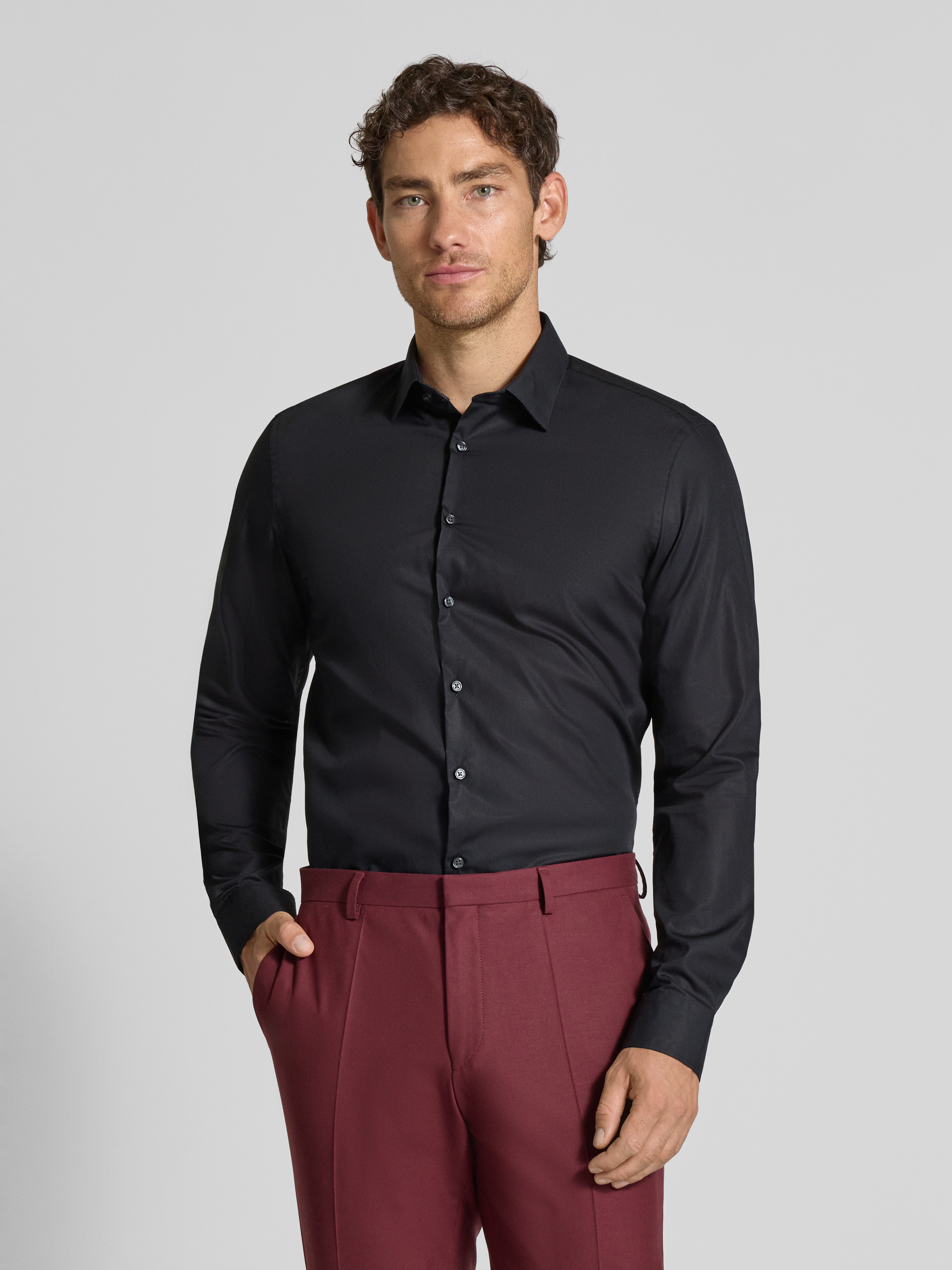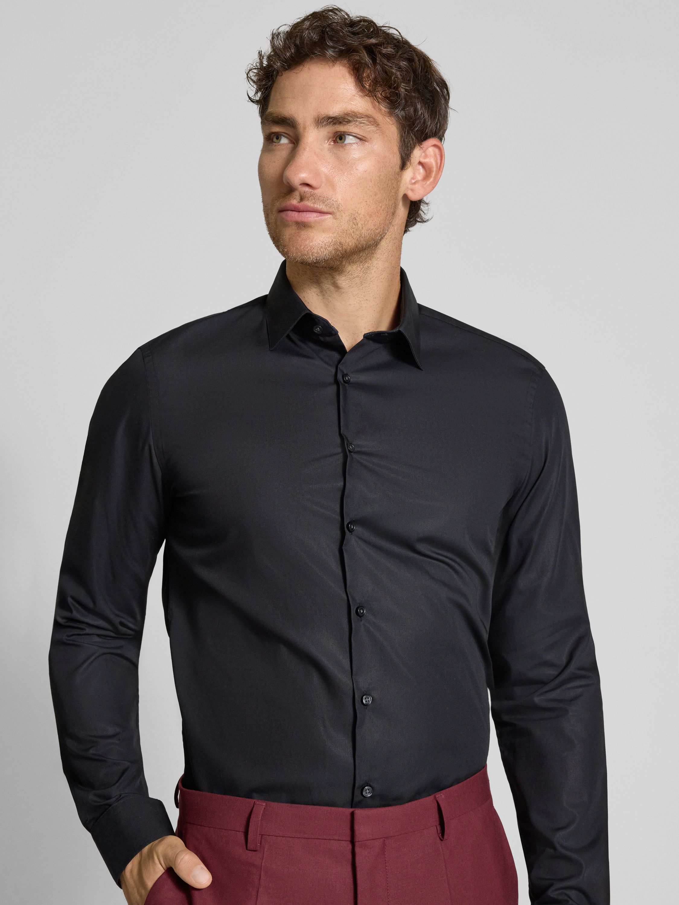 Jake*sSlim Fit Businesshemd mit Kentkragen in black