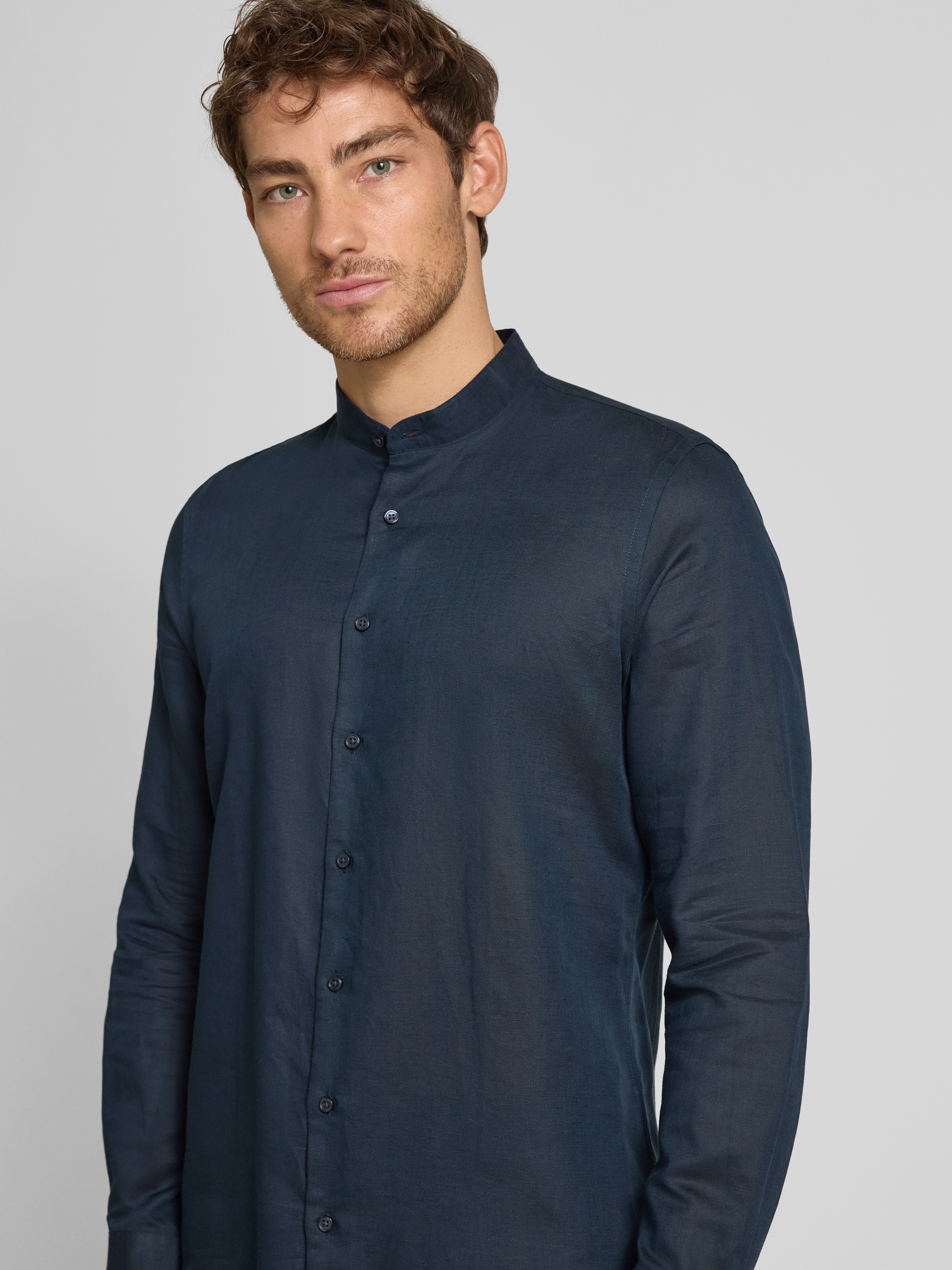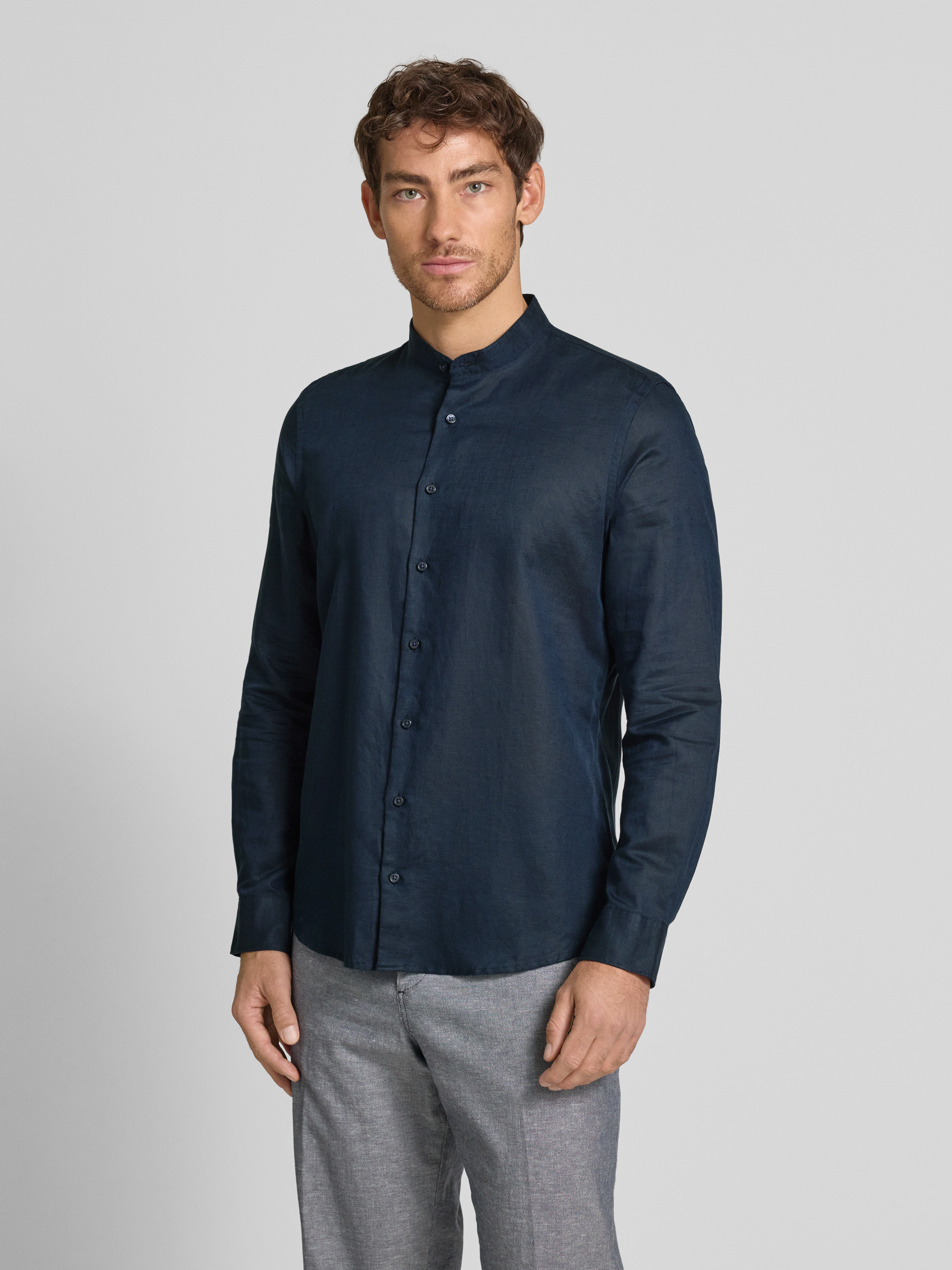 Das Slim Fit Freizeithemd von Jake*s aus einem hochwertigen Leinen-Baumwoll-Mix bietet eine elegante Passform und angenehmen Tragekomfort. Der Maokragen verleiht dem Hemd eine moderne Note, während der leichte Stoff ideal für entspannte und stilvolle Tage ist.