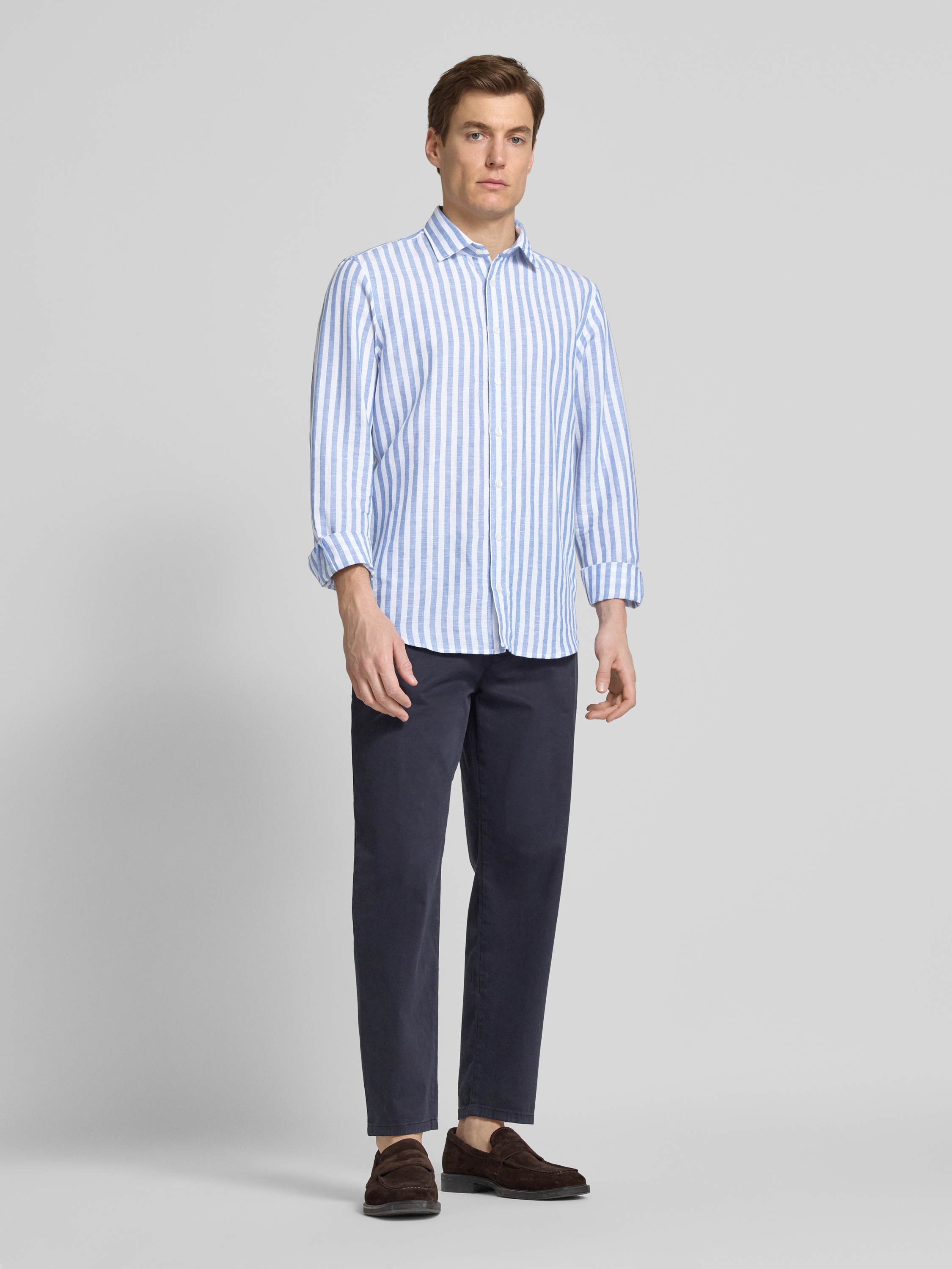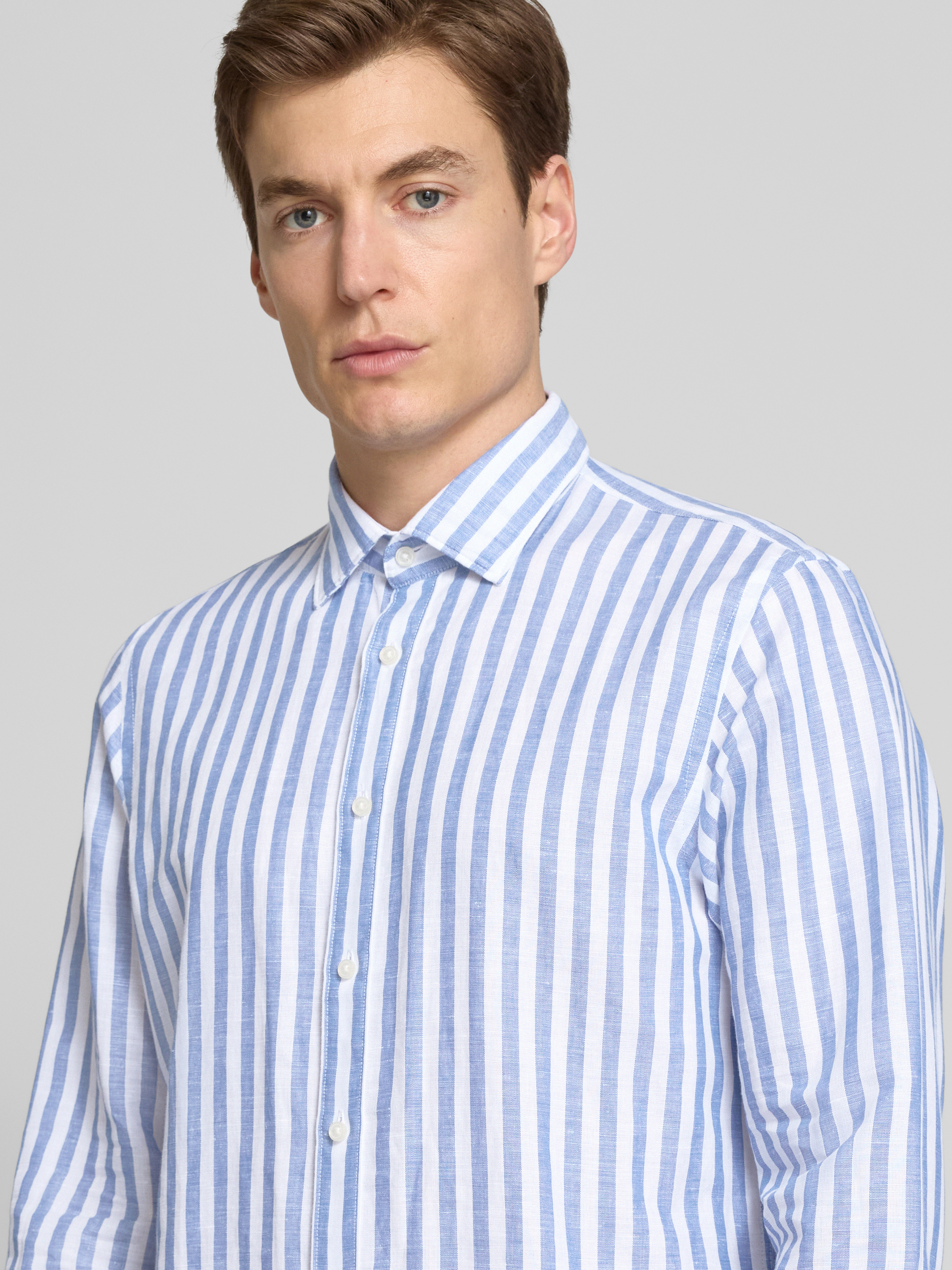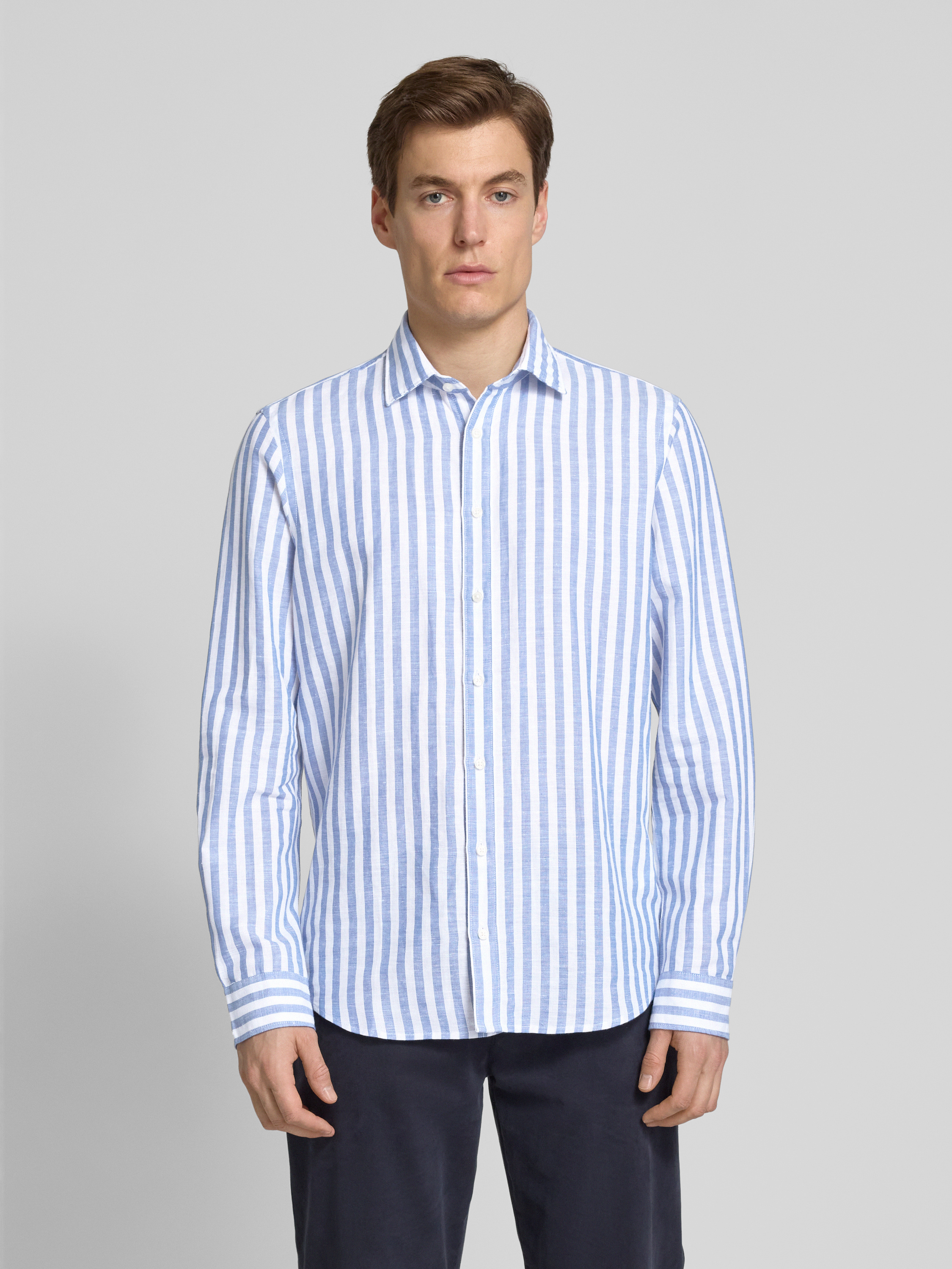 Jake*sSlim Fit Freizeithemd aus Leinen-Mix in royal