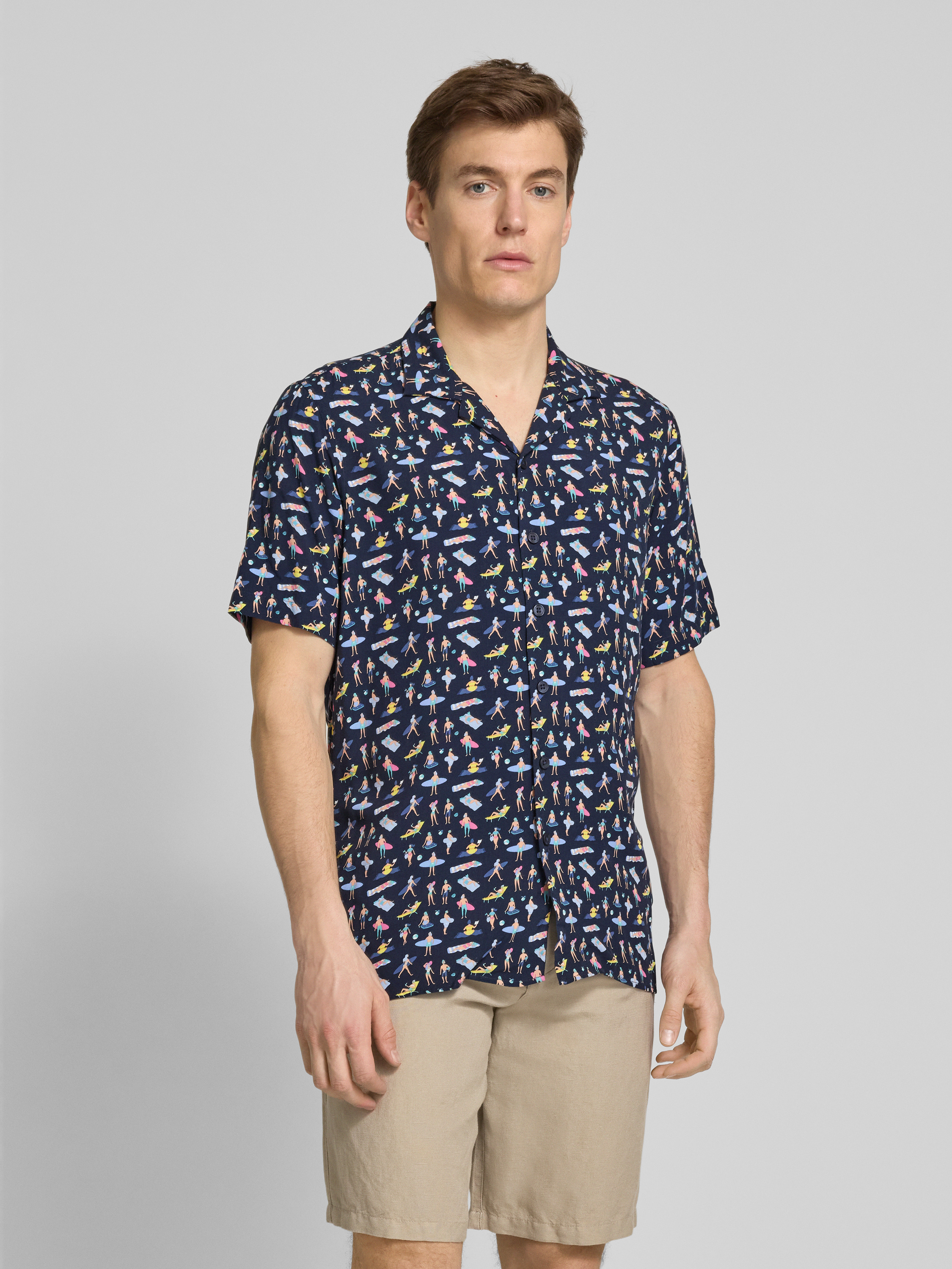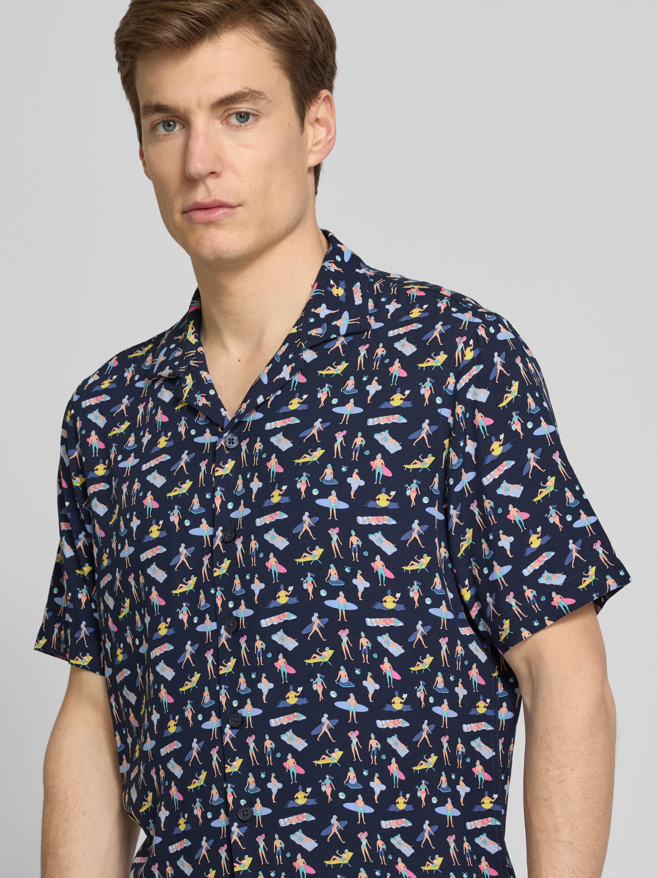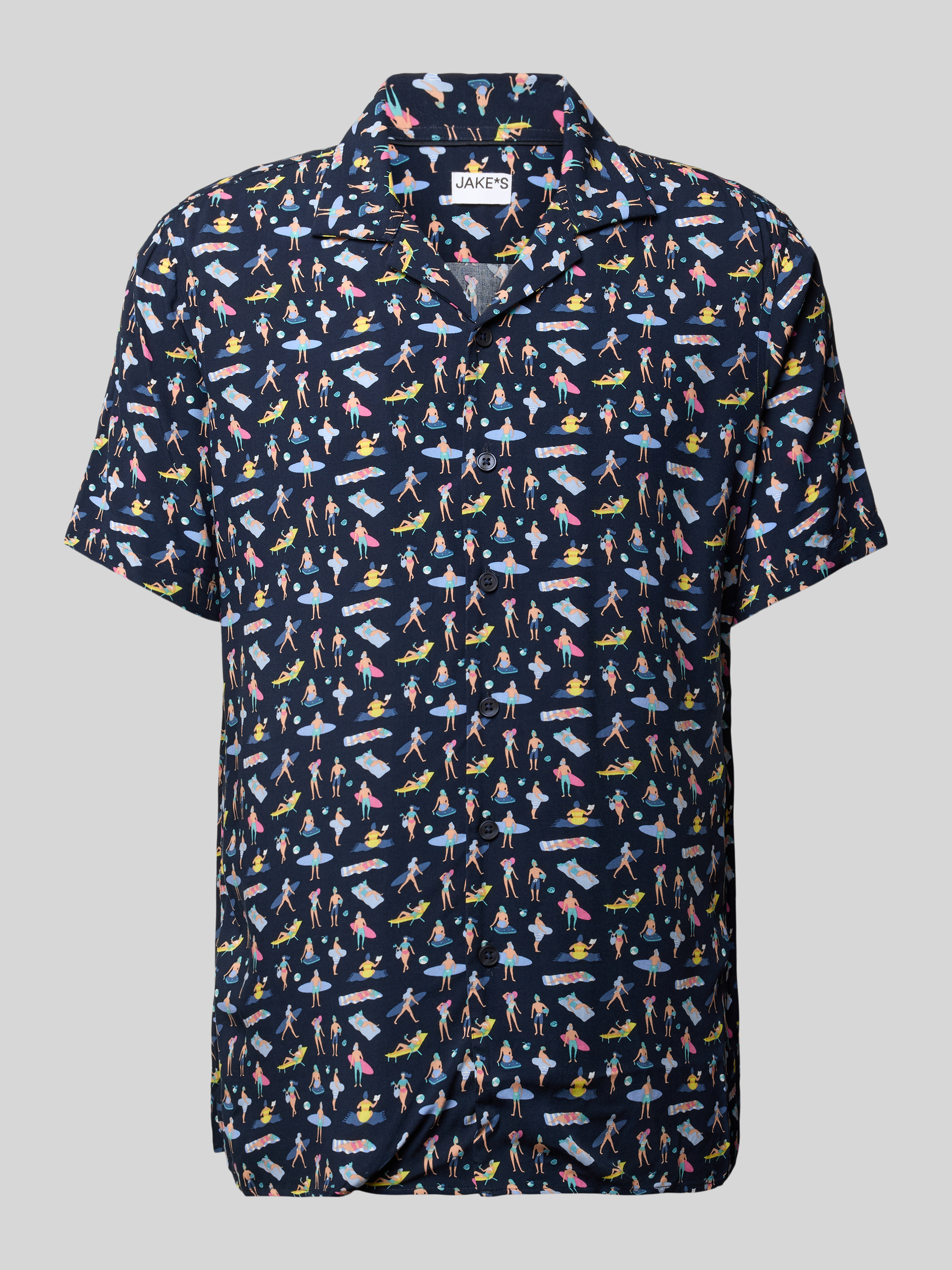 Das Freizeithemd von Jake*s besticht durch seine schlanke Slim-Fit-Passform und sorgt für einen eleganten Auftritt bei entspannten Anlässen. Der leichte Stoff aus reiner Viskose bietet angenehmen Tragekomfort, während der stilvolle Reverskragen dem Outfit eine moderne Note verleiht.