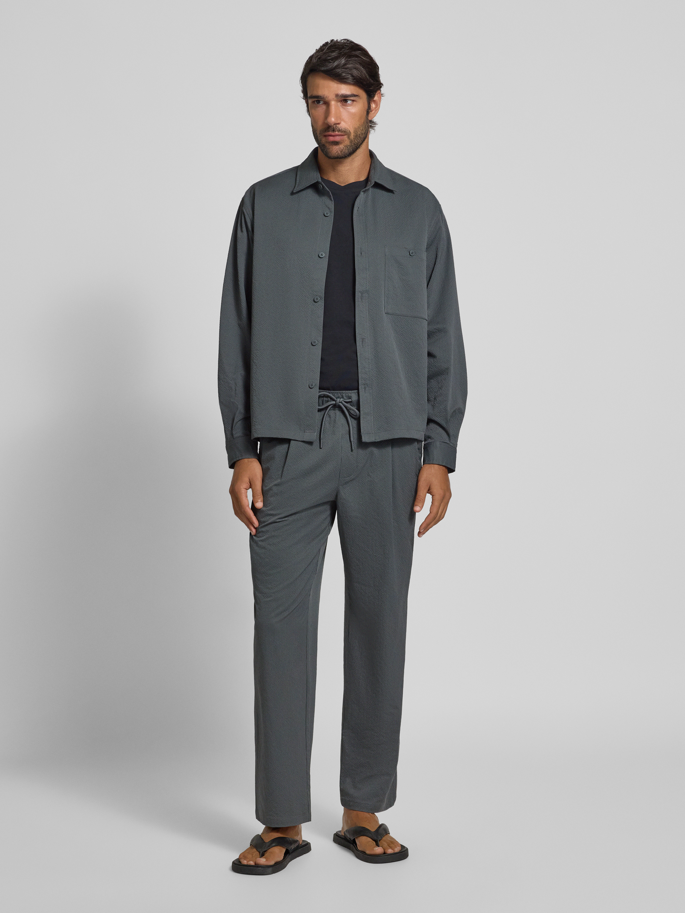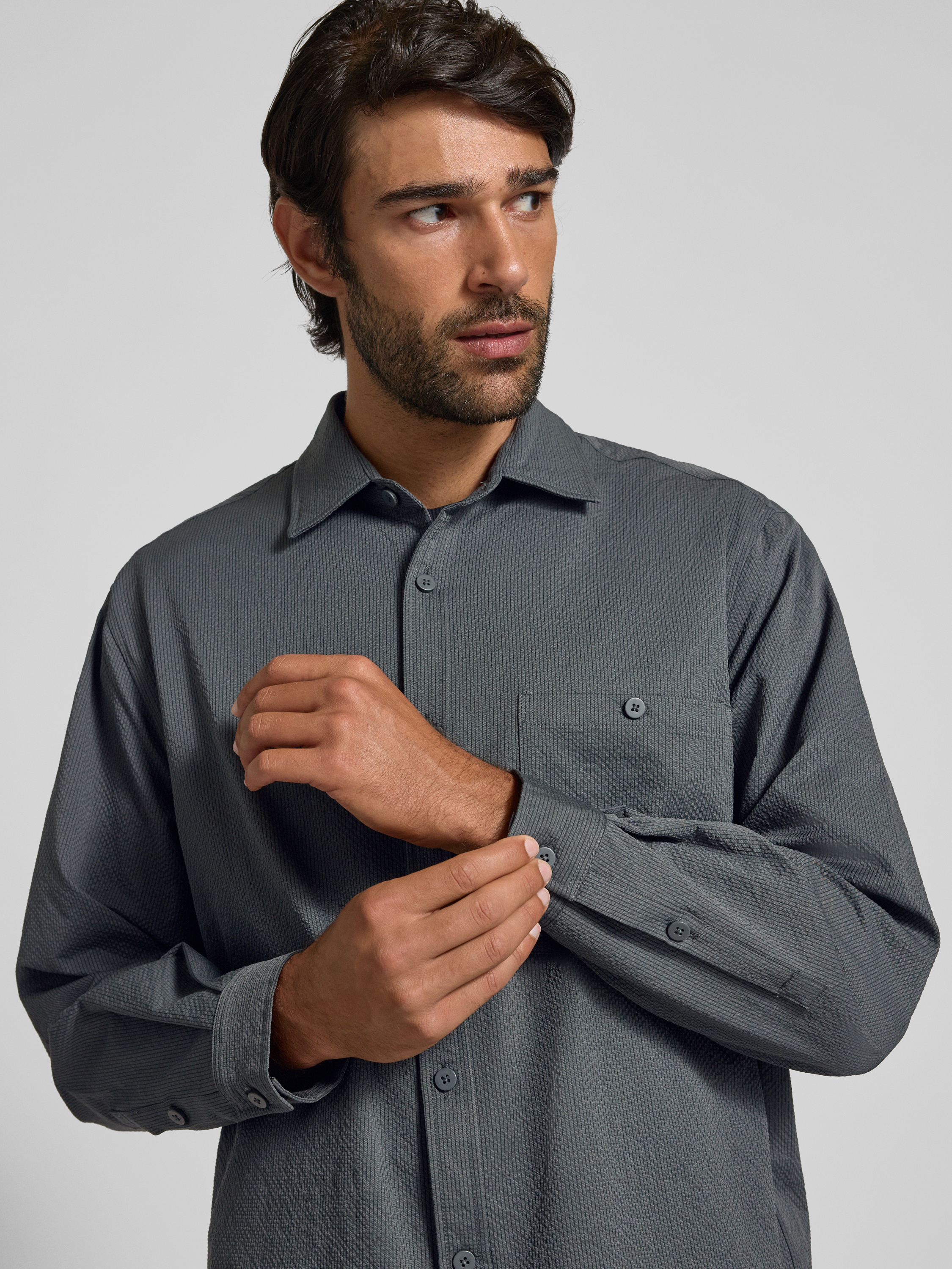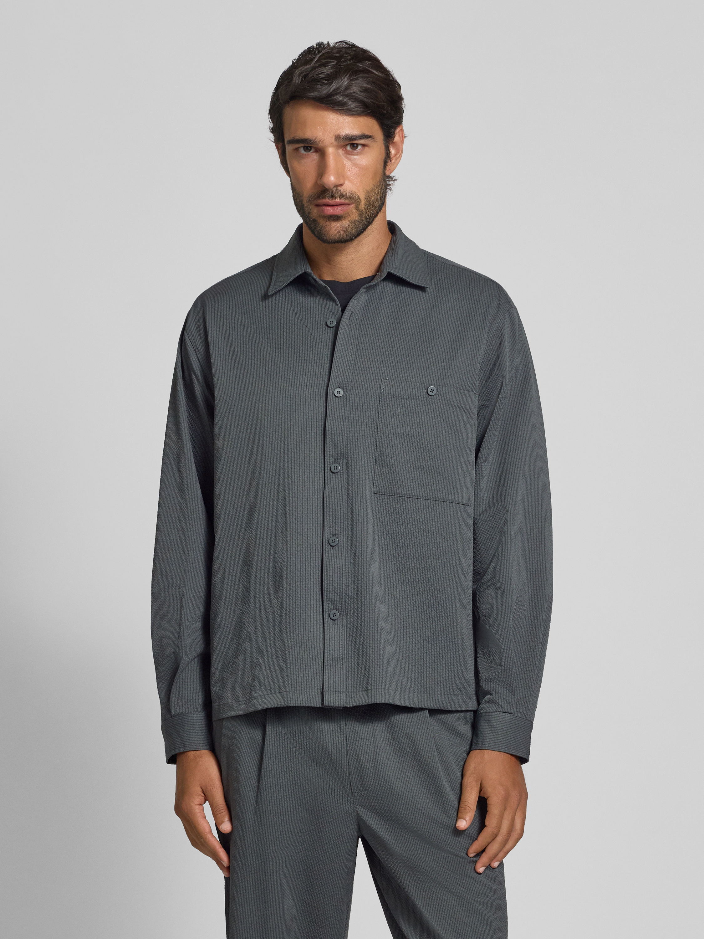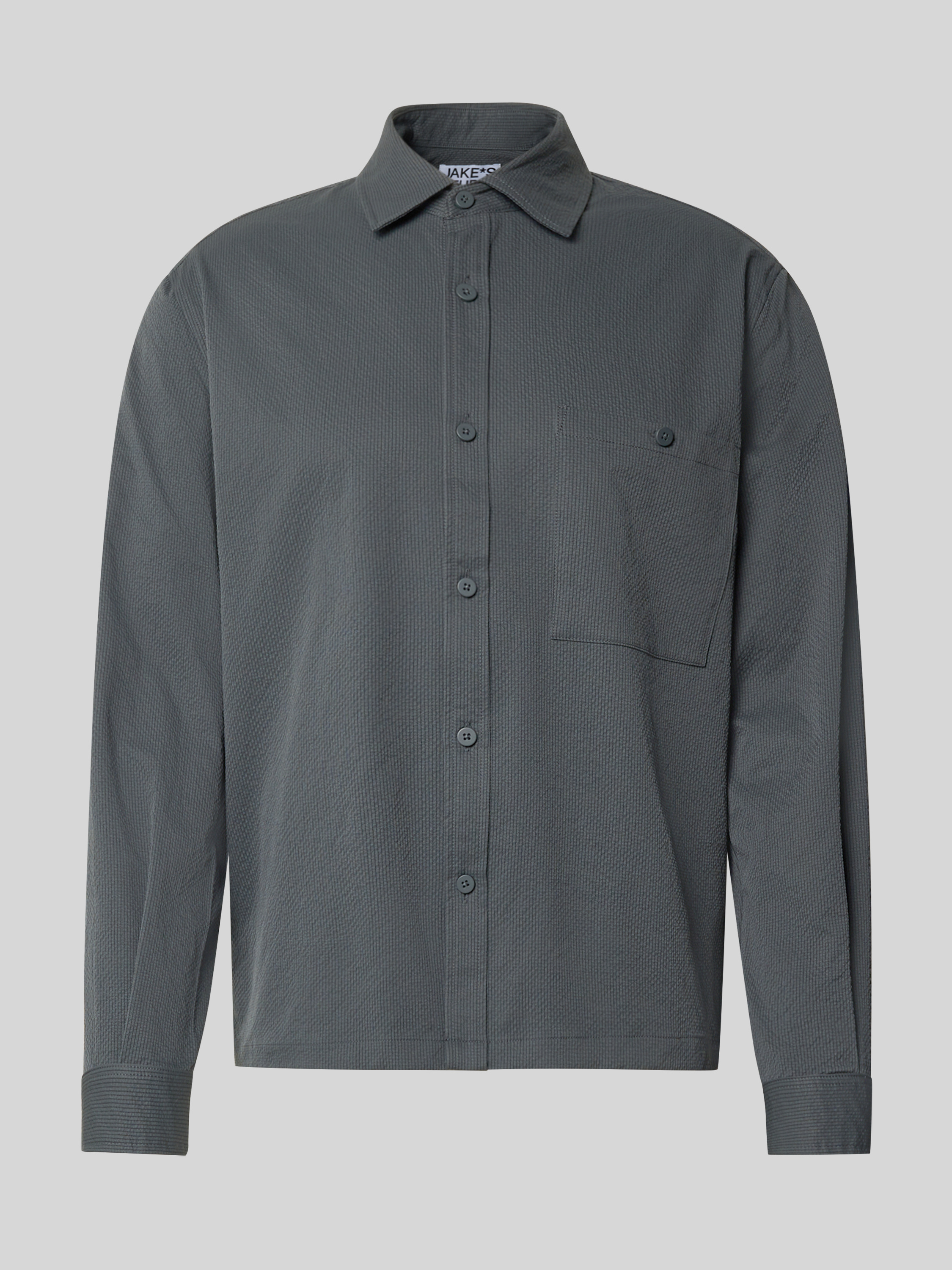 JAKE*S STUDIO MENSlim Fit Freizeithemd mit Kentkragen in rauchblau