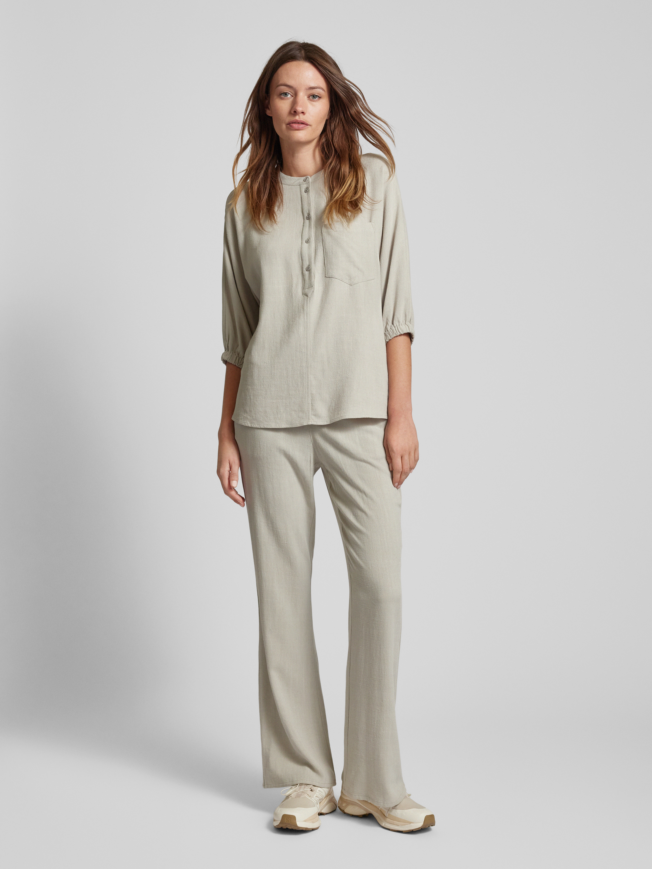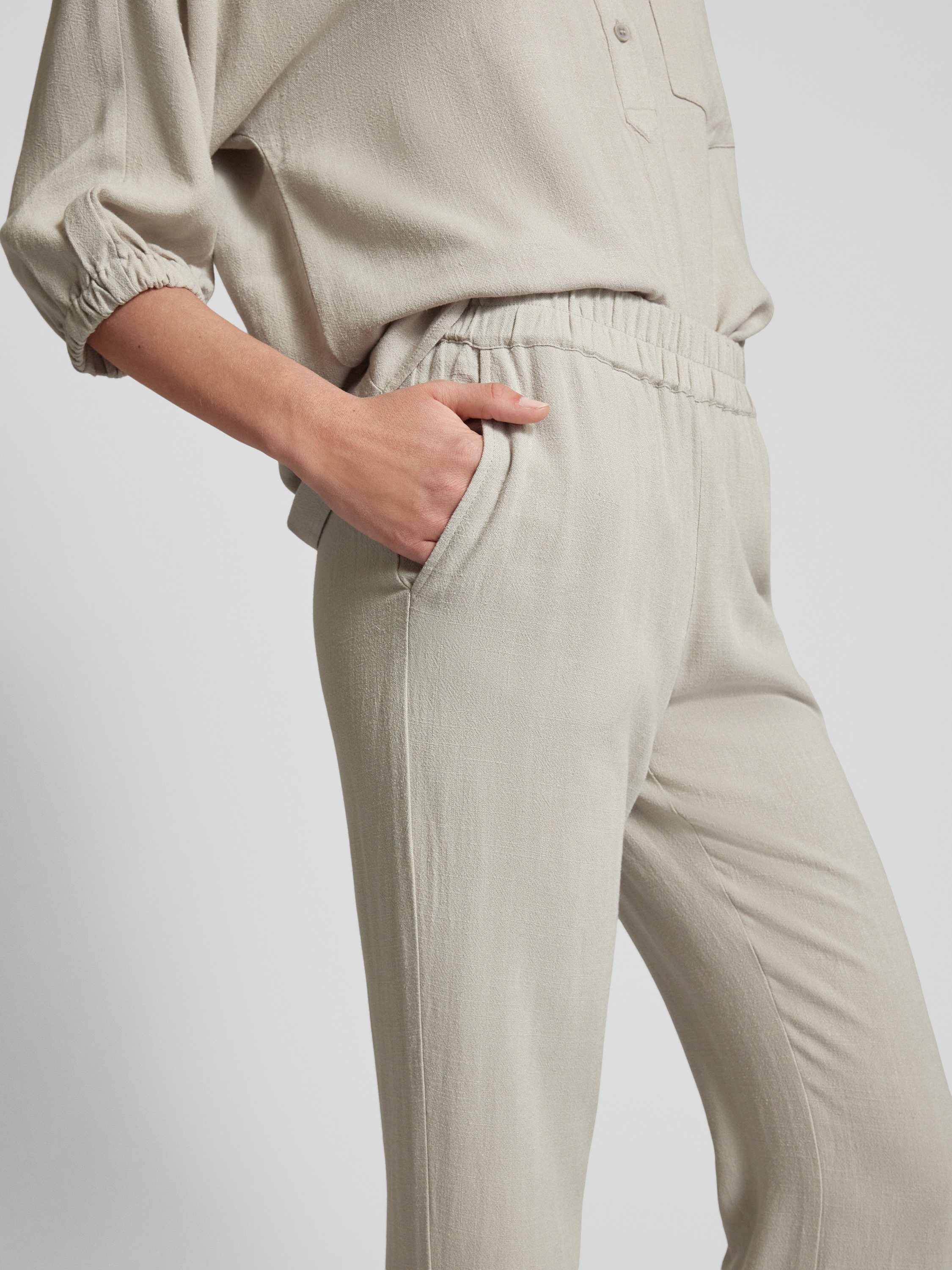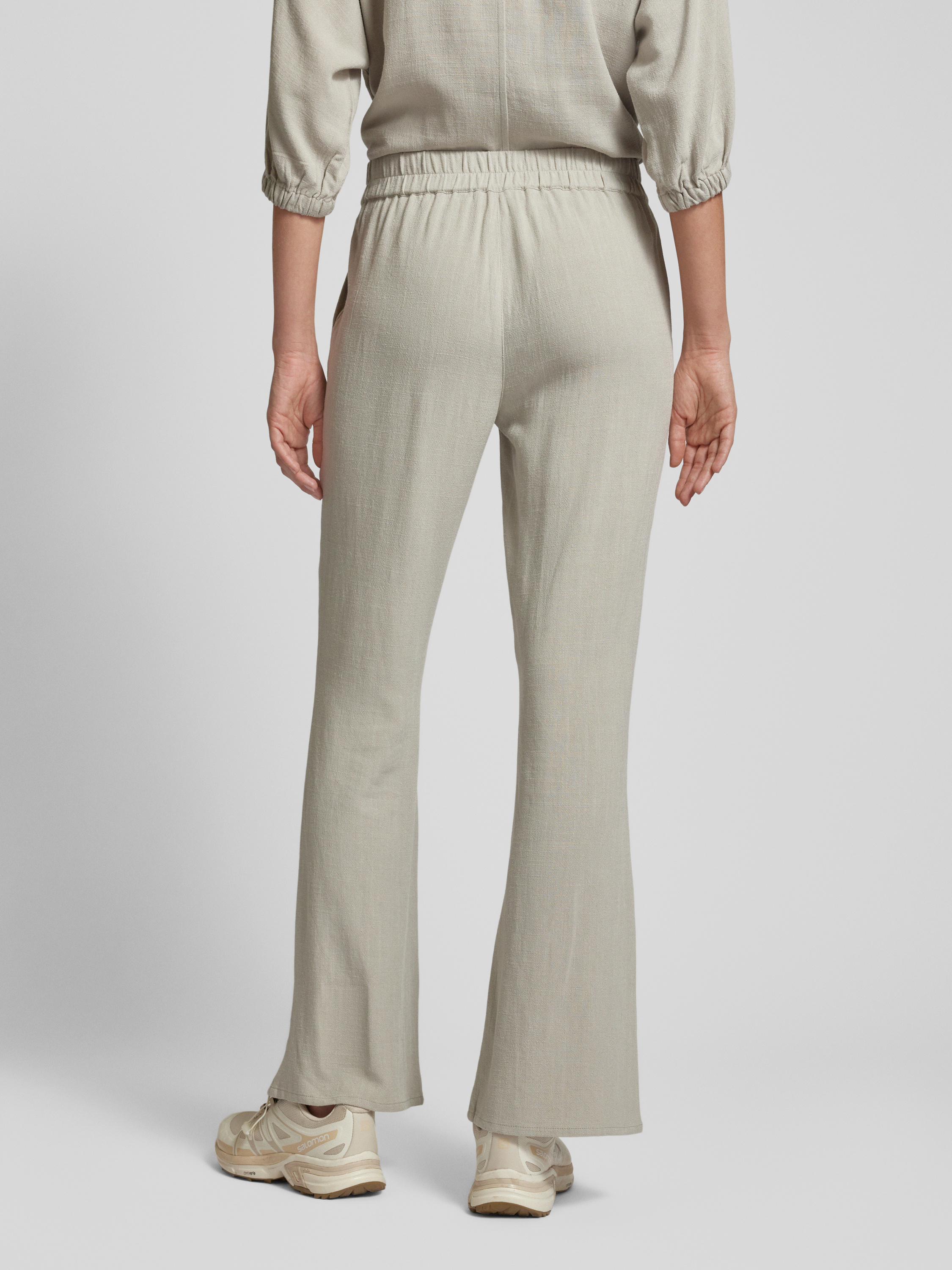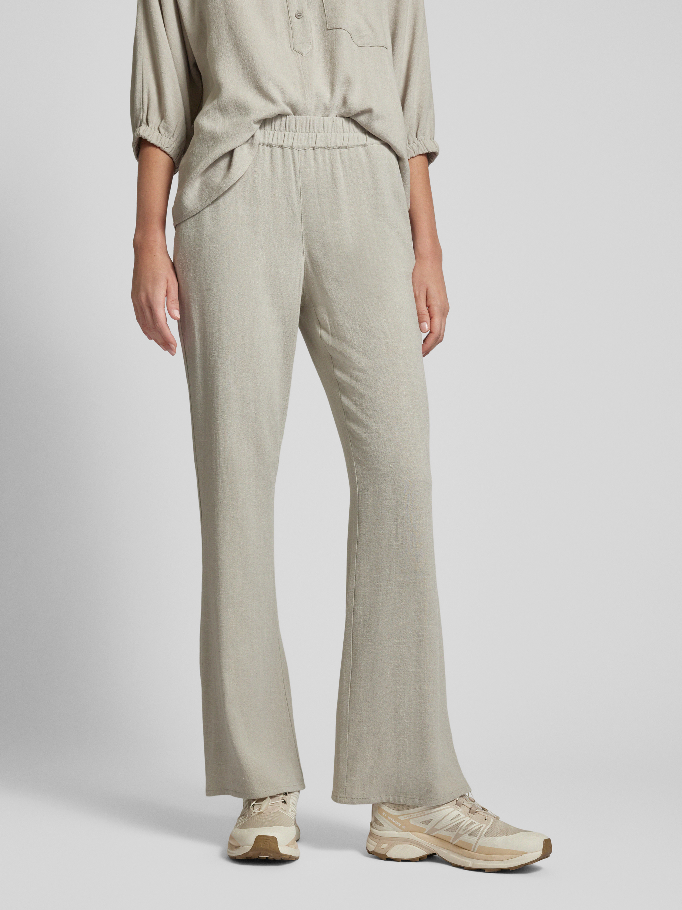 Jake*s CasualFlared Cut Hose aus Viskose-Leinen-Mix in stein